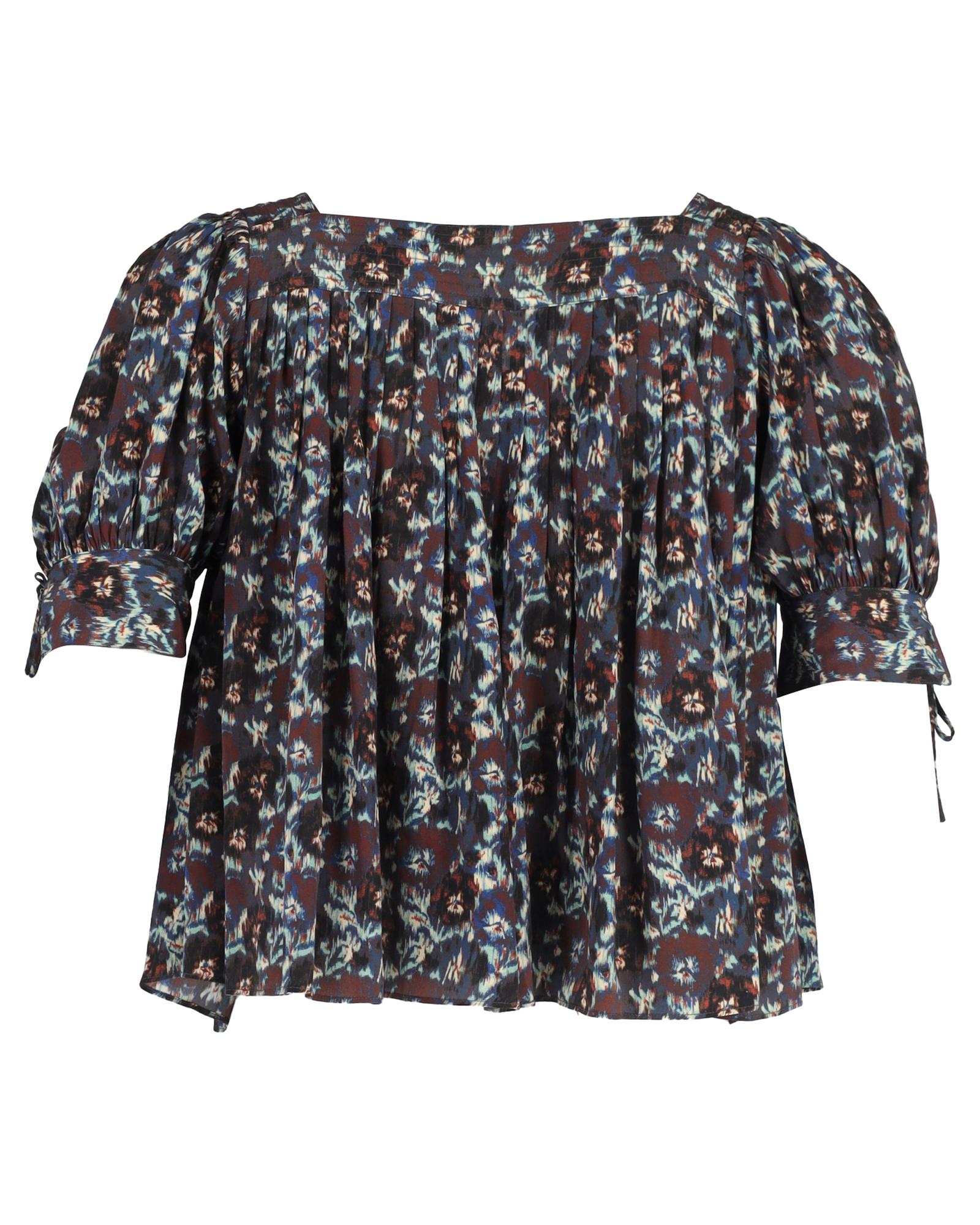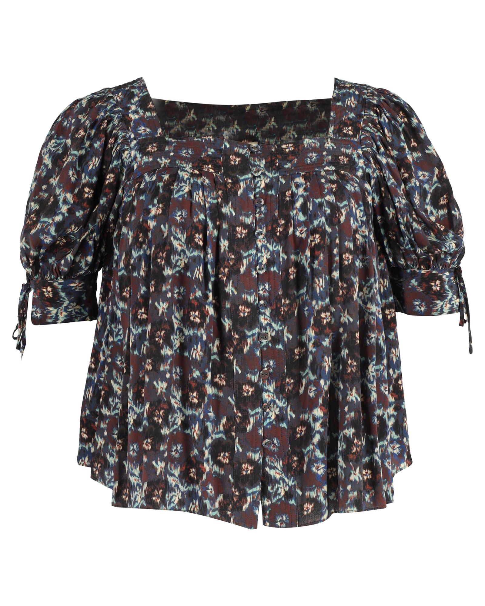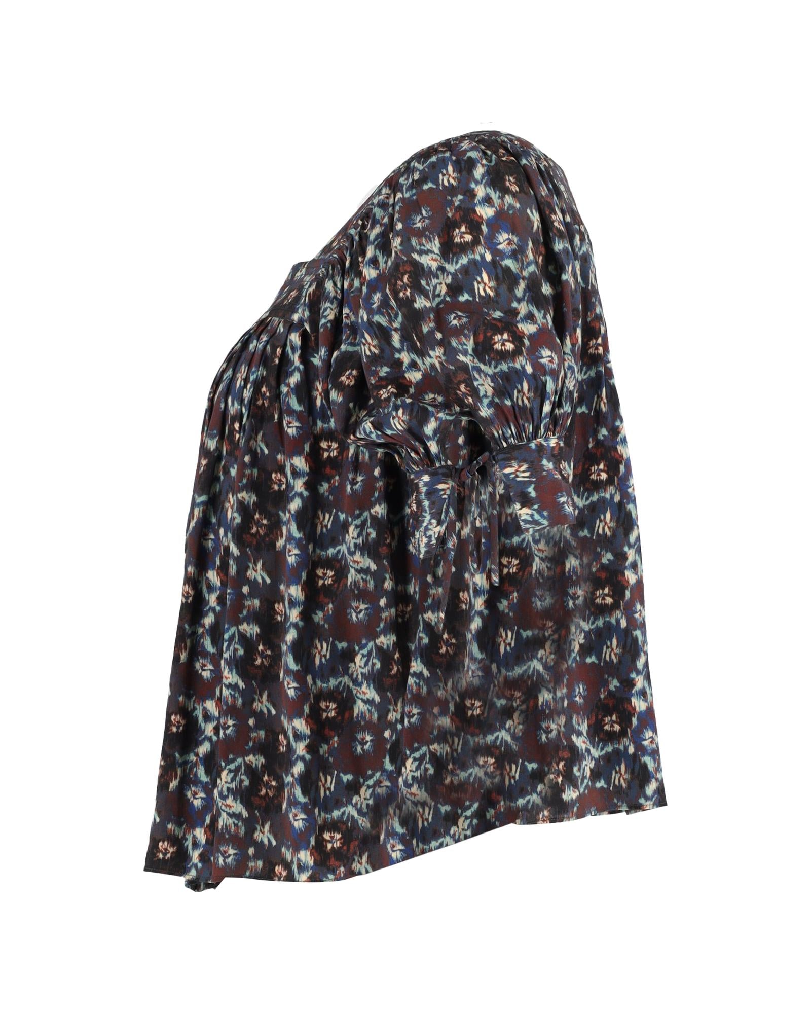 Pre-owned Printed Silk Blouse Puff Sleeves