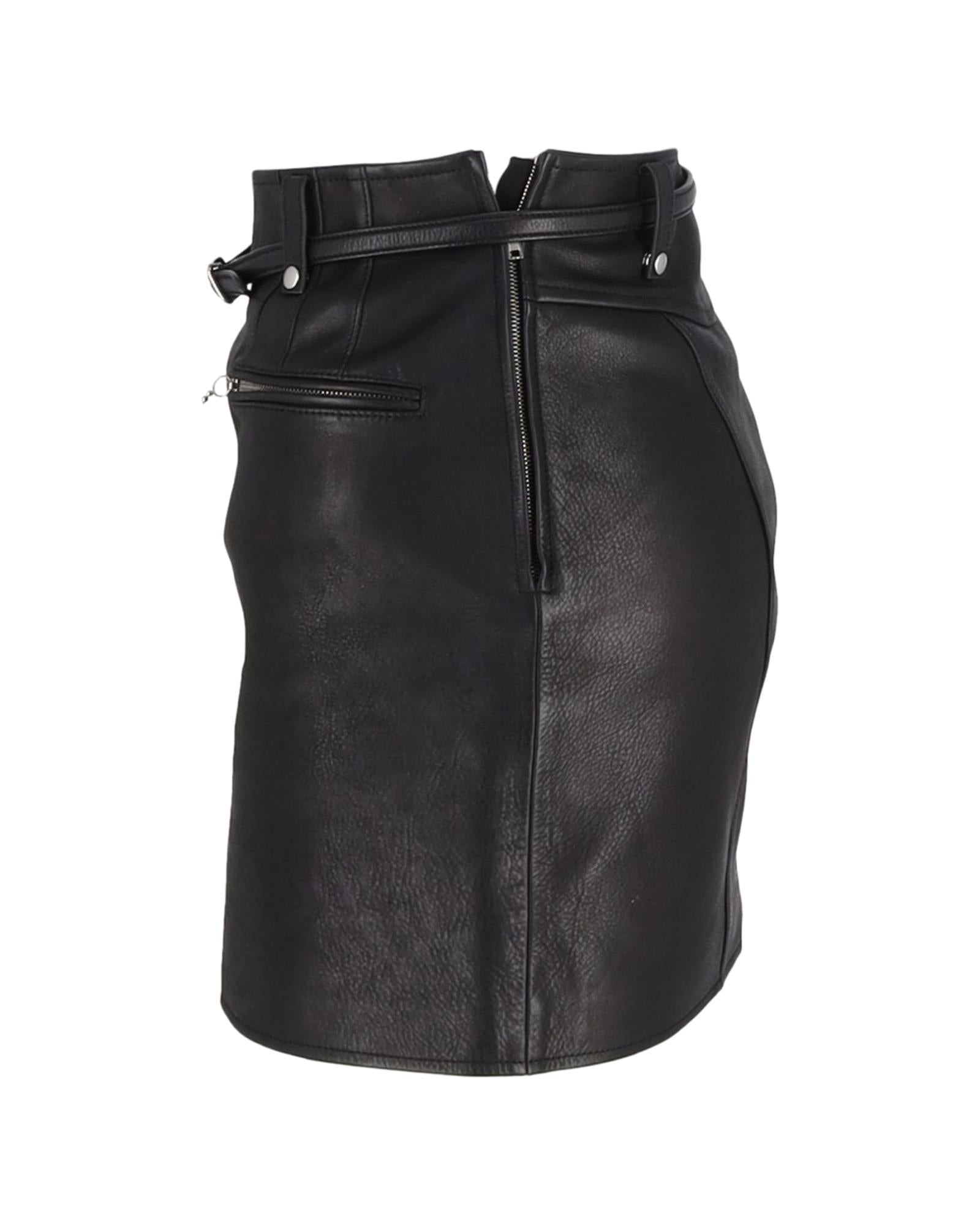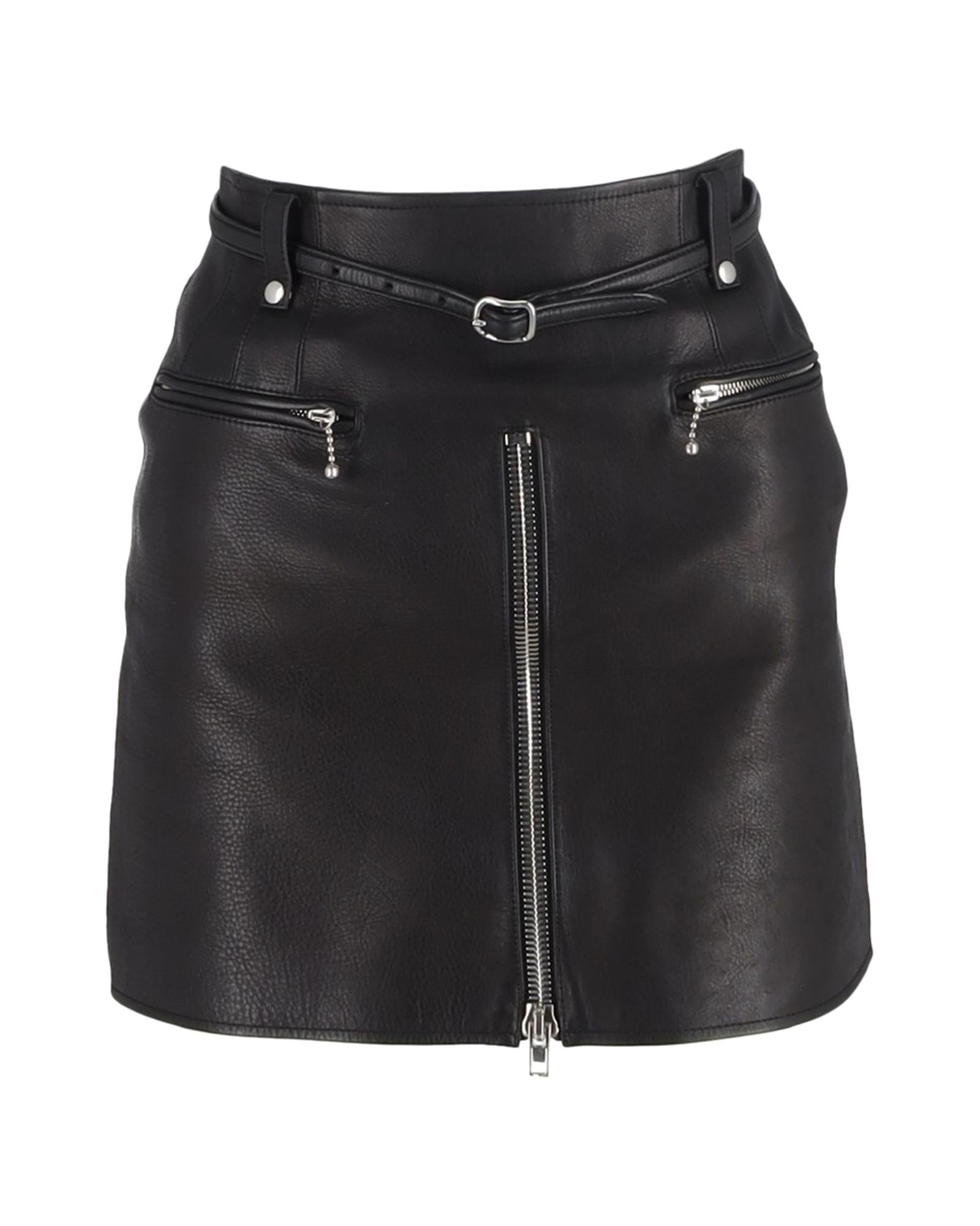 Pre-owned Leather Mini Skirt Zipper Pockets