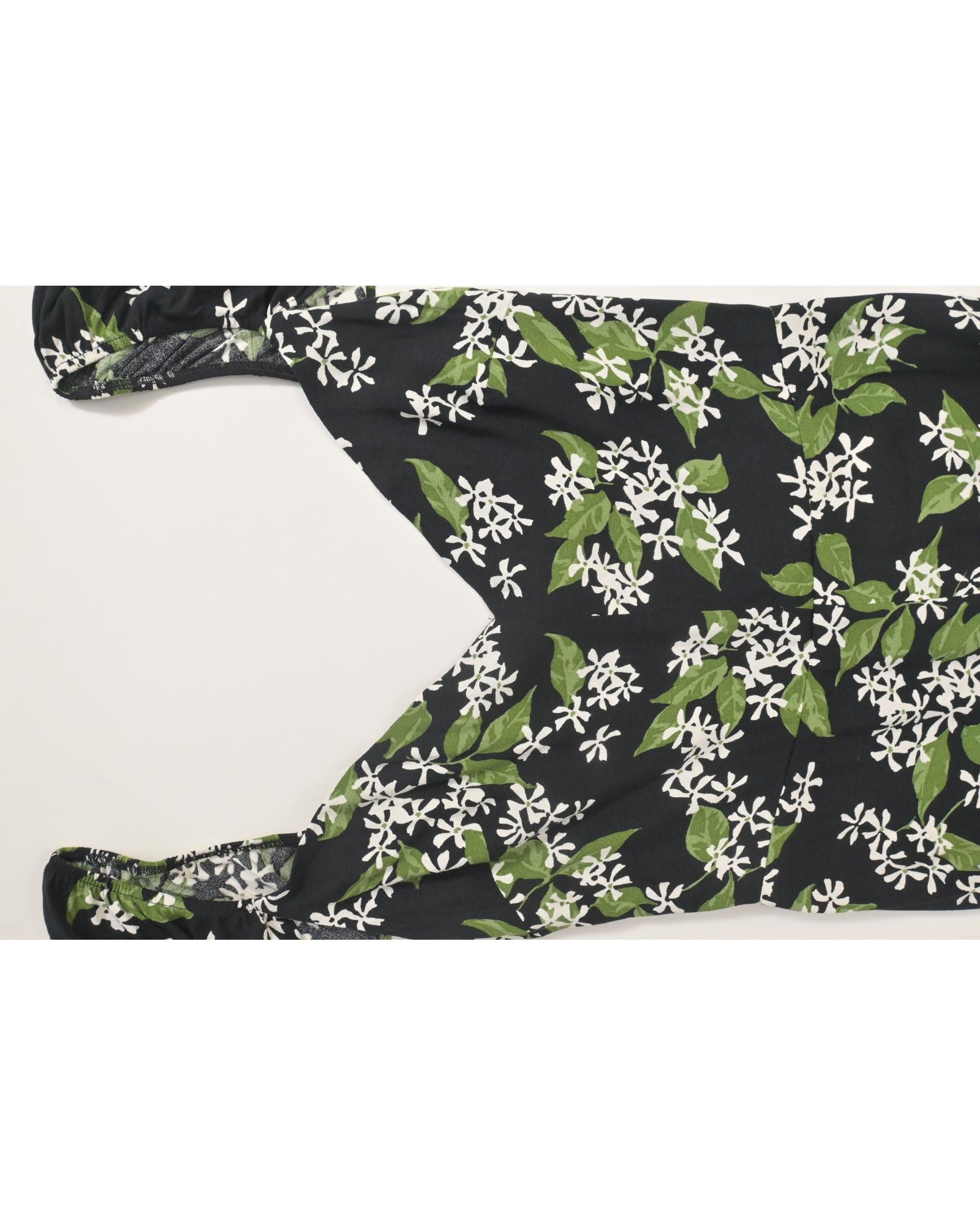 - Bold black and green floral print