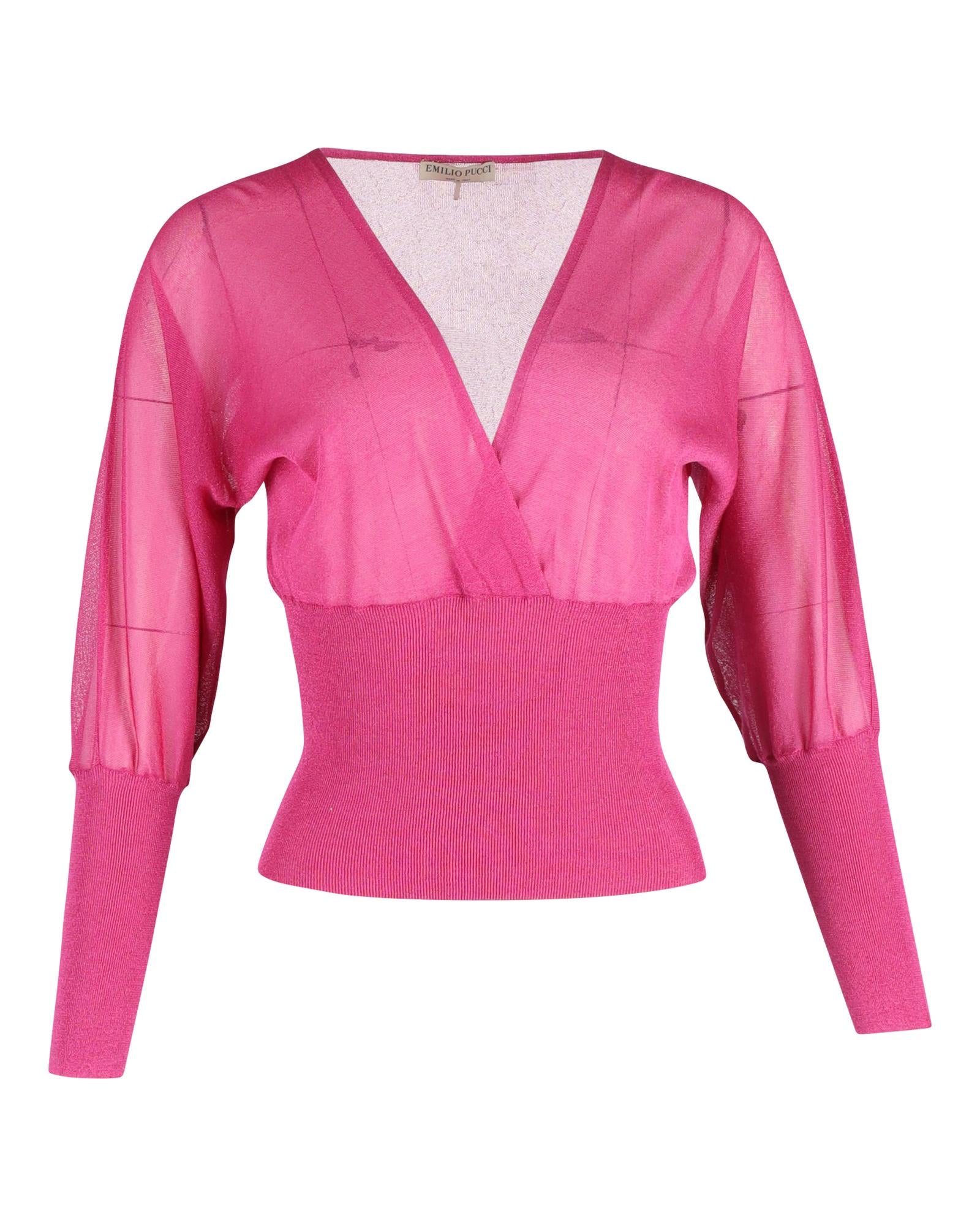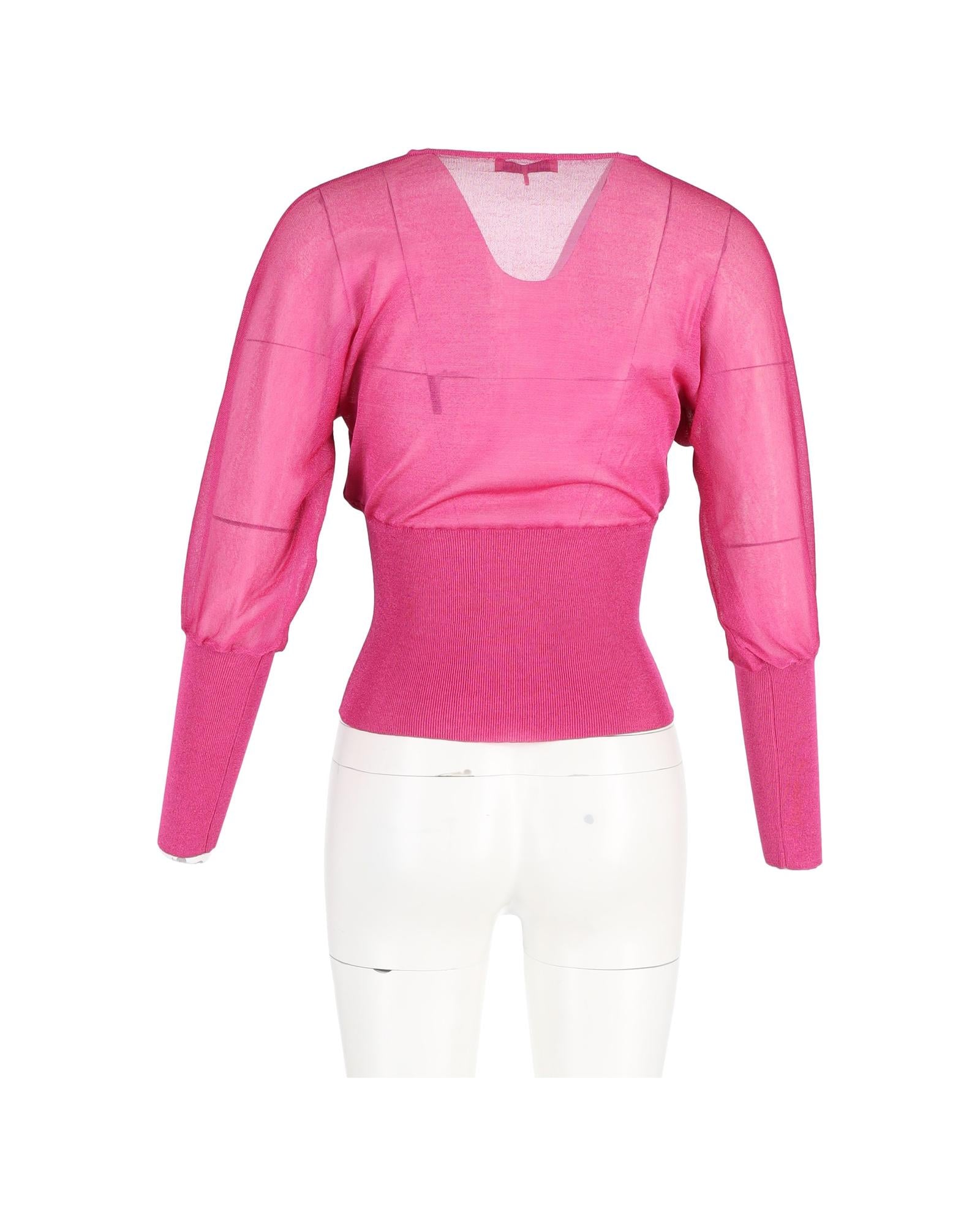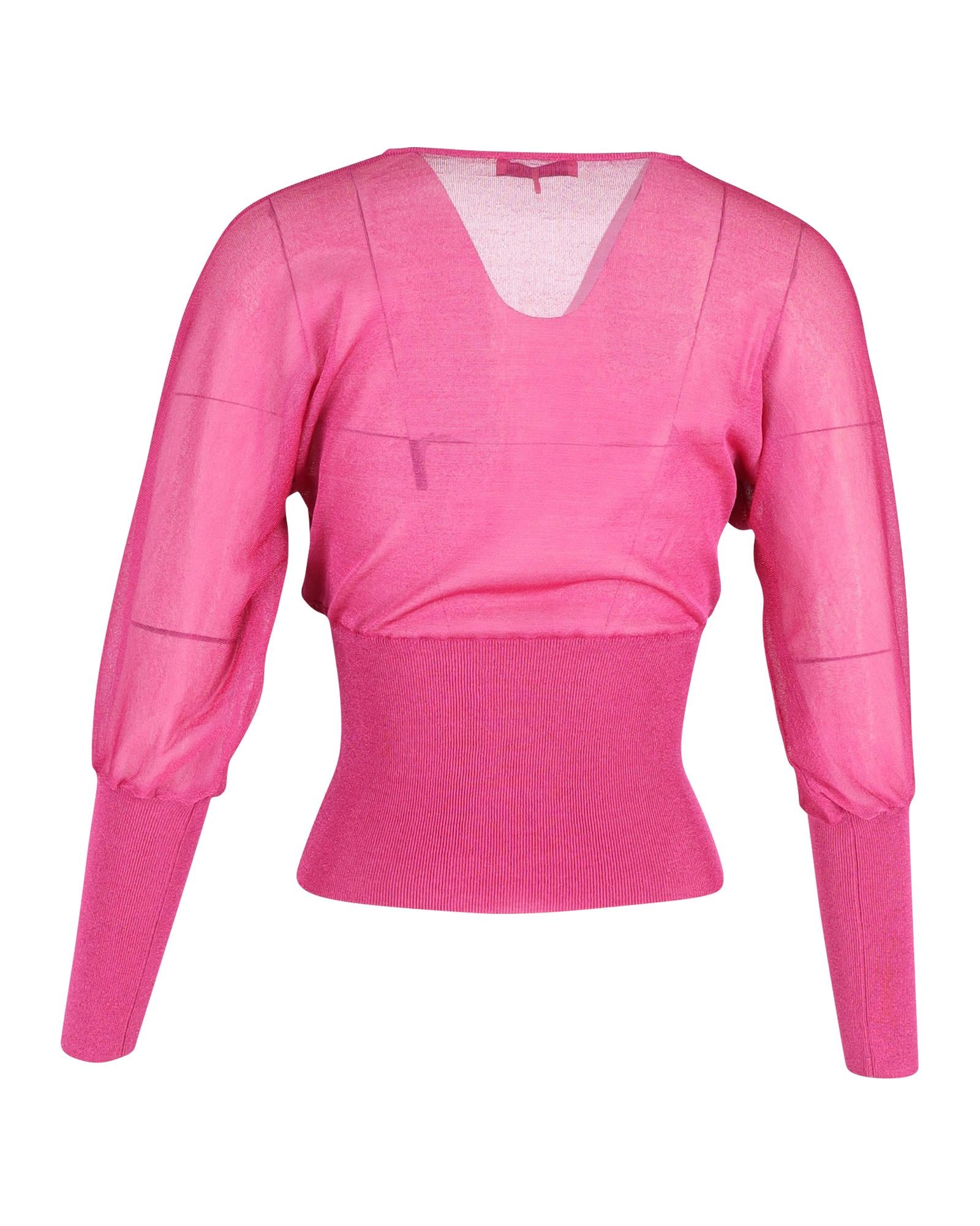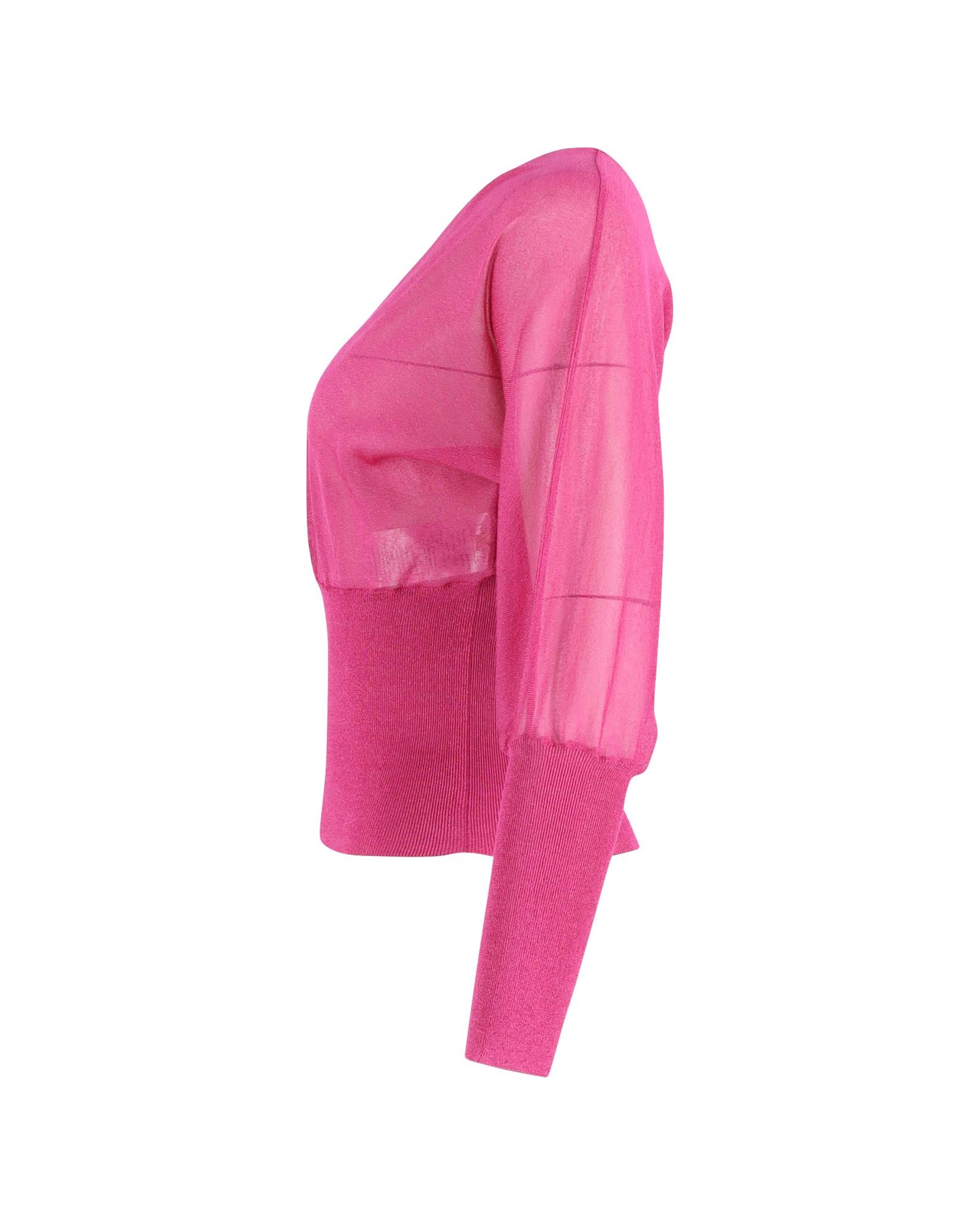 - neck Knitted Blouson Top in Pink Silk