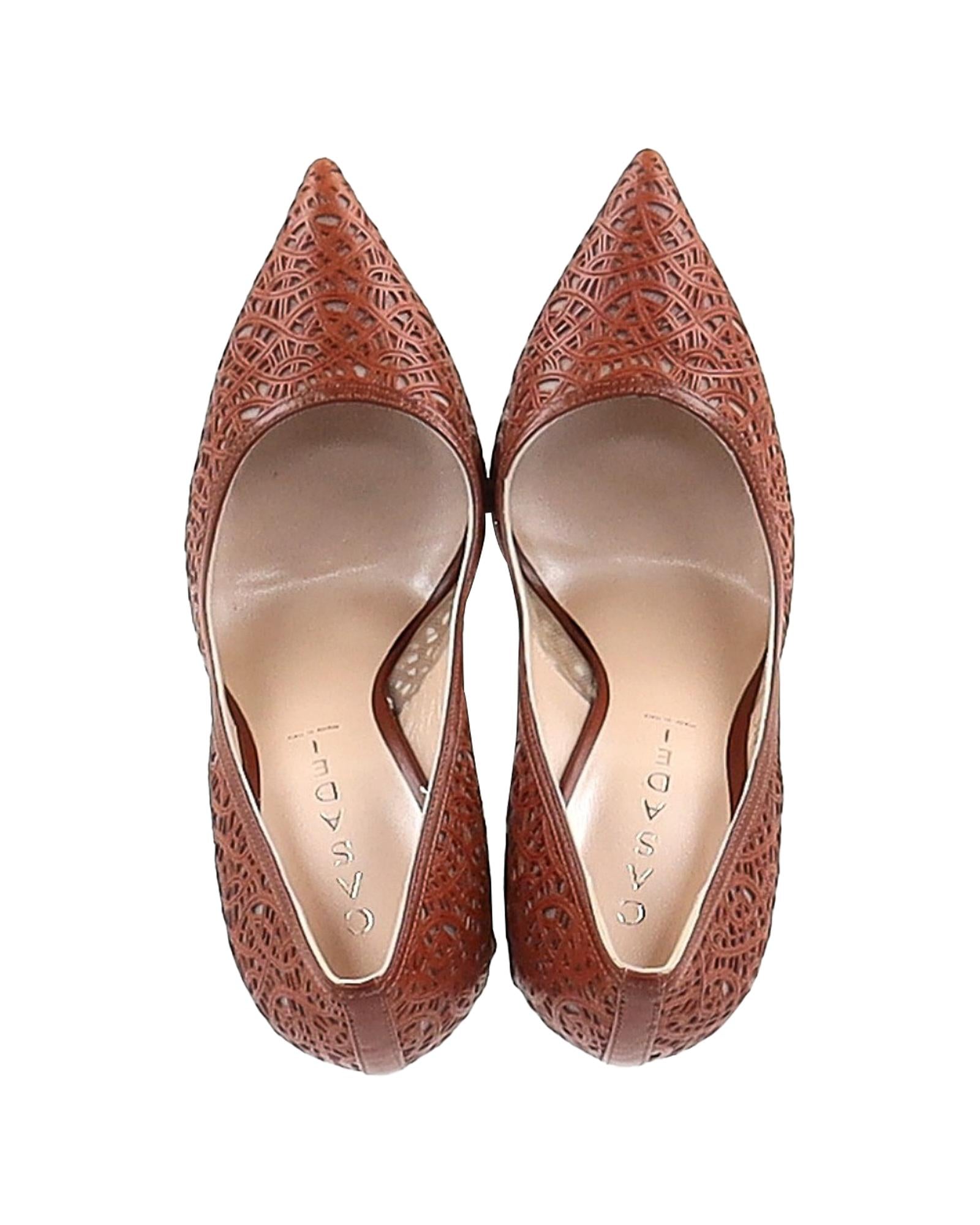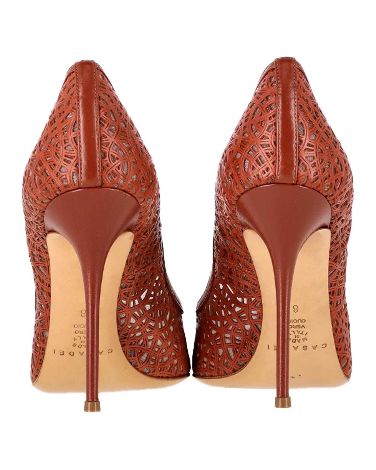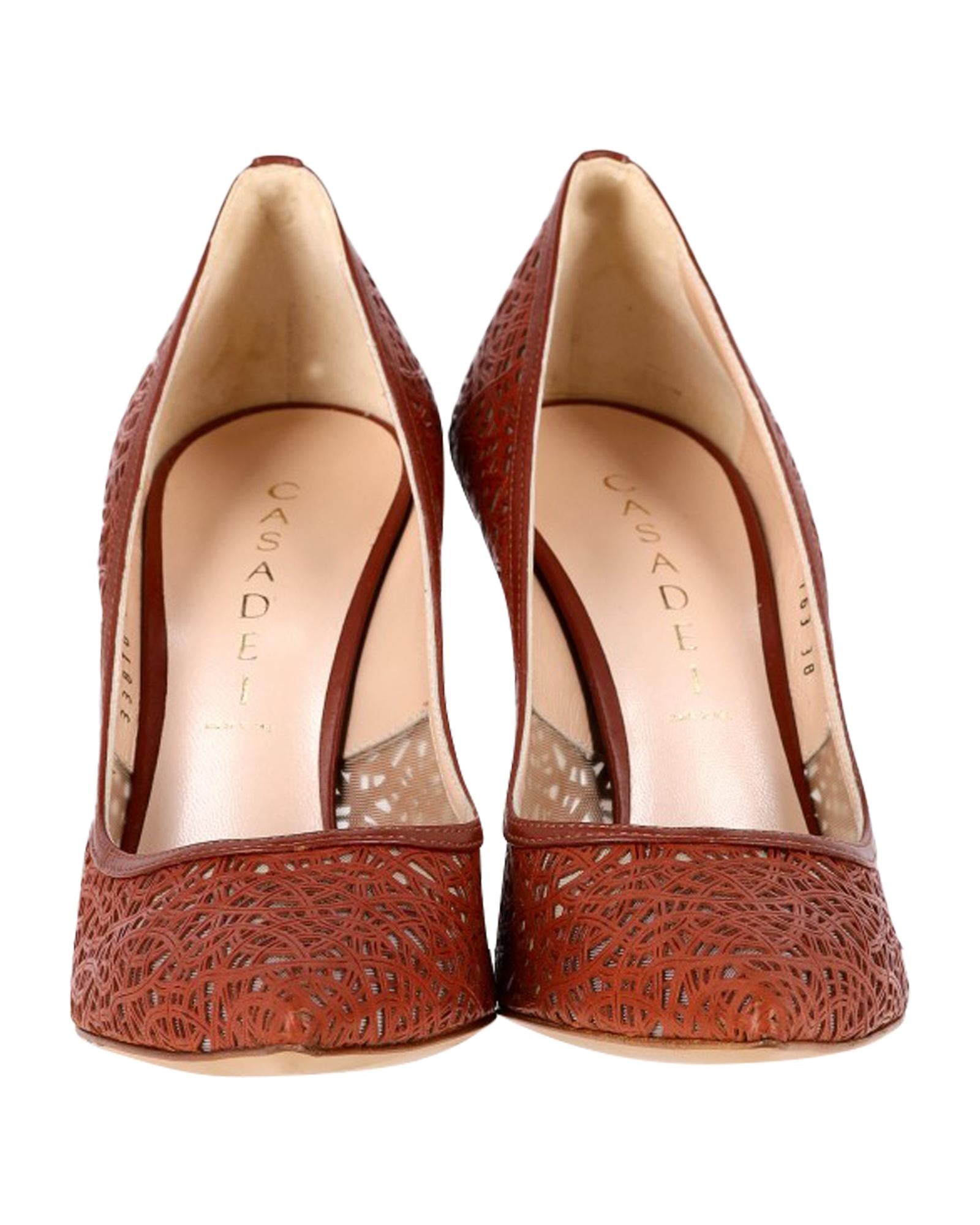 - Casadei Pointed Lasercut Pumps in Brown Leather