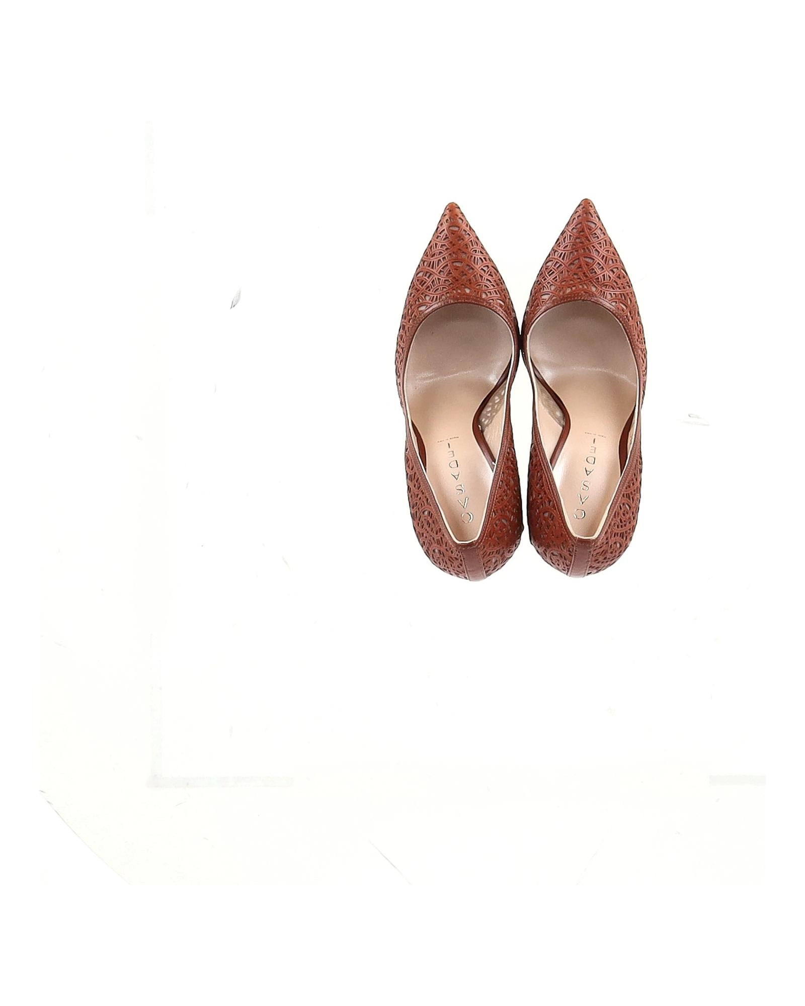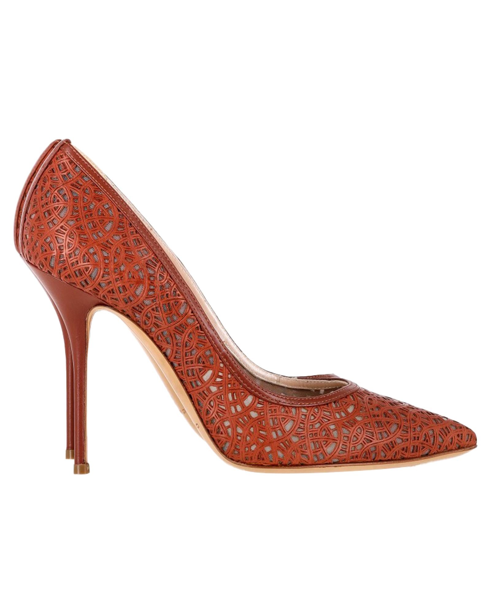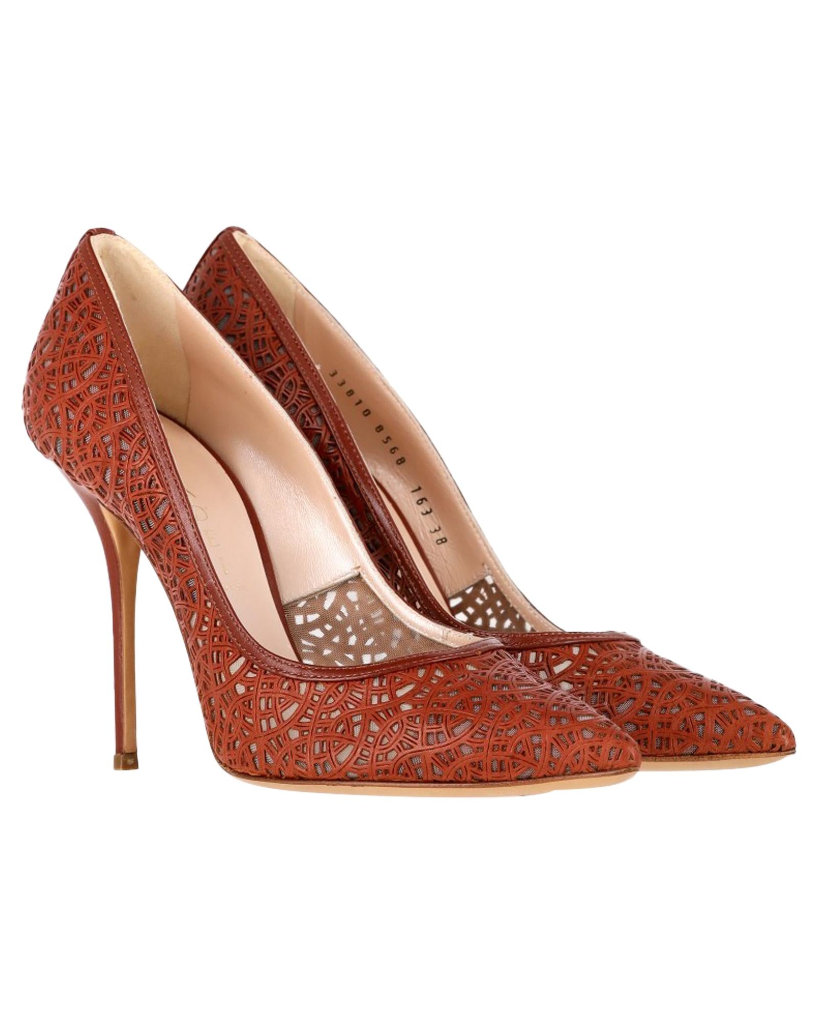 - Casadei Pointed Lasercut Pumps in Brown Leather
