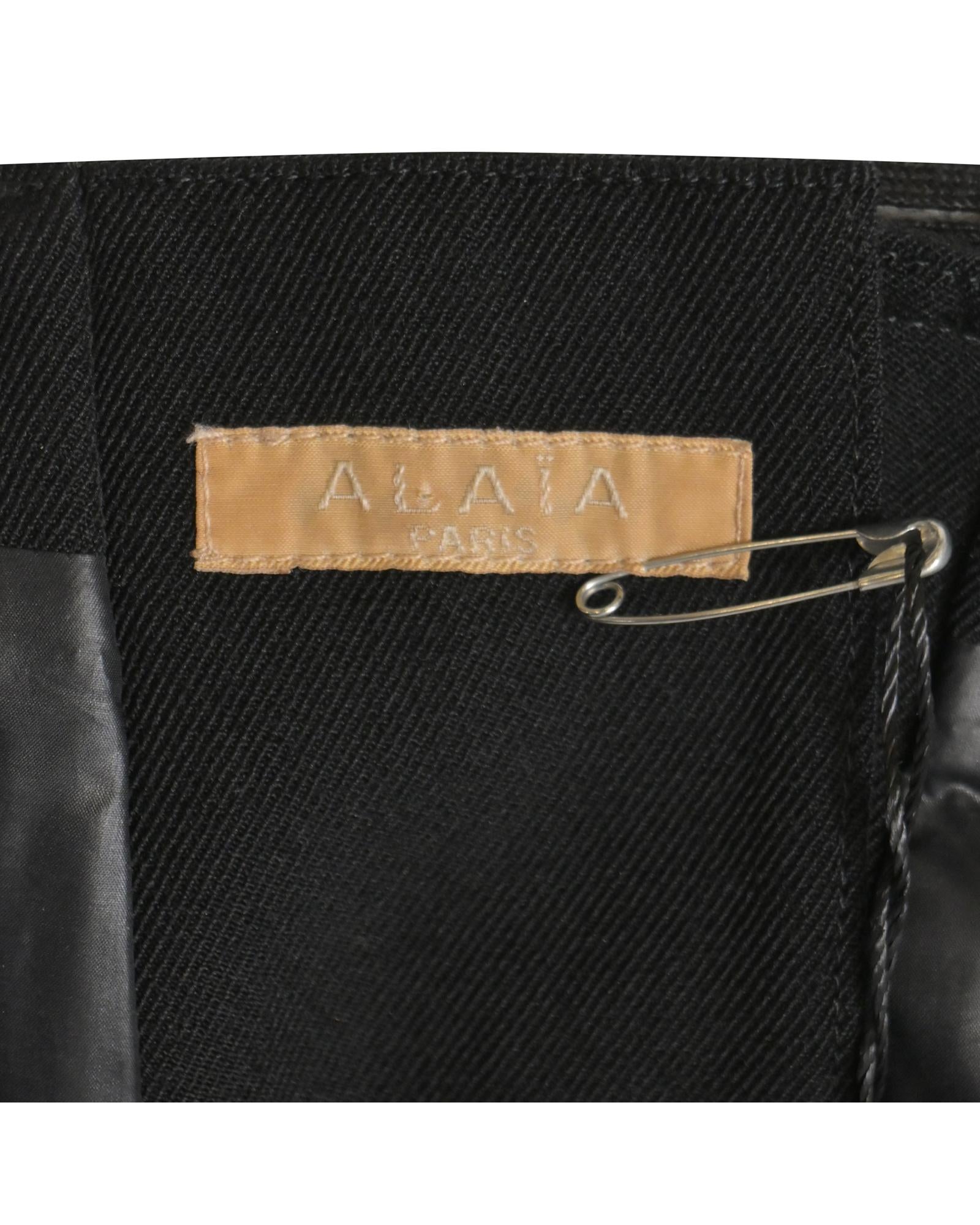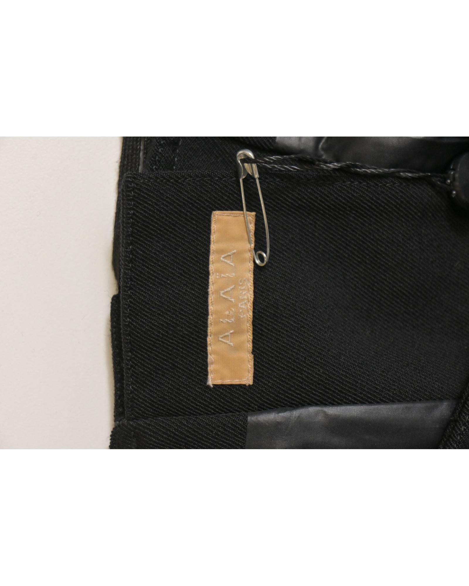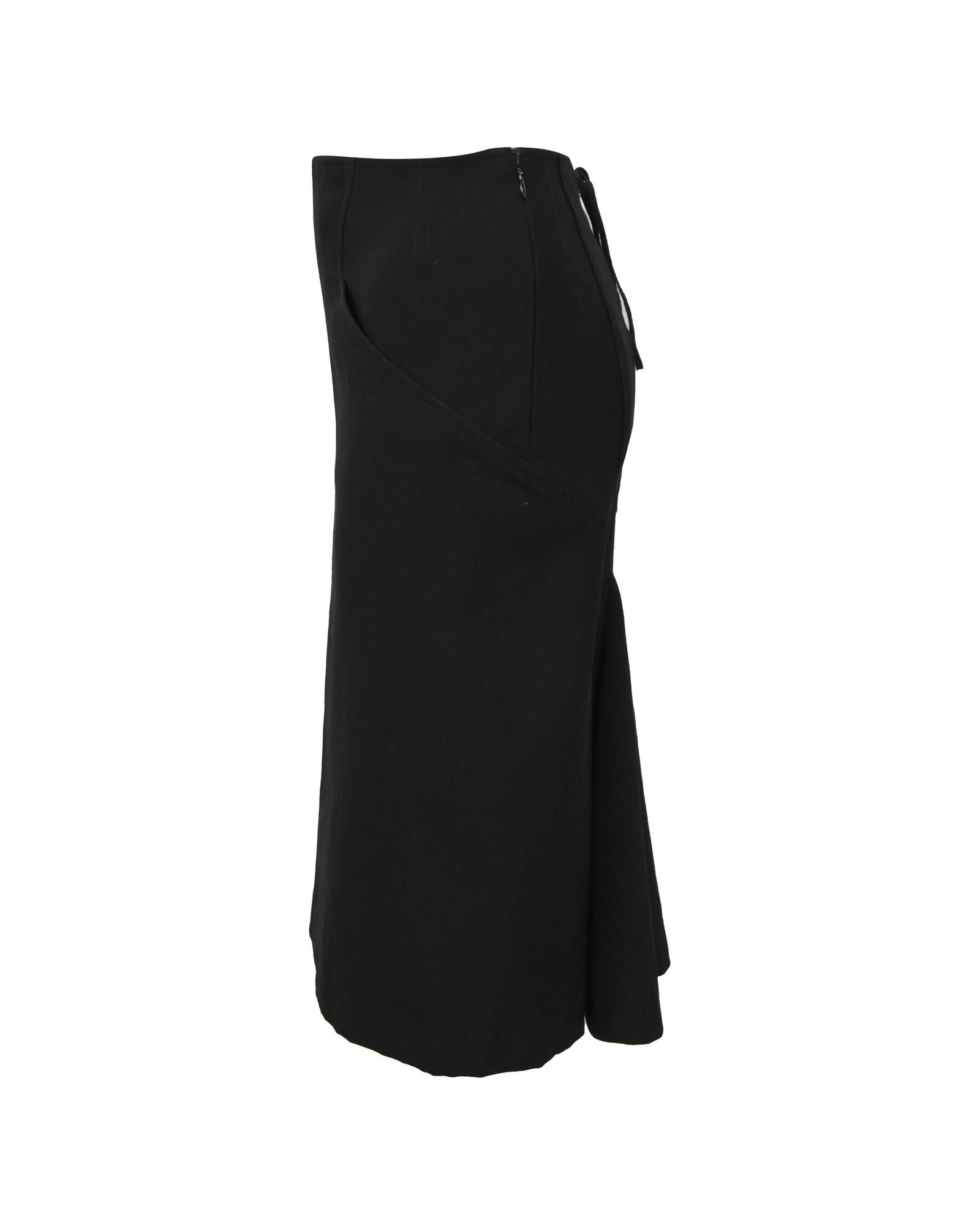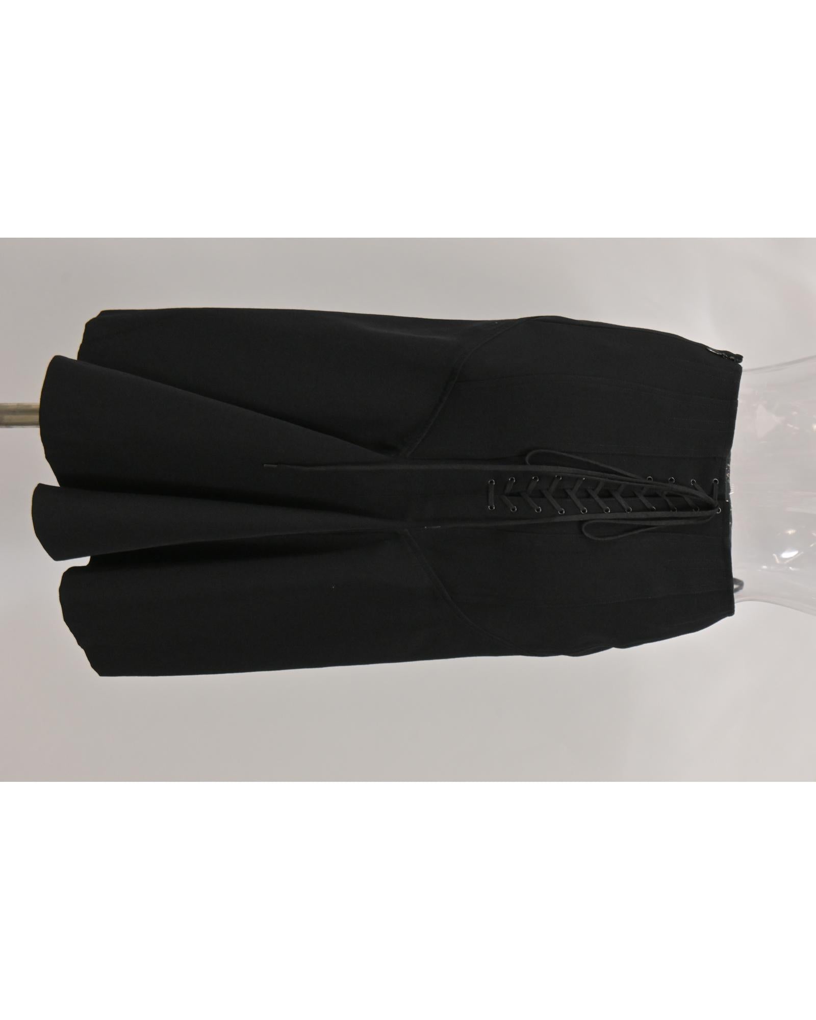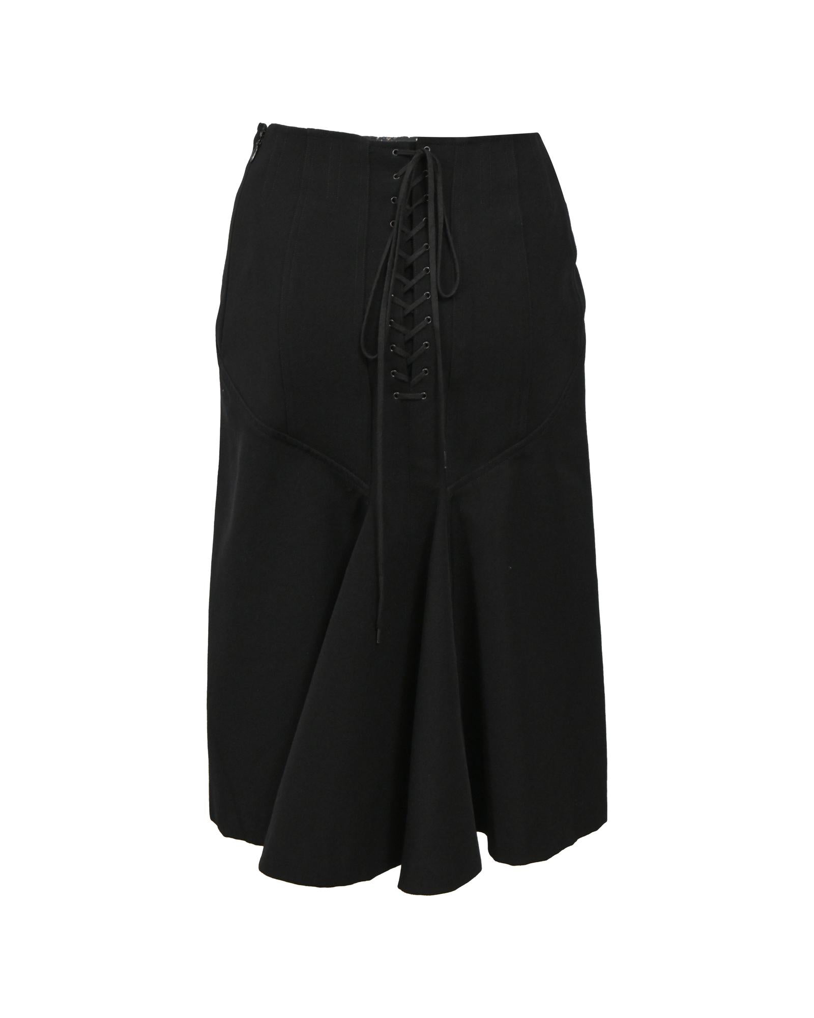 - Waisted Back Lace Tie Detail Skirt in Black Cotton Wool