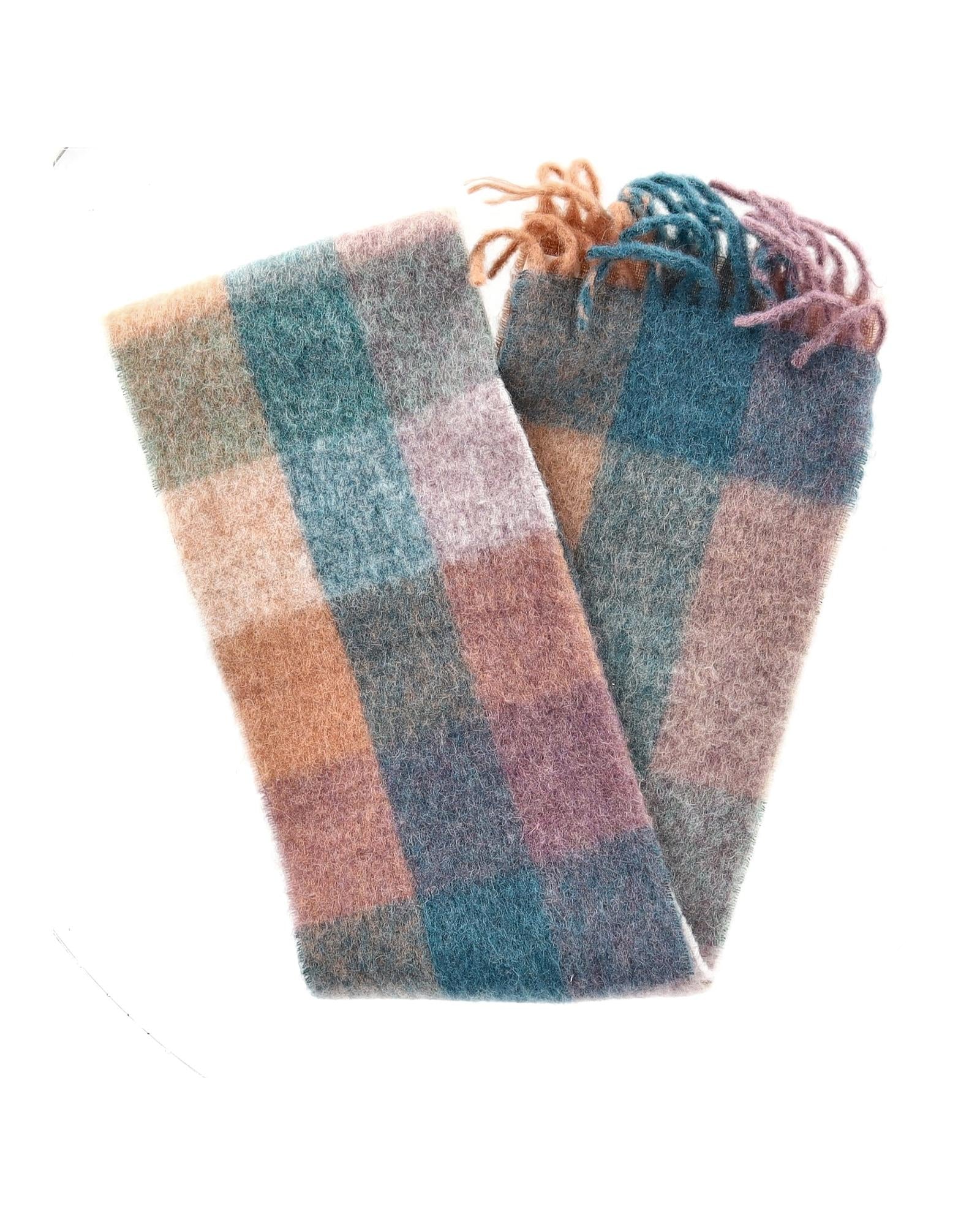 Fringed Wool Scarf with Vibrant Color-Block Design