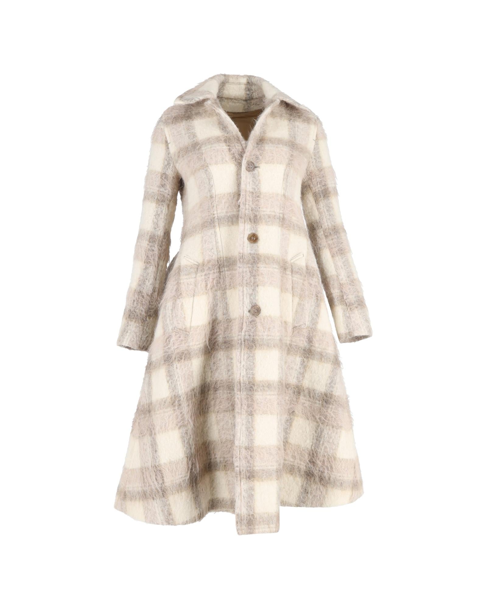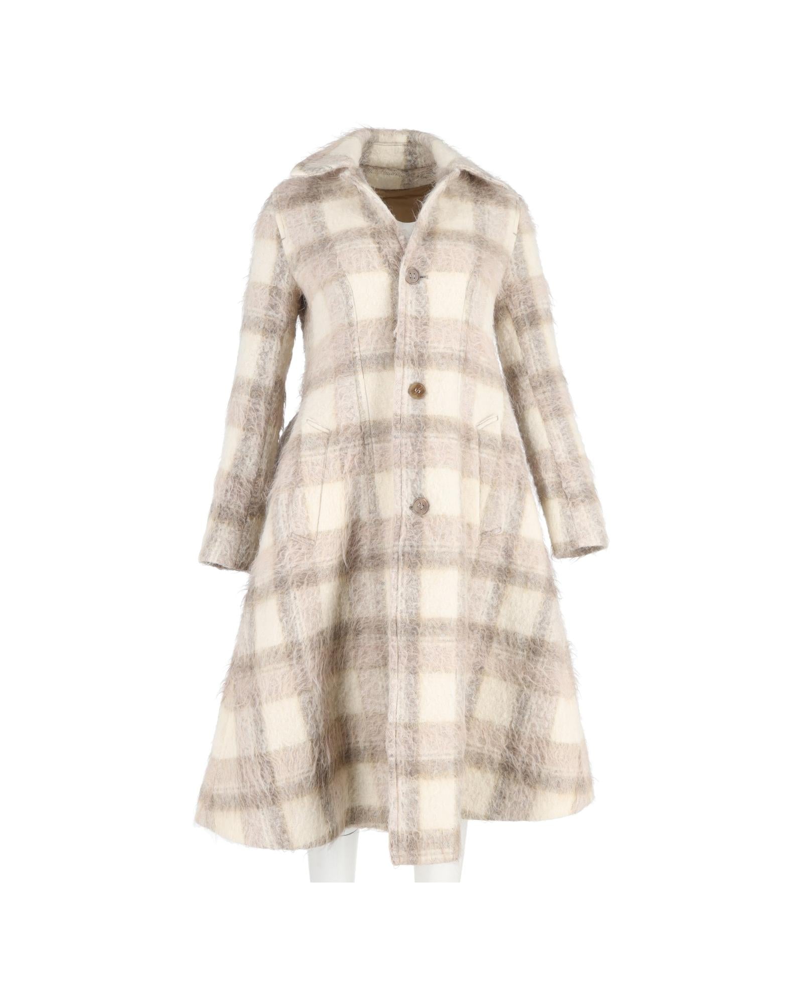 • Acne Studios Checkered Belted Coat in Brown Alpaca Wool