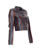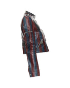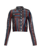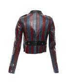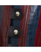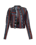 Pre-owned Stylish Leather Jacket with Vertical Stripes and Button Details