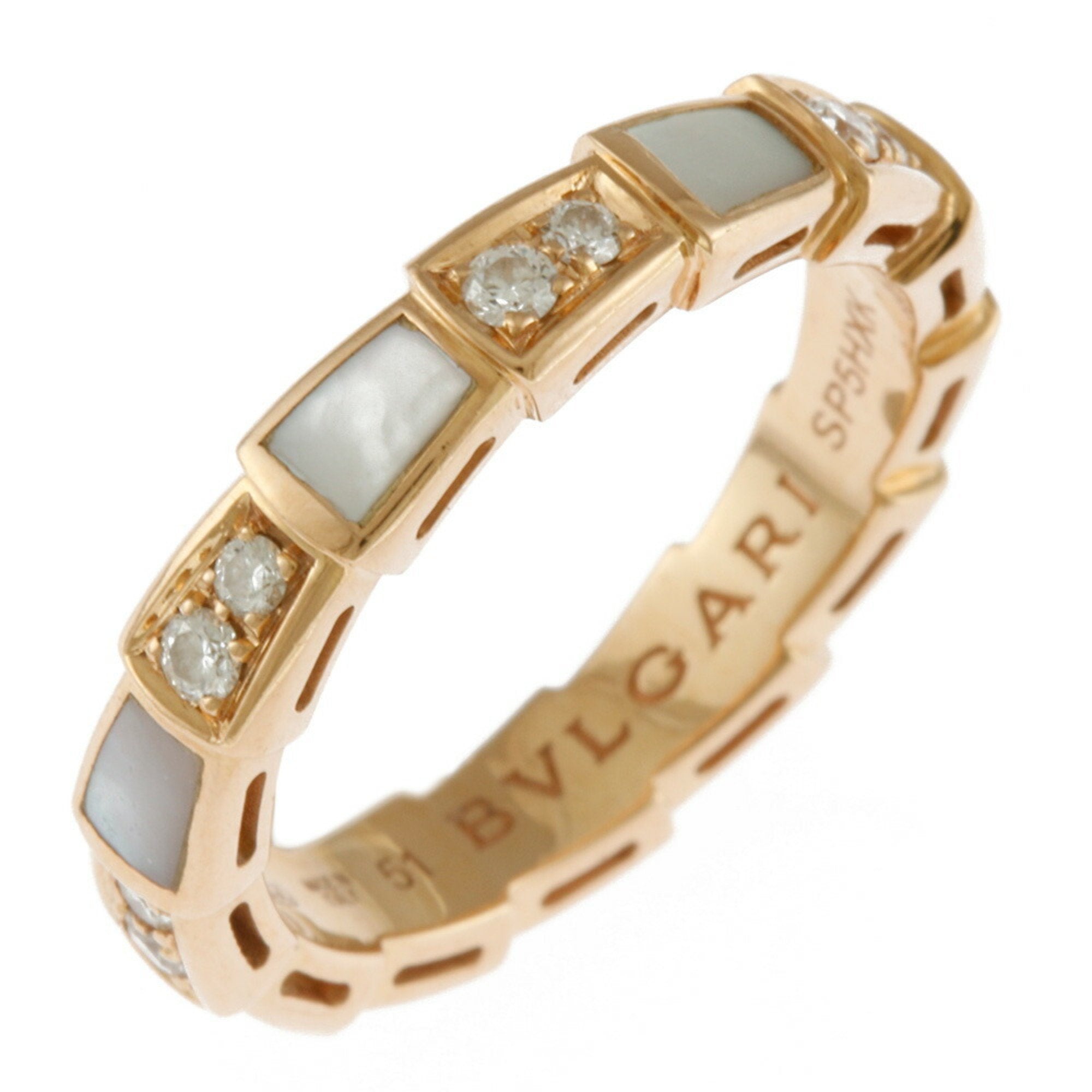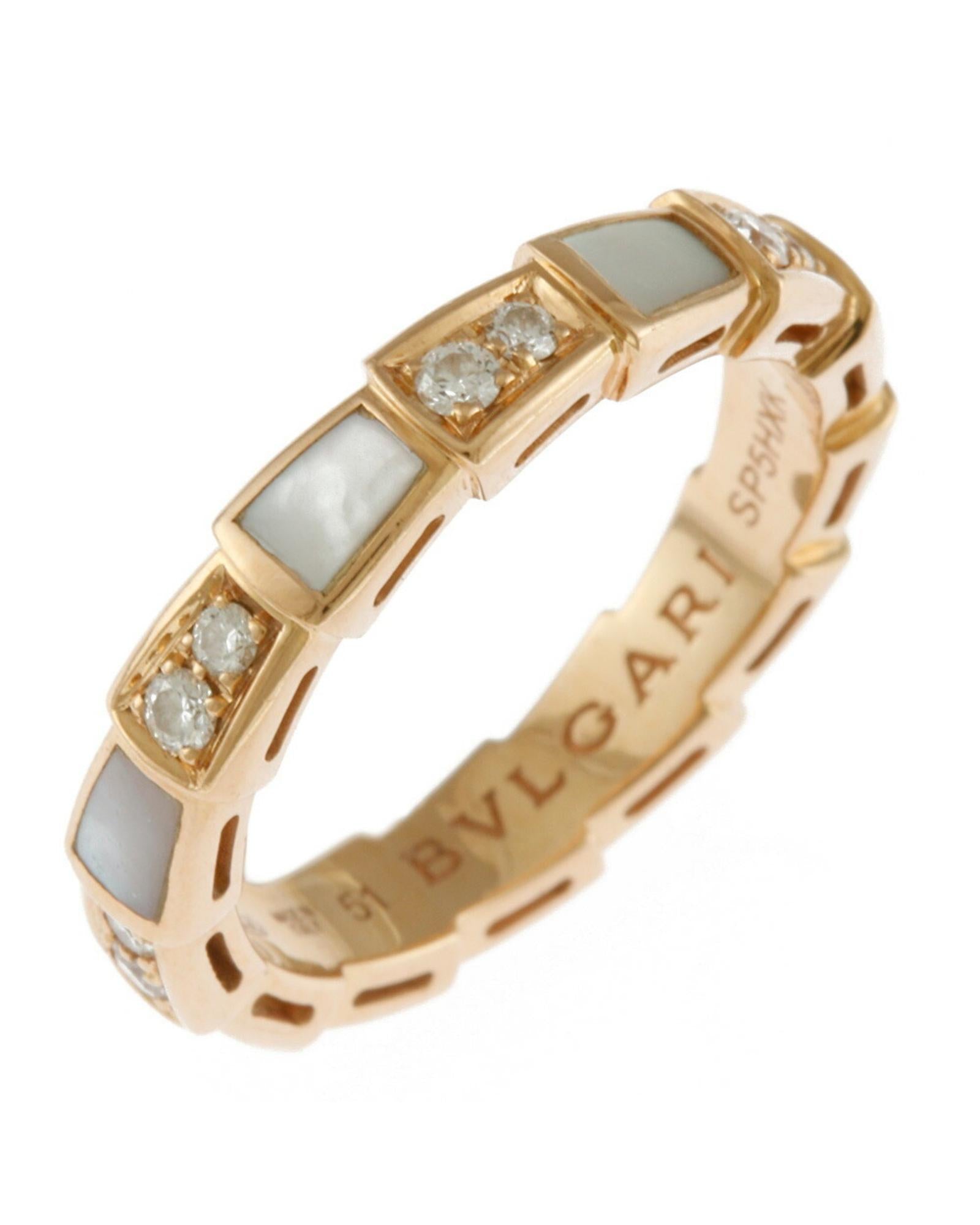 Captivating 18K Rose Gold Serpenti Viper Band Ring with Diamonds and Shell Accents