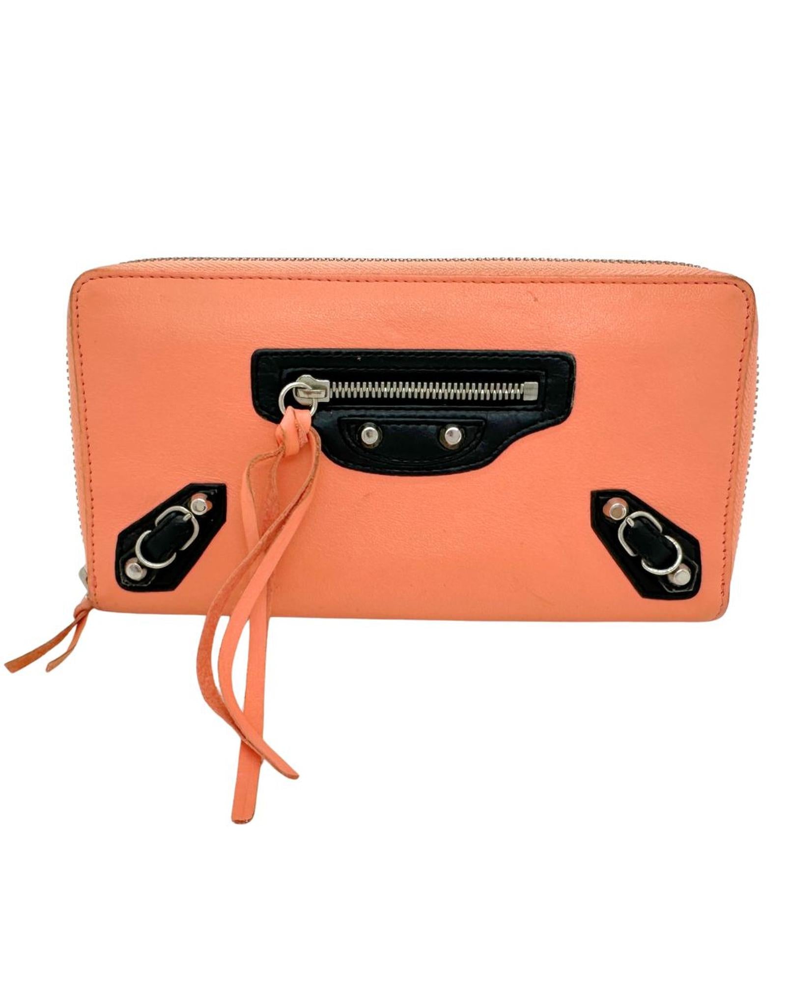 The Balenciaga Round Zipper long wallet designed for ladies is crafted from high-quality calf leather ensuring durability and a luxurious feel. It features a practical interior with one coin purse three bill compartments and twelve card pockets offering ample storage for everyday essentials.