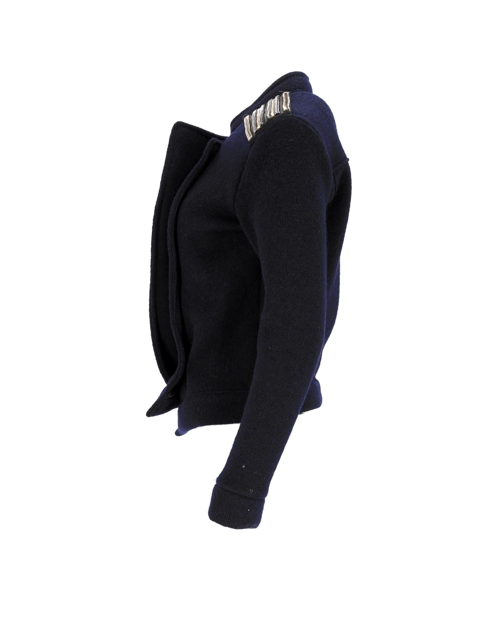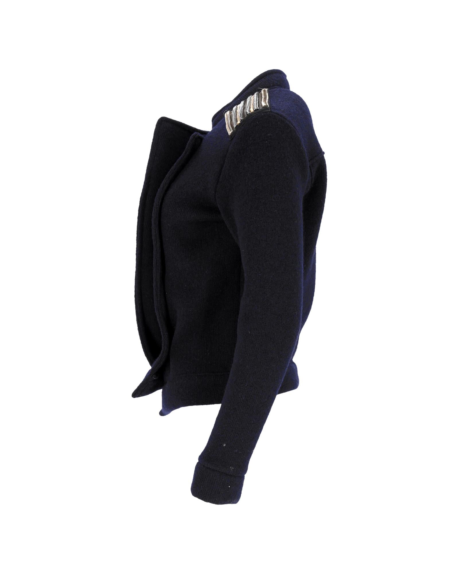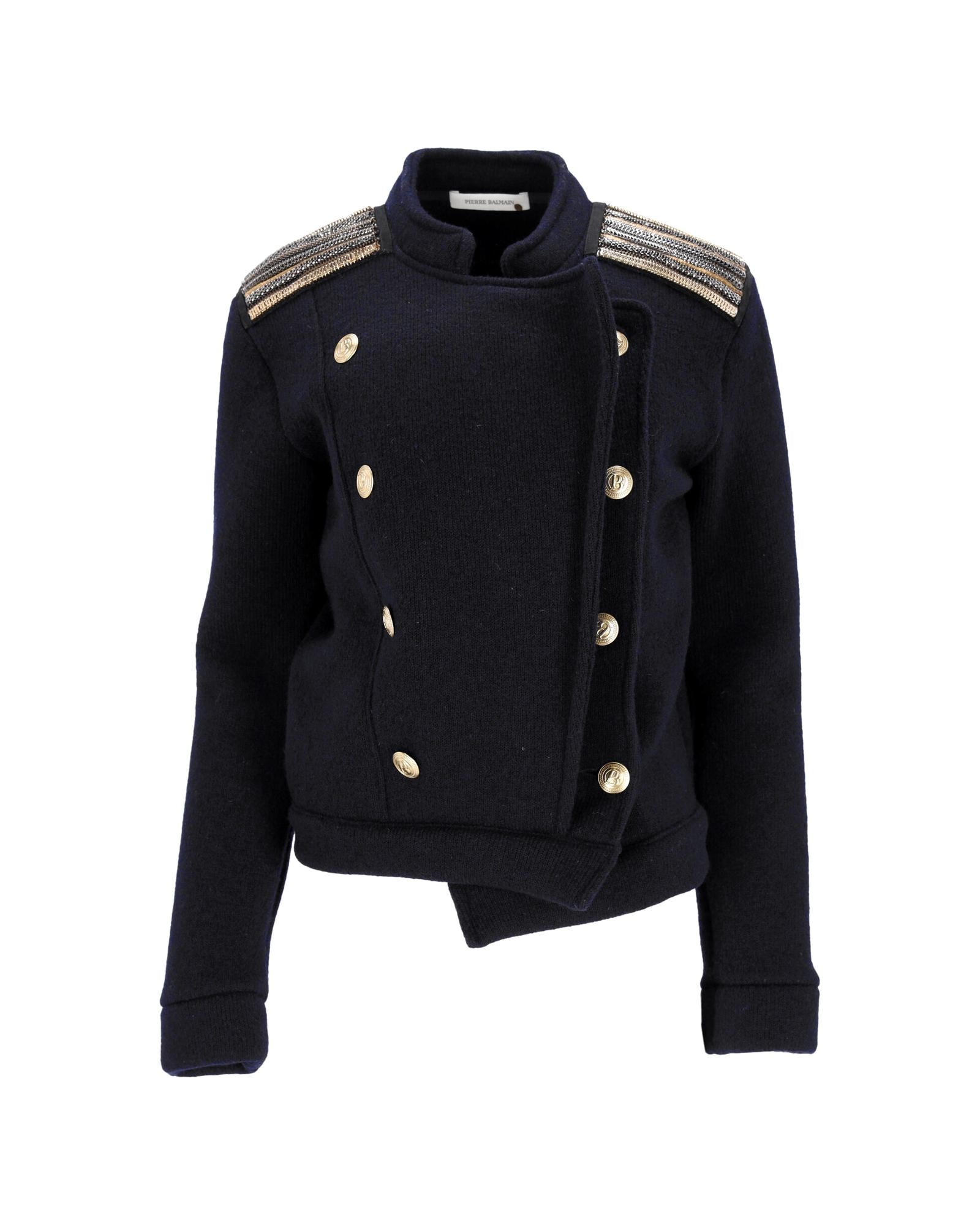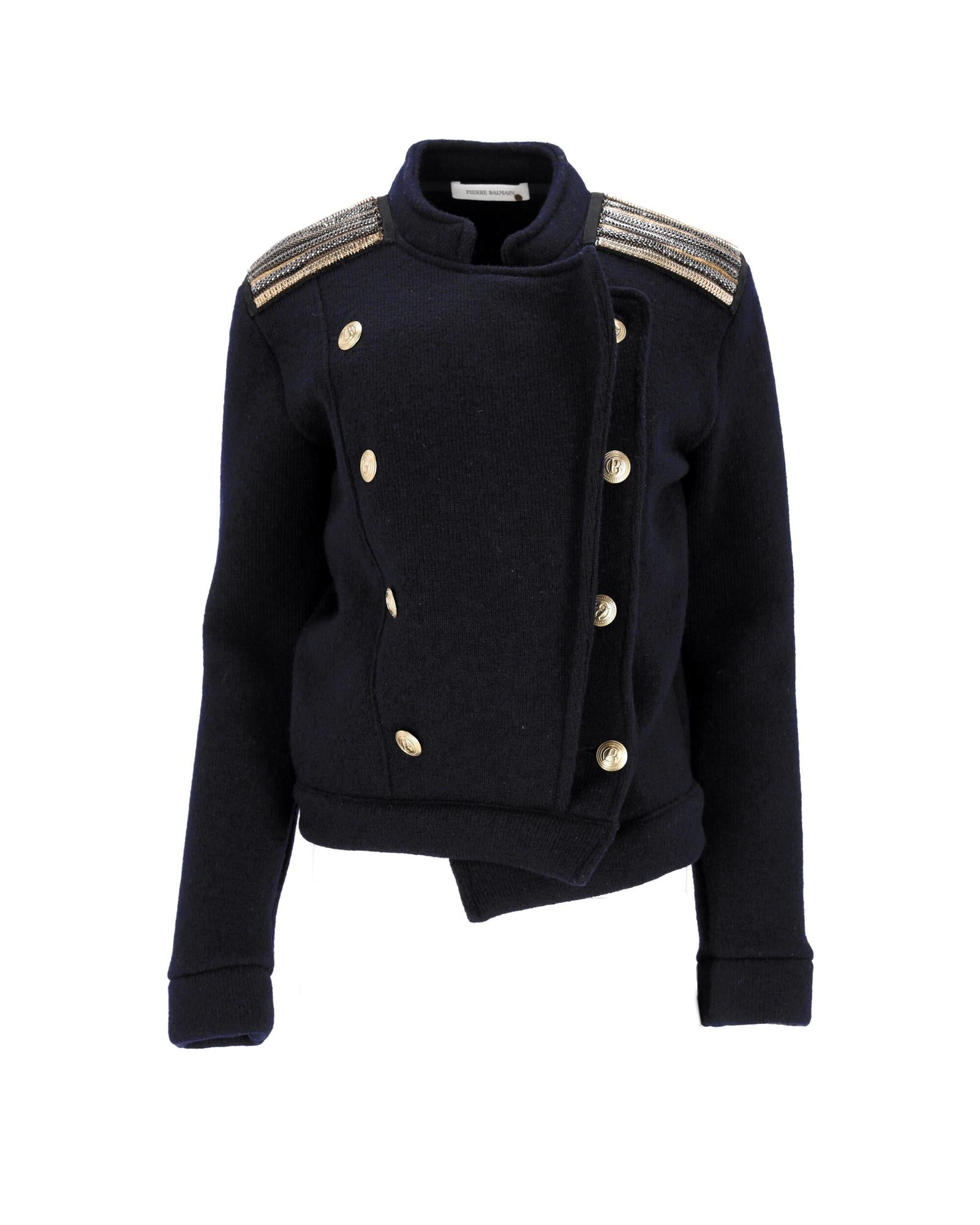 - Pierre Balmain Embellished Epaulets Blazer in Navy Blue Wool