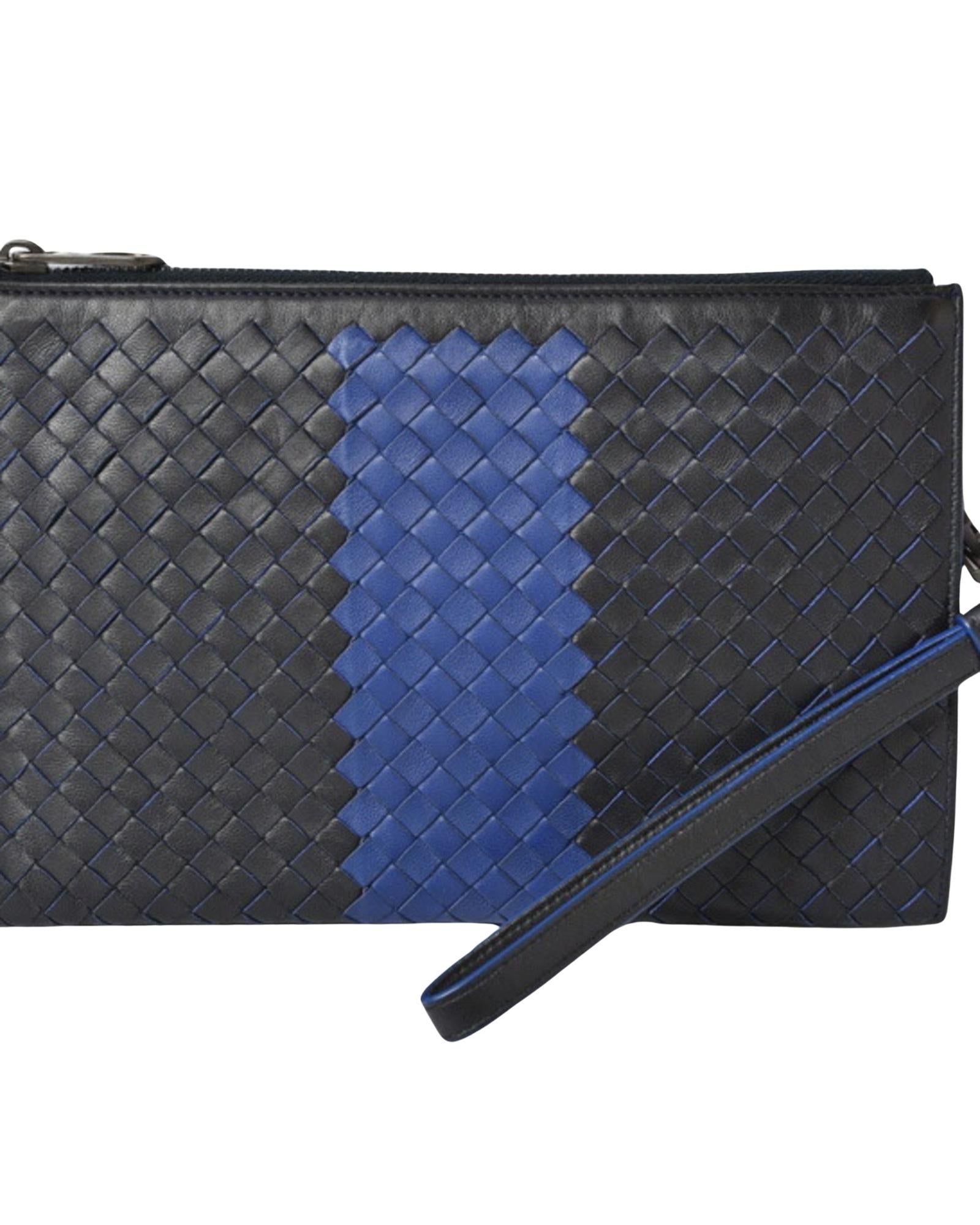 Brand: Bottega Veneta Model: Intrecciato Color: Black Material: Leather Inclusions: Hand strap Dimensions: 15.5cm x 24.5cm Serial number: NA Country of origin: Italy Condition: AB - good condition. Elevate your style with this Bottega Veneta Intrecciato clutch bag and document case featuring the iconic Intrecciato design in classic black and blue hues. Suitable for both men and women it boasts a practical zipper closure and an inner zipper pocket. While showing slight overall scratches and a scratch on the zipper its versatile design and craftsmanship make it a sophisticated accessory for any occasion. We recommend that you look at all the pictures before making your purchase to ensure that you are satisfied with the condition of the item.
