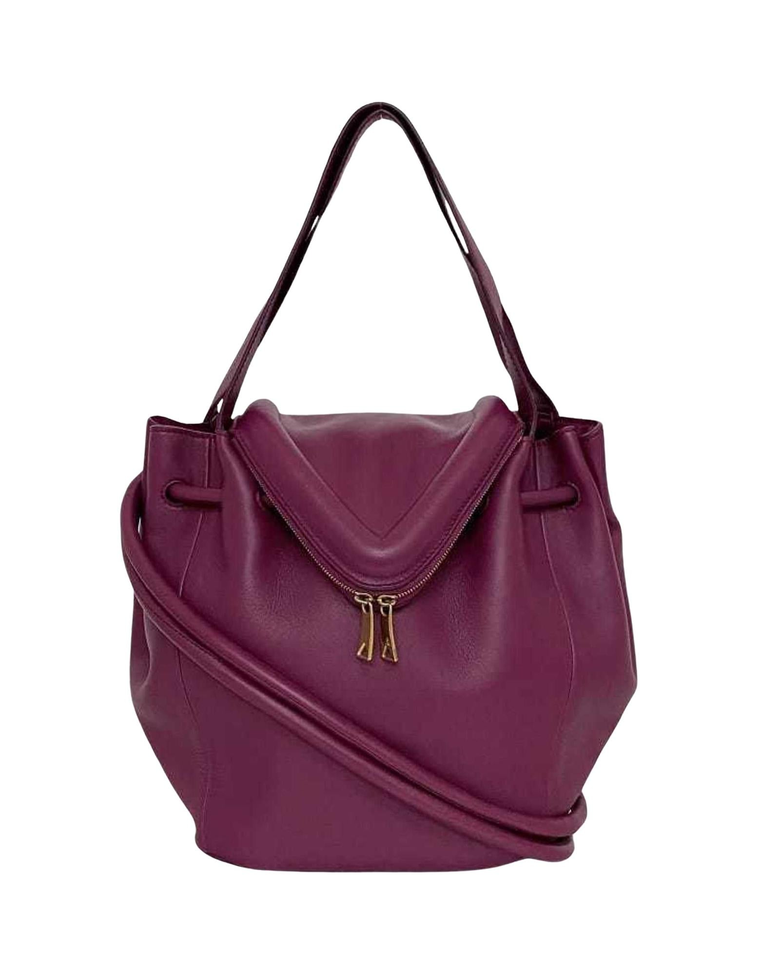 Introducing the Bottega Veneta Beak Handbag a stylish and versatile accessory crafted for modern elegance. Made from luxurious purple leather this handbag boasts both sophistication and functionality. Its unique design allows it to be worn as a handbag or shoulder bag offering versatility to suit any occasion.