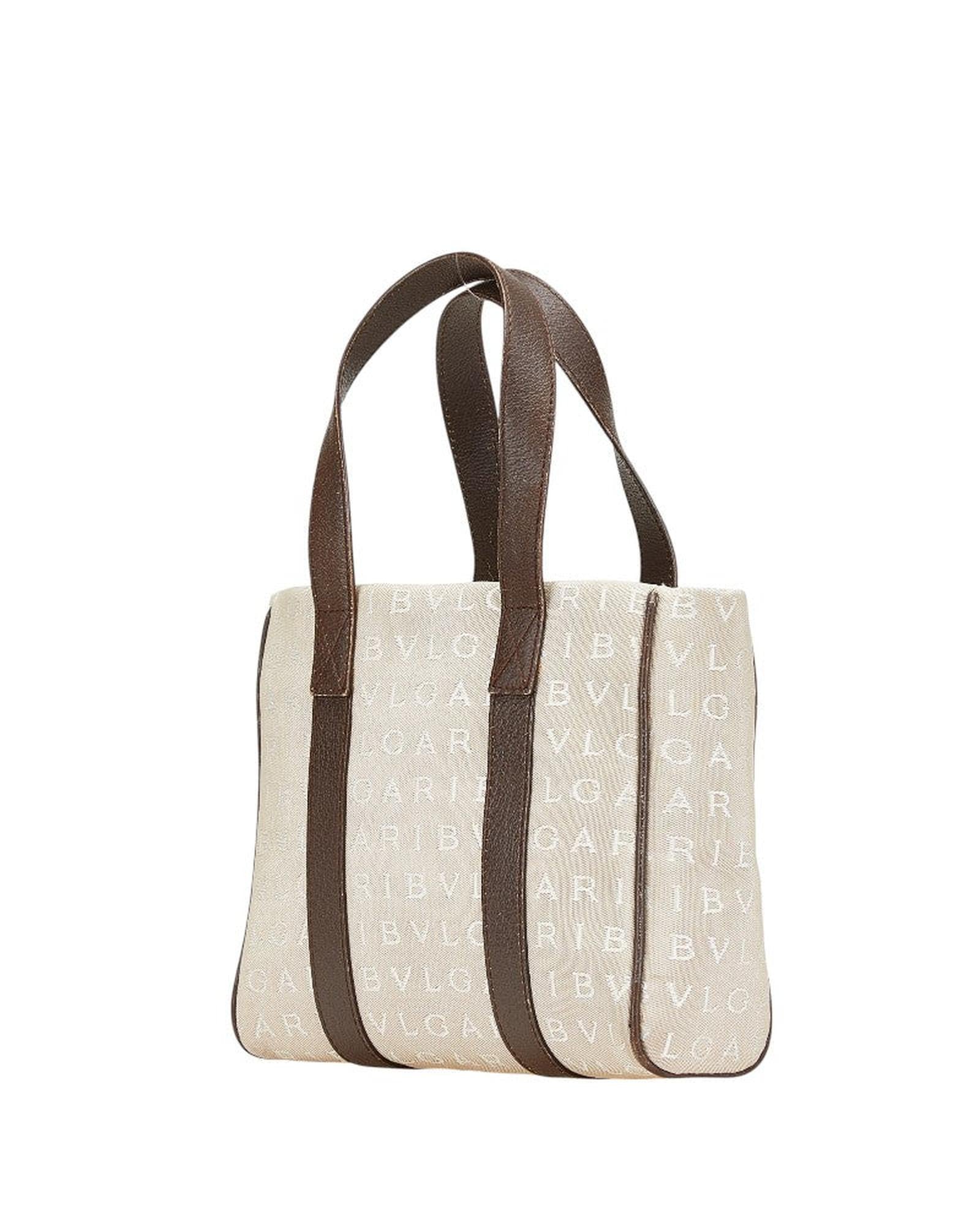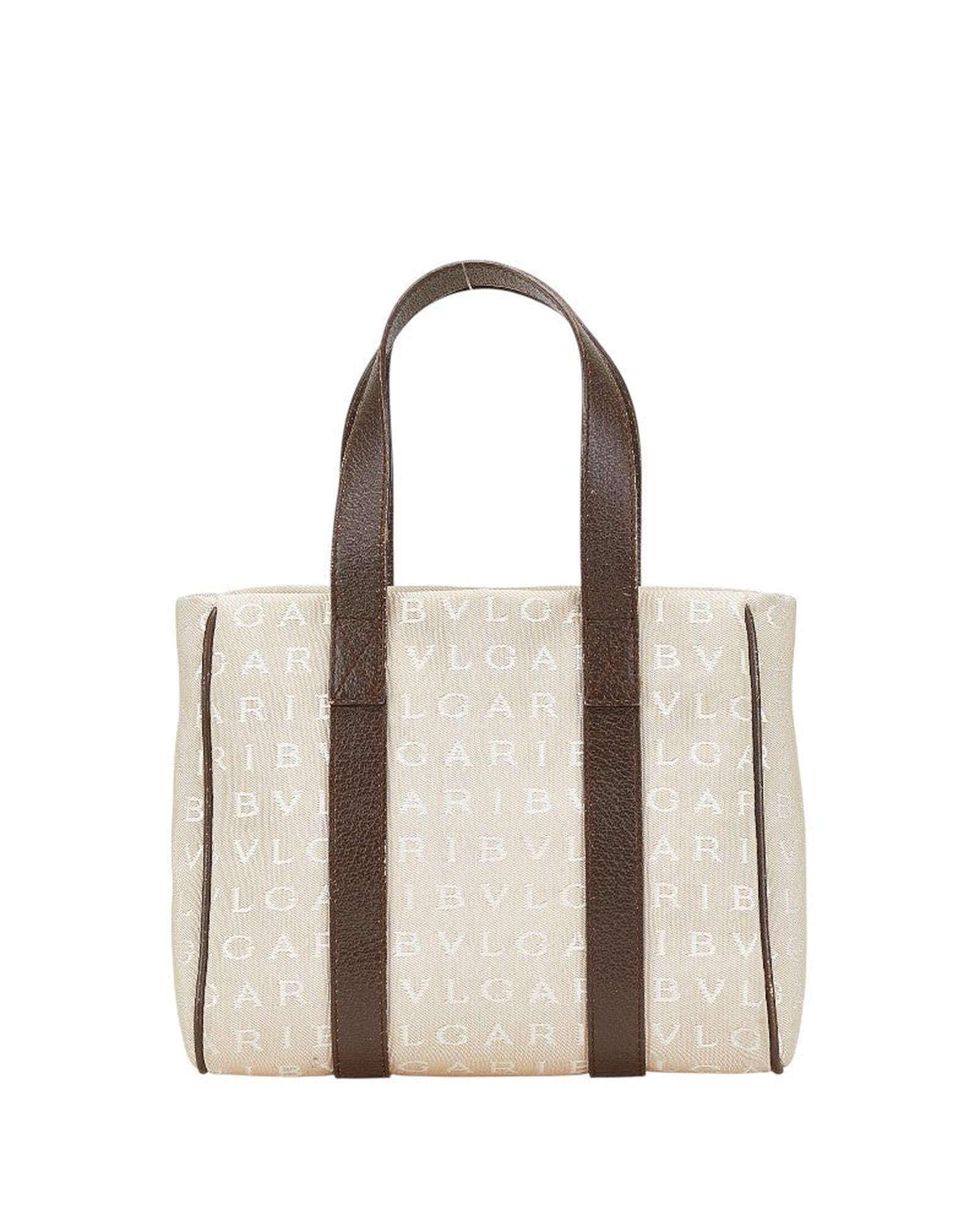 - Item name: Bvlgari Logo Mania Canvas Leather Handbag