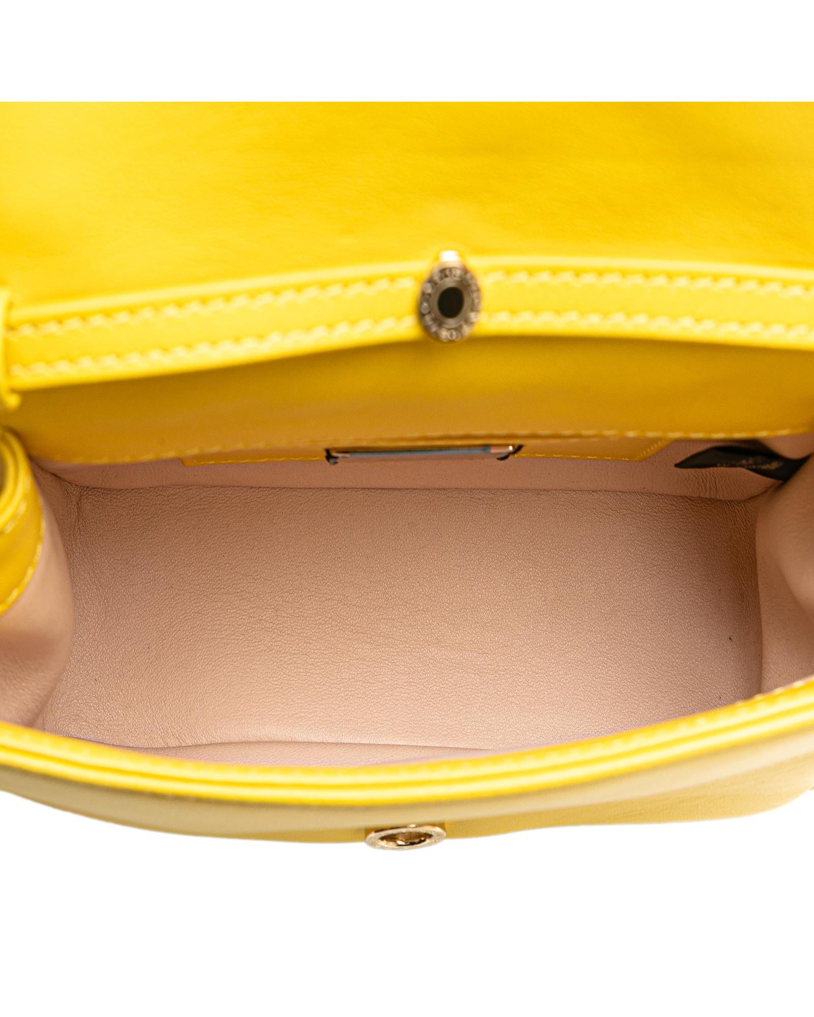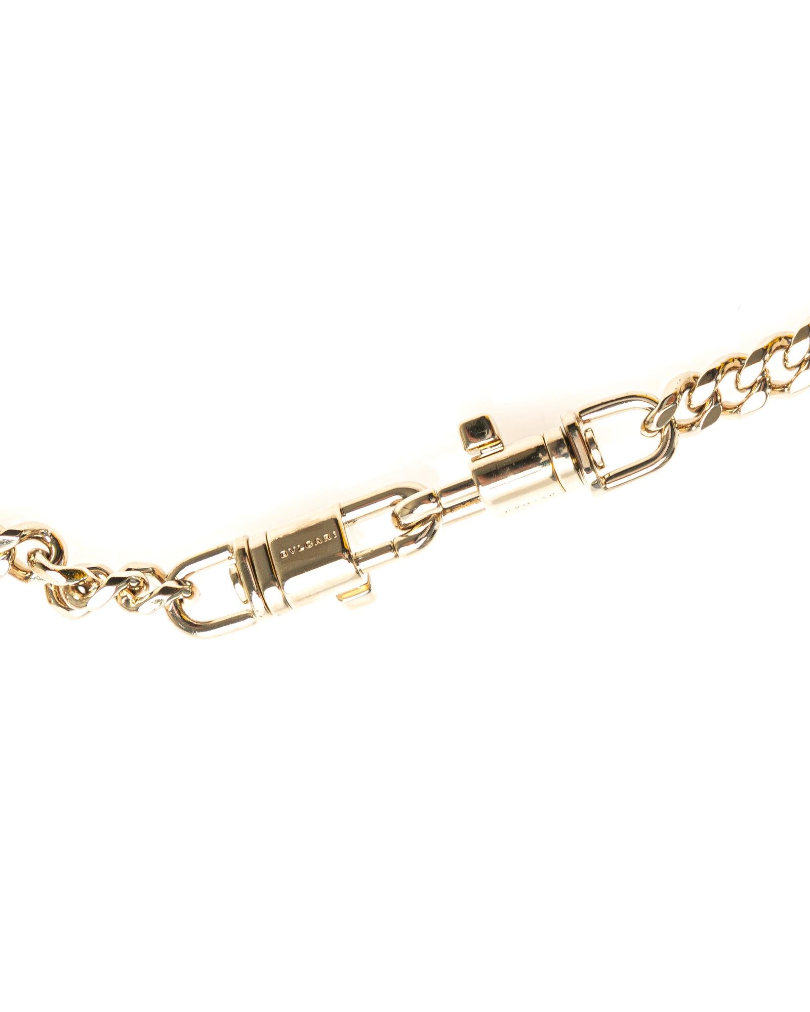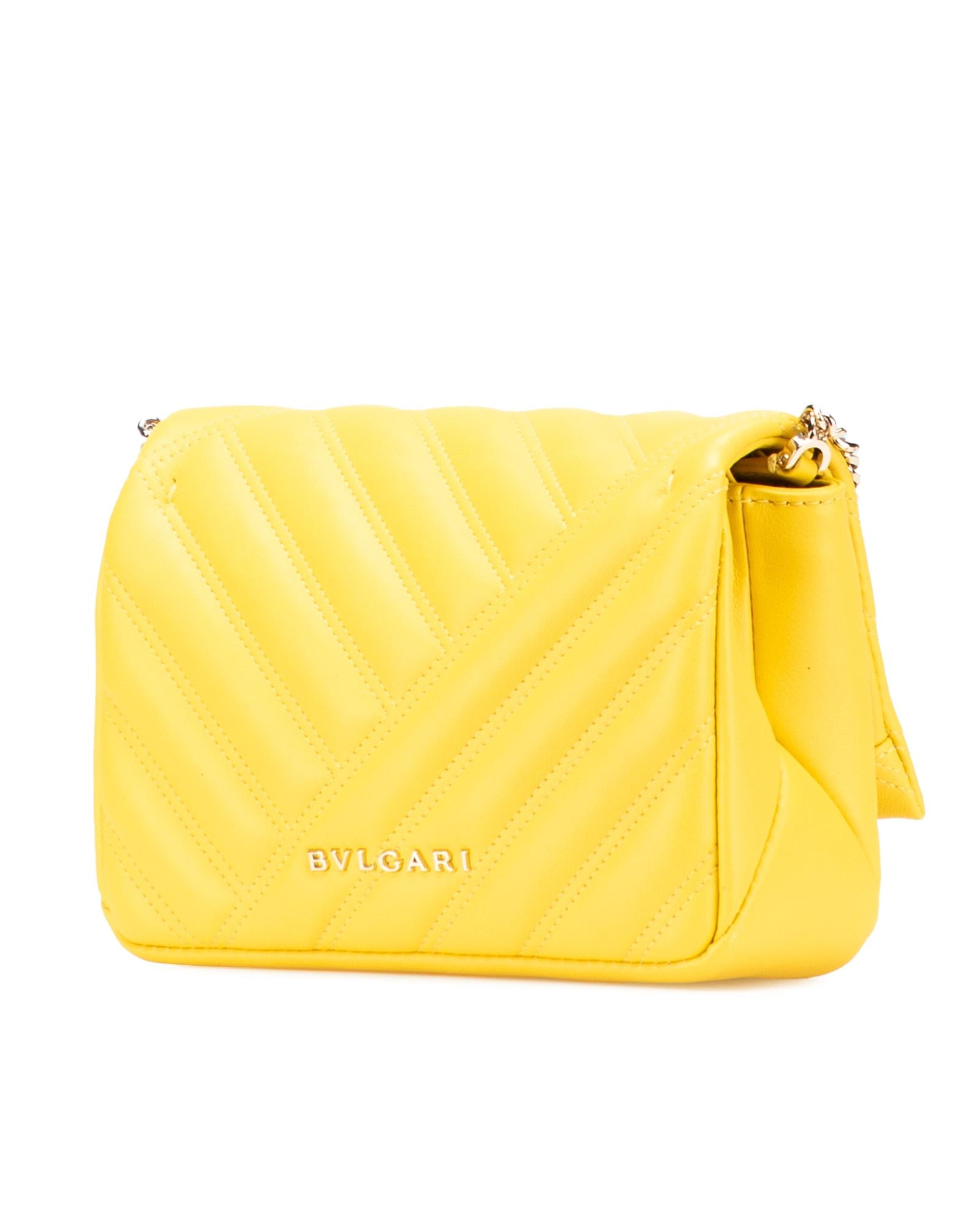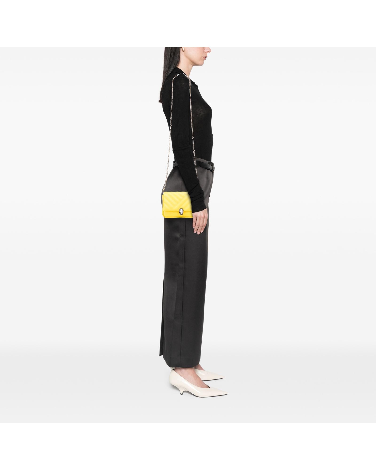 The Serpenti Cabochon features a leather body a chain link strap and a flap with snap button closure.Brand: Bvlgari
