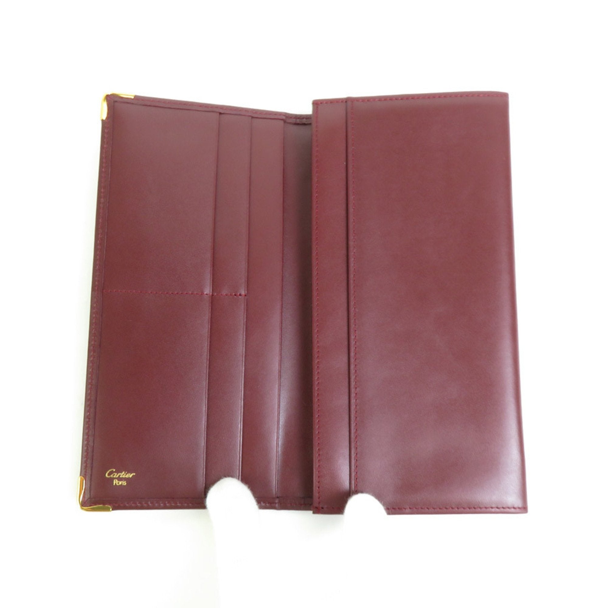 The Cartier Must long wallet by Cartier is a luxurious accessory designed for both men and women. Crafted from high-quality burgundy leather this bi-fold wallet embodies the timeless elegance and exceptional craftsmanship synonymous with the Cartier brand. The deep burgundy color adds a touch of sophistication to the wallet making it a versatile and elegant choice for all occasions.