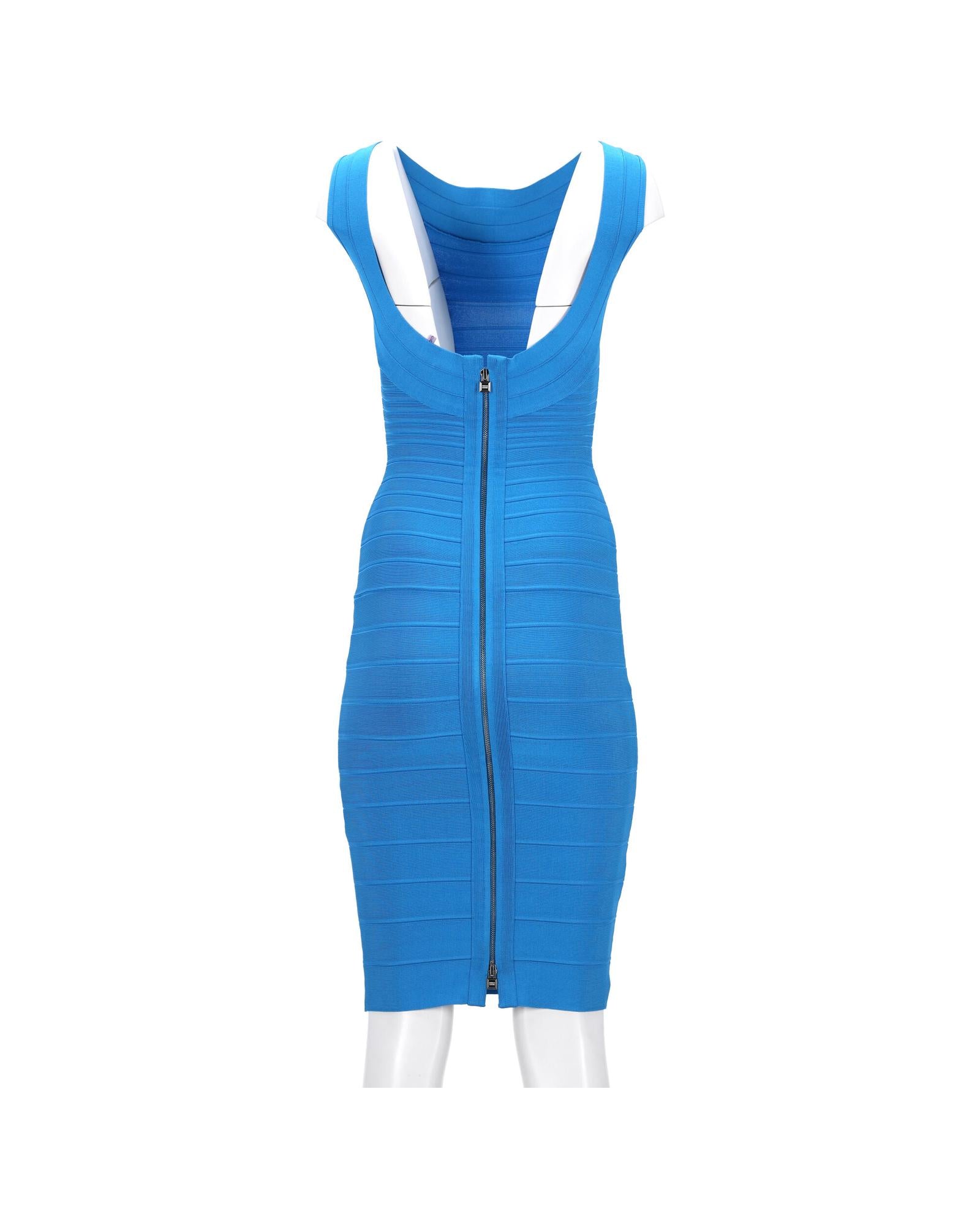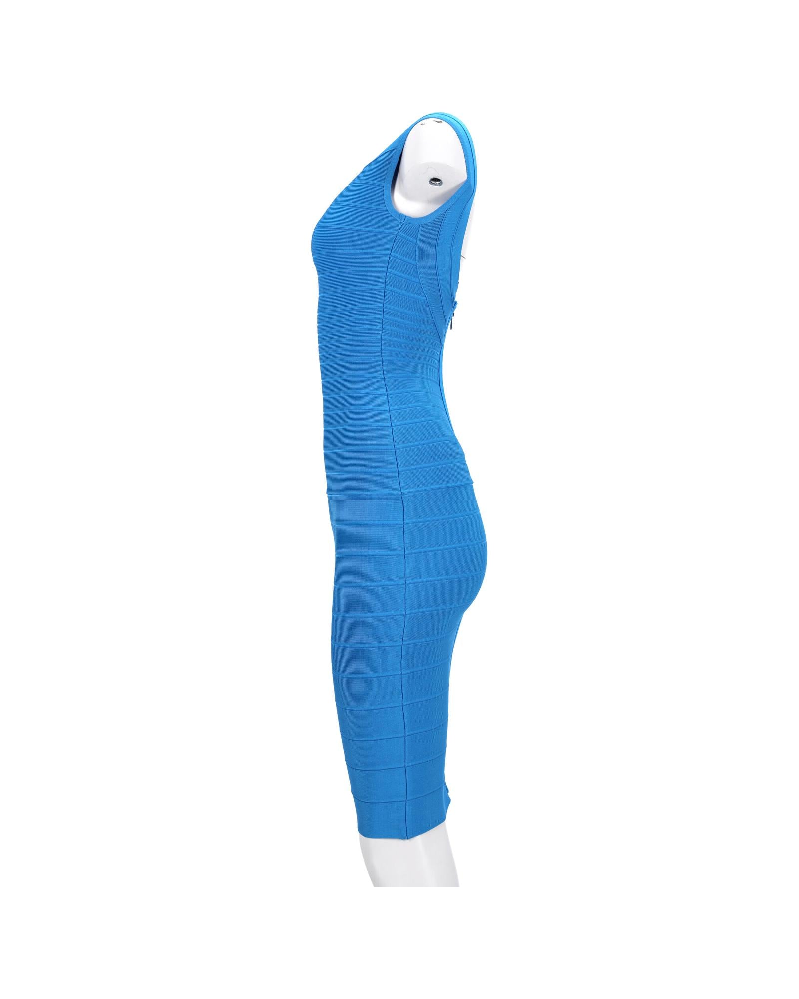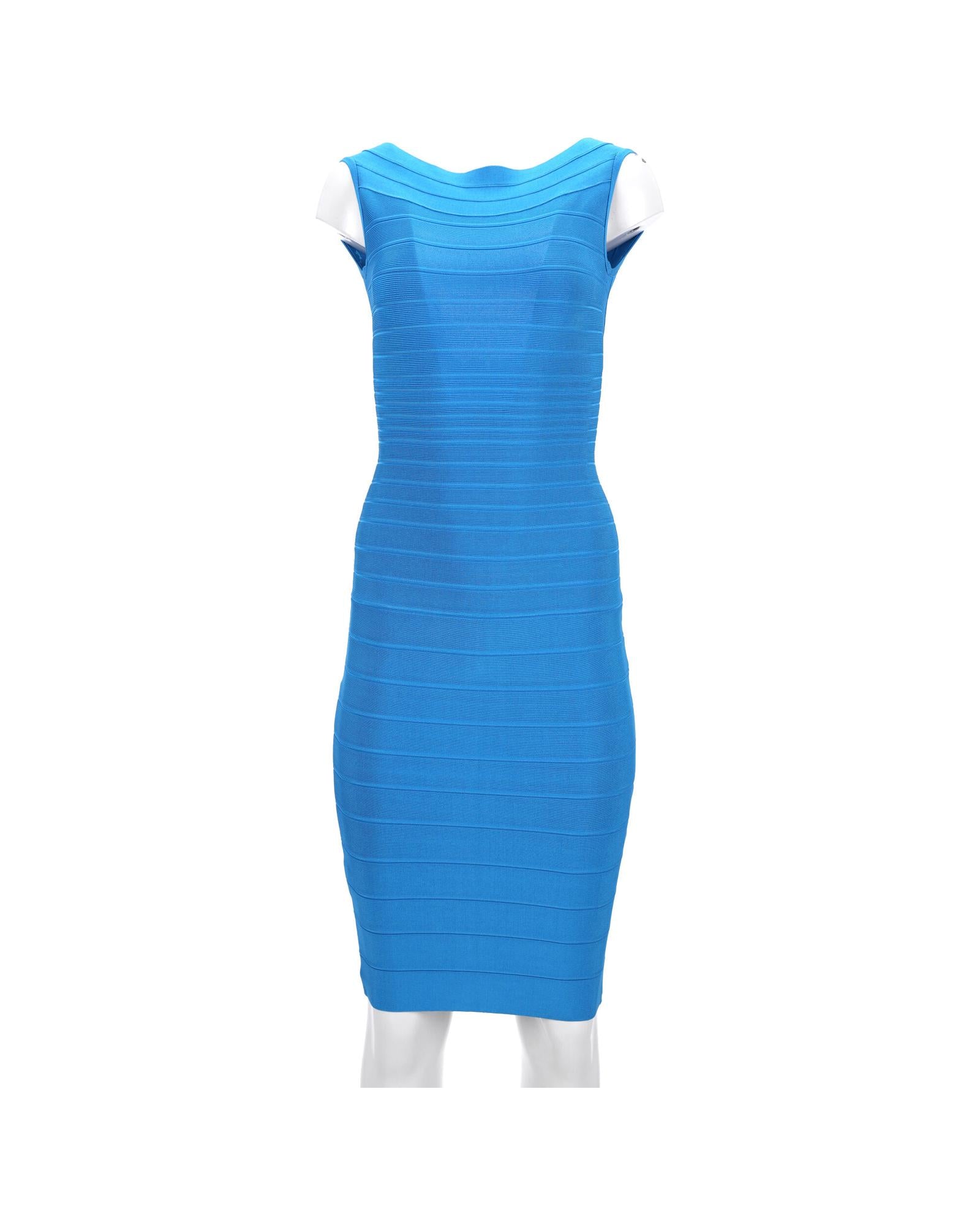 • Herve Leger Bandage Wide Neckline Midi Dress in Blue Rayon