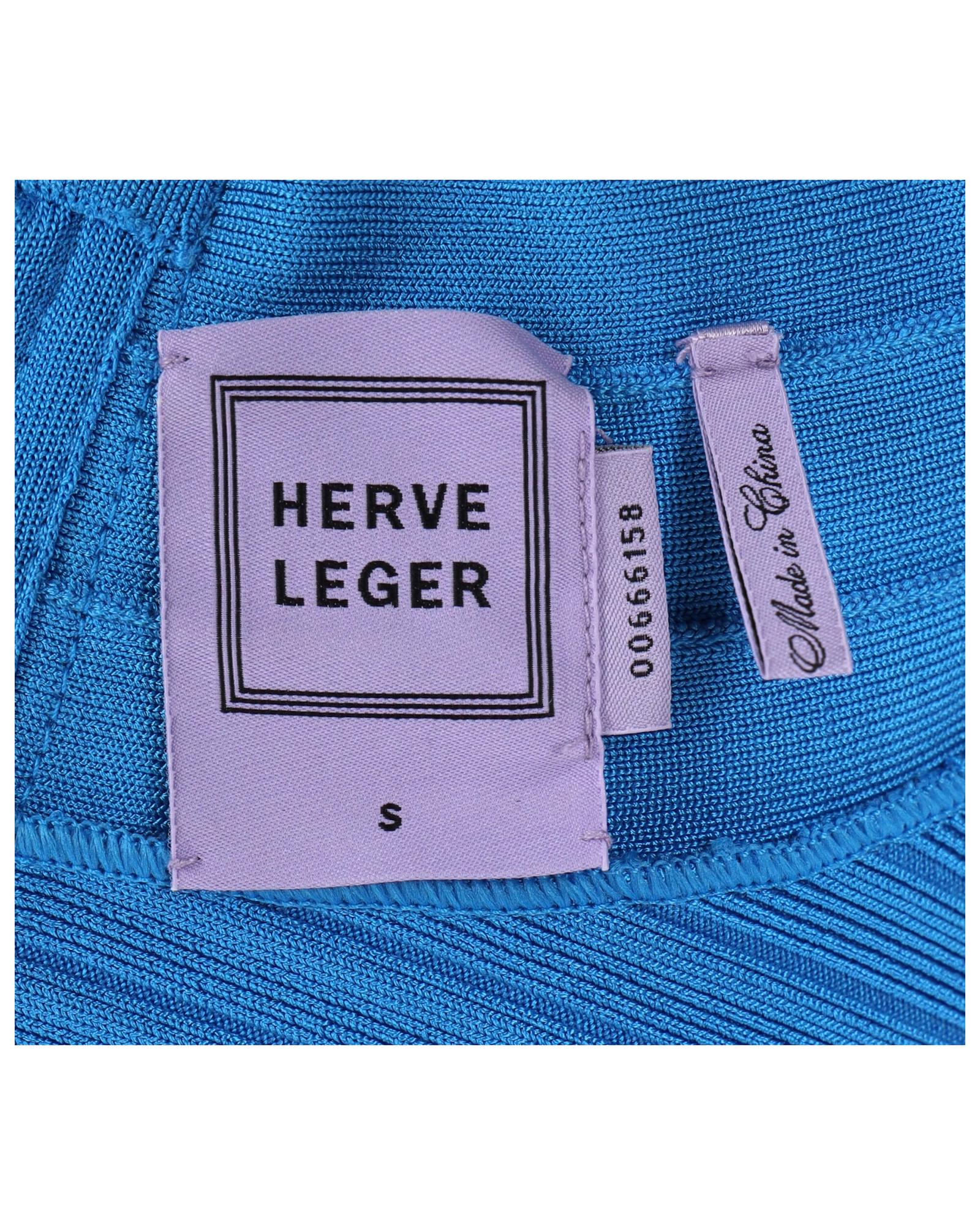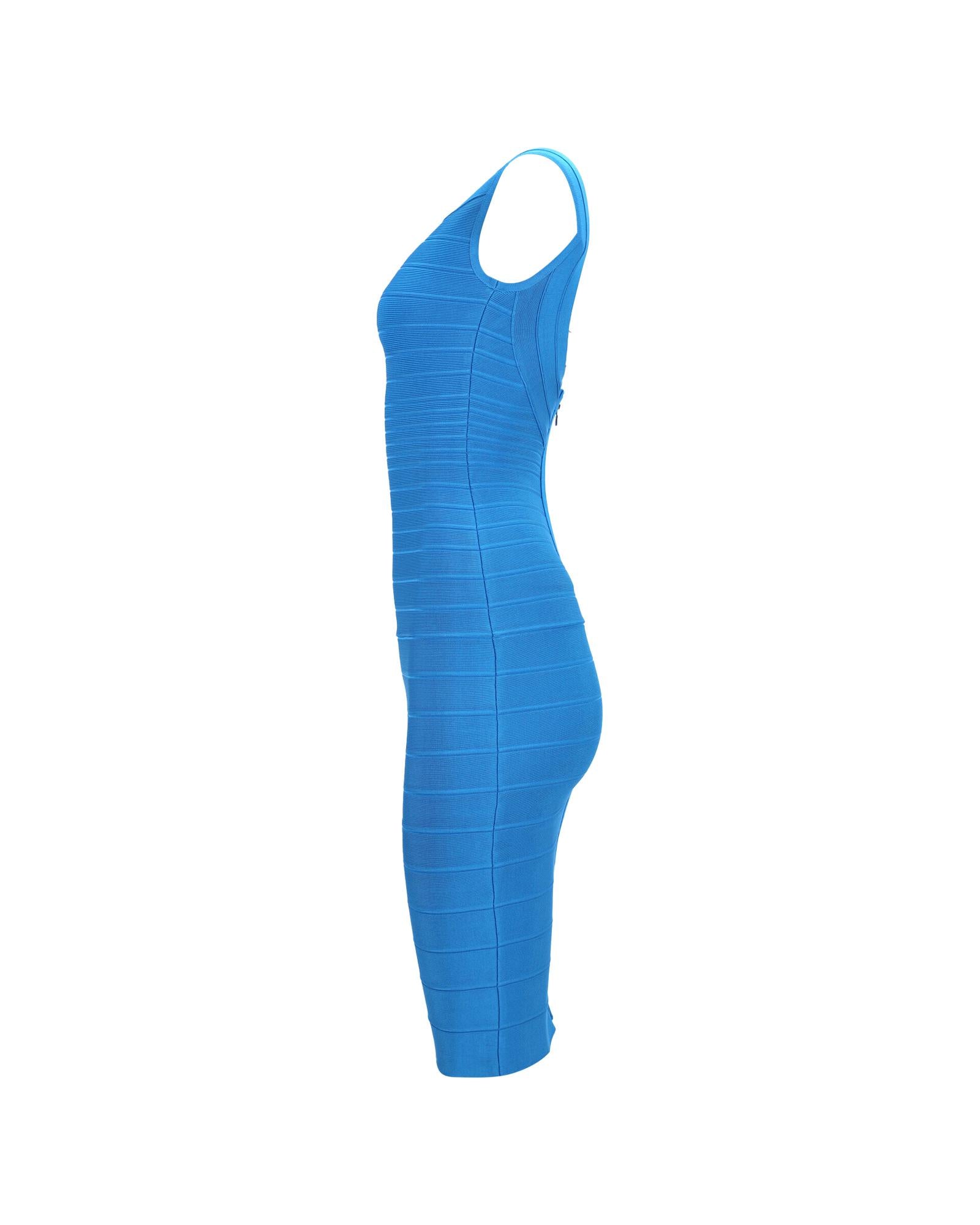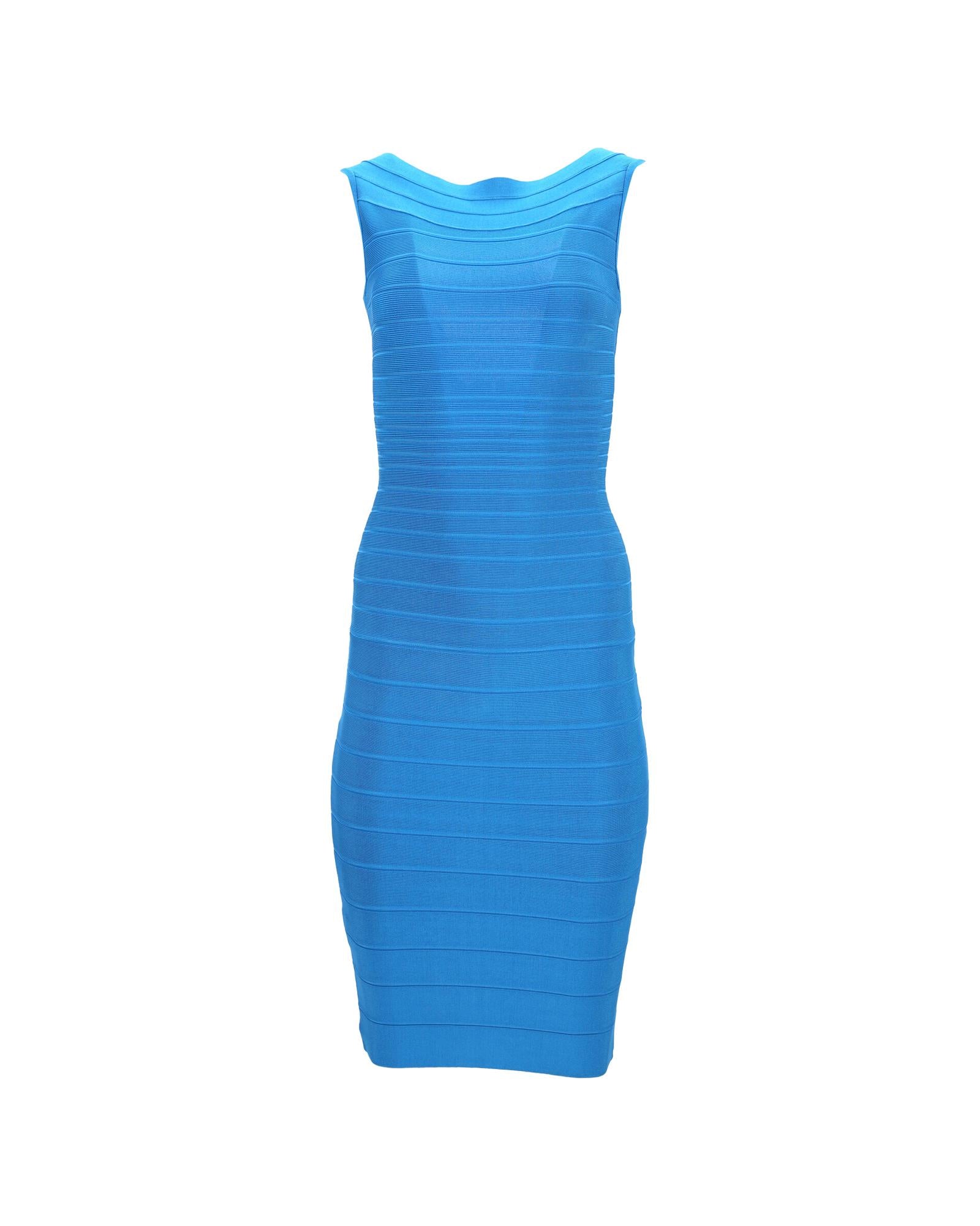 • Herve Leger Bandage Wide Neckline Midi Dress in Blue Rayon