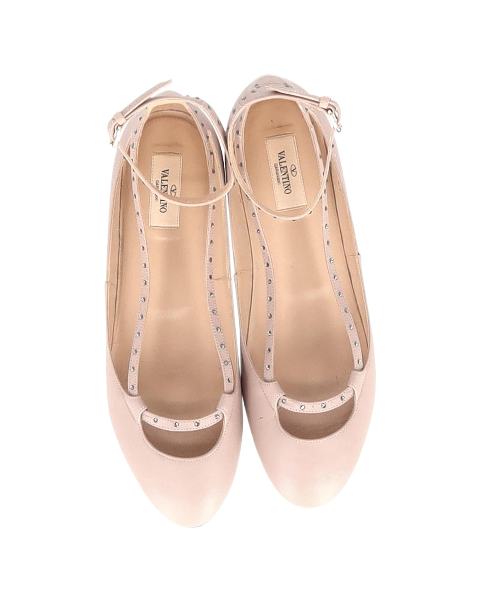 - Valentino Stardust Babe Ballerina Flats in Beige Leather