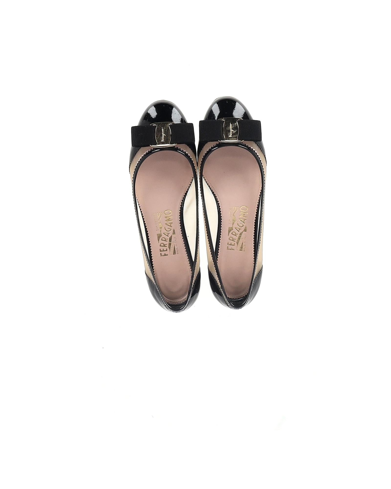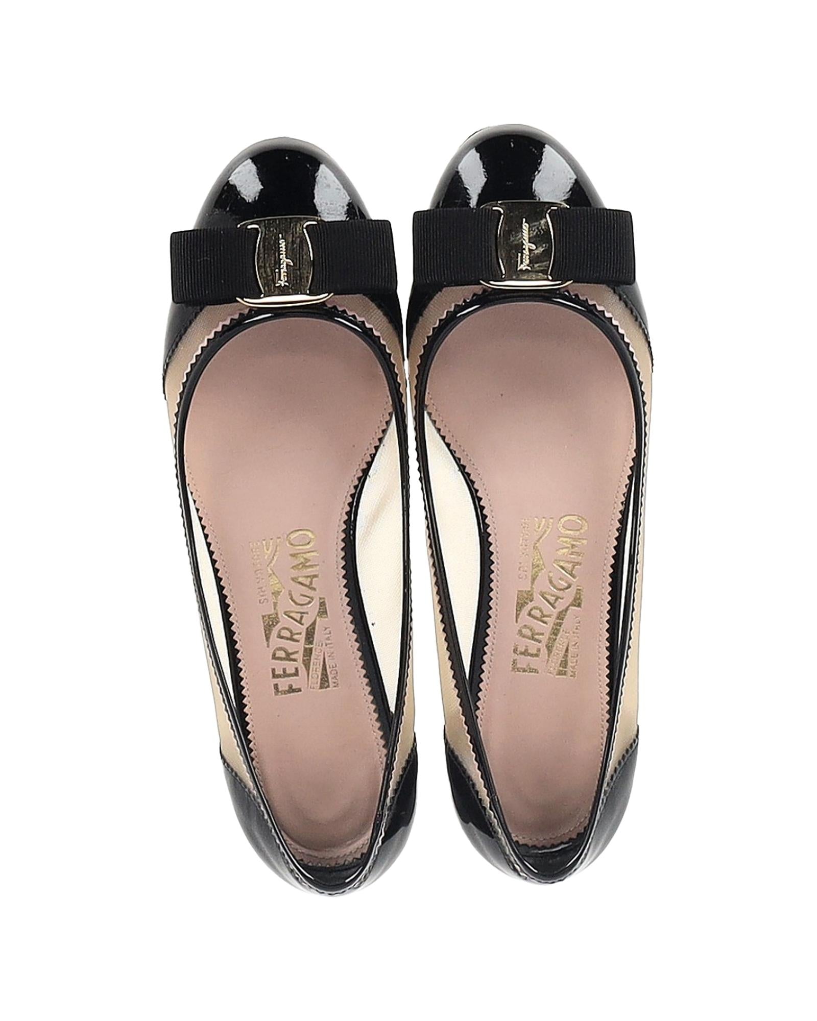 - Salvatore Ferragamo Bow Detail Ballet Flats in Black Leather and Mesh