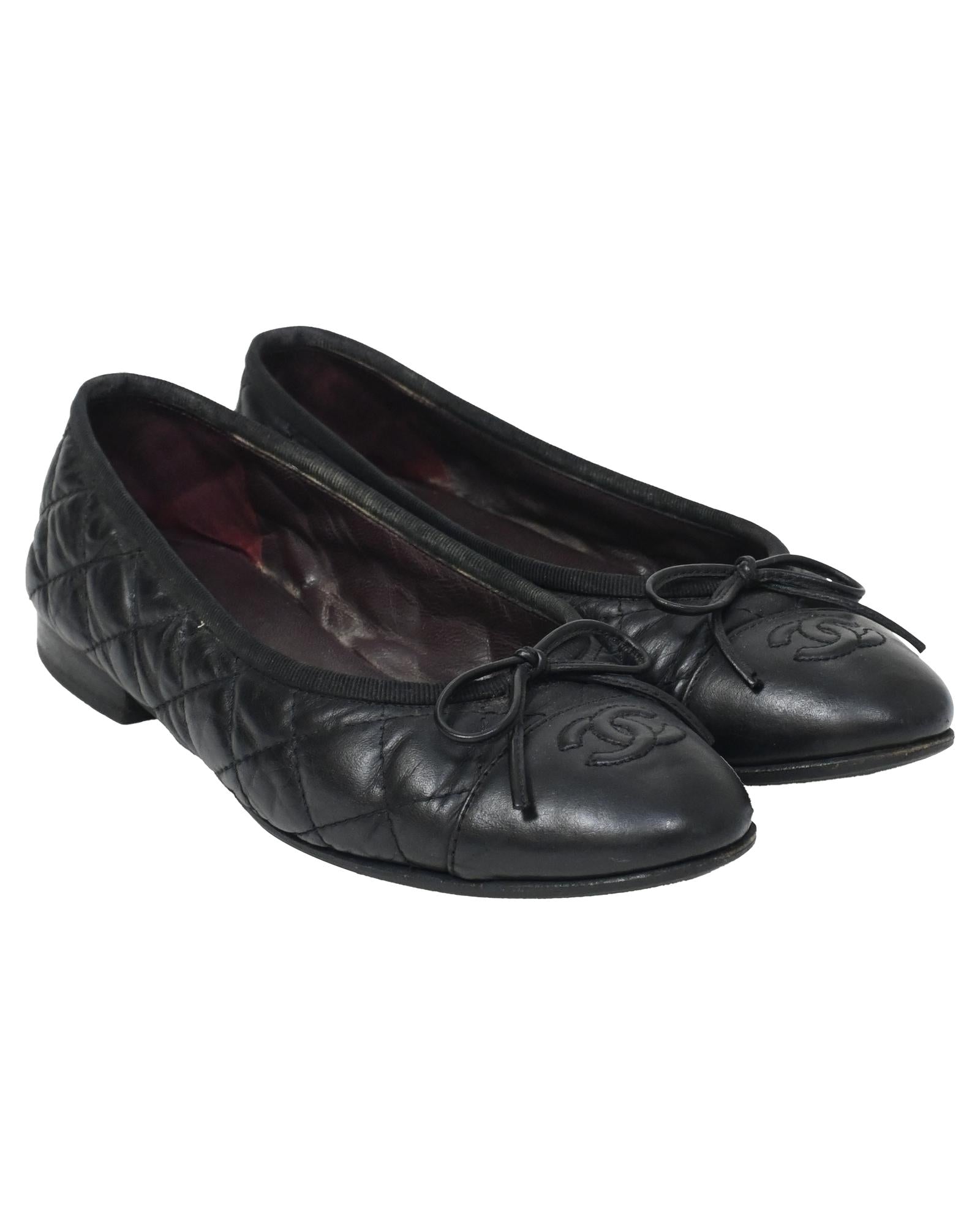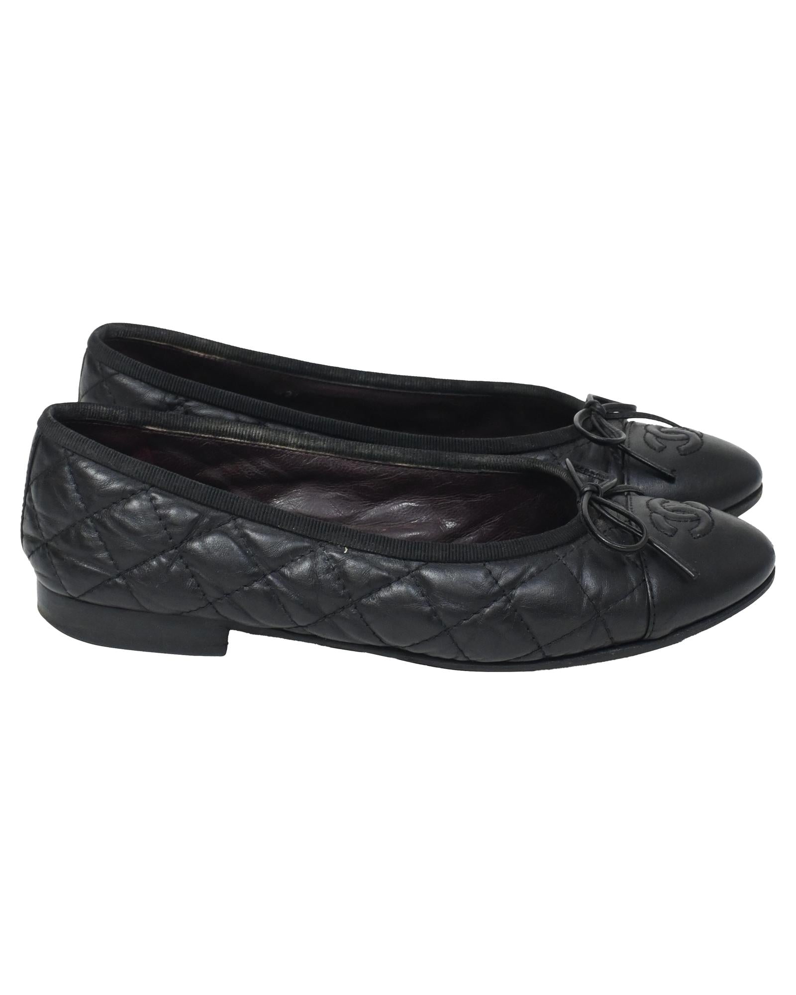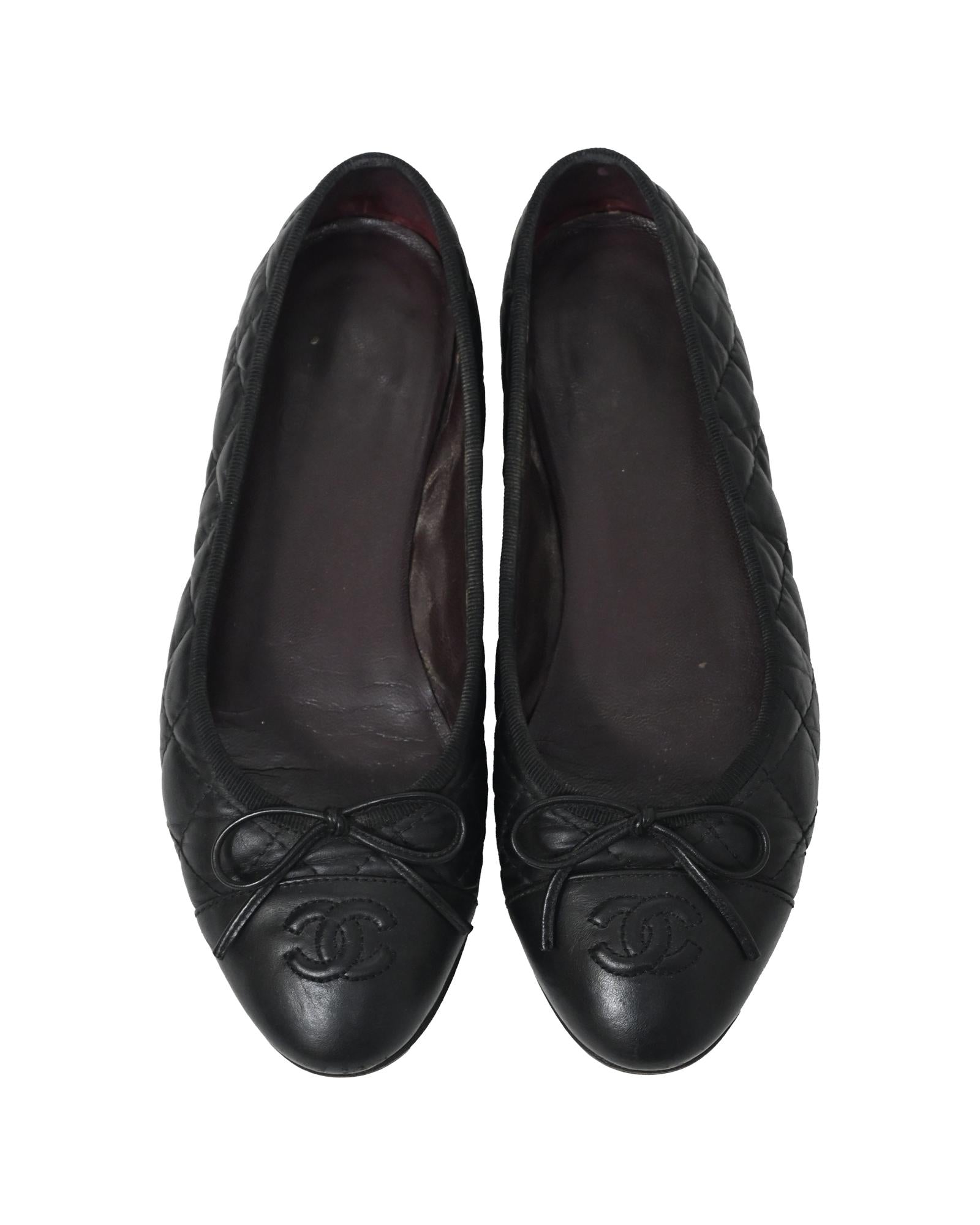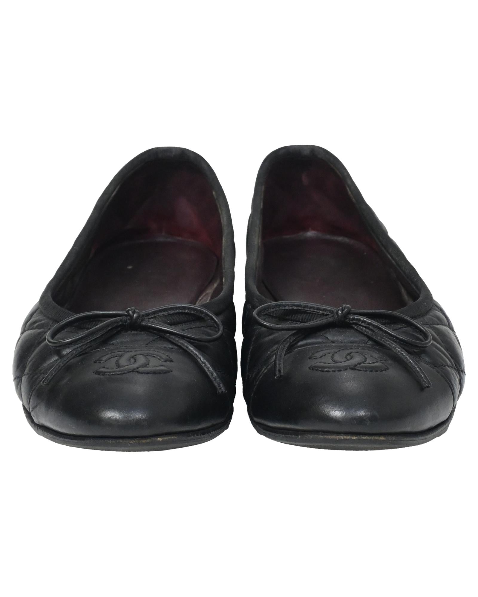 - Chanel CC Cap Toe Quilted Ballet Flats in Black Leather