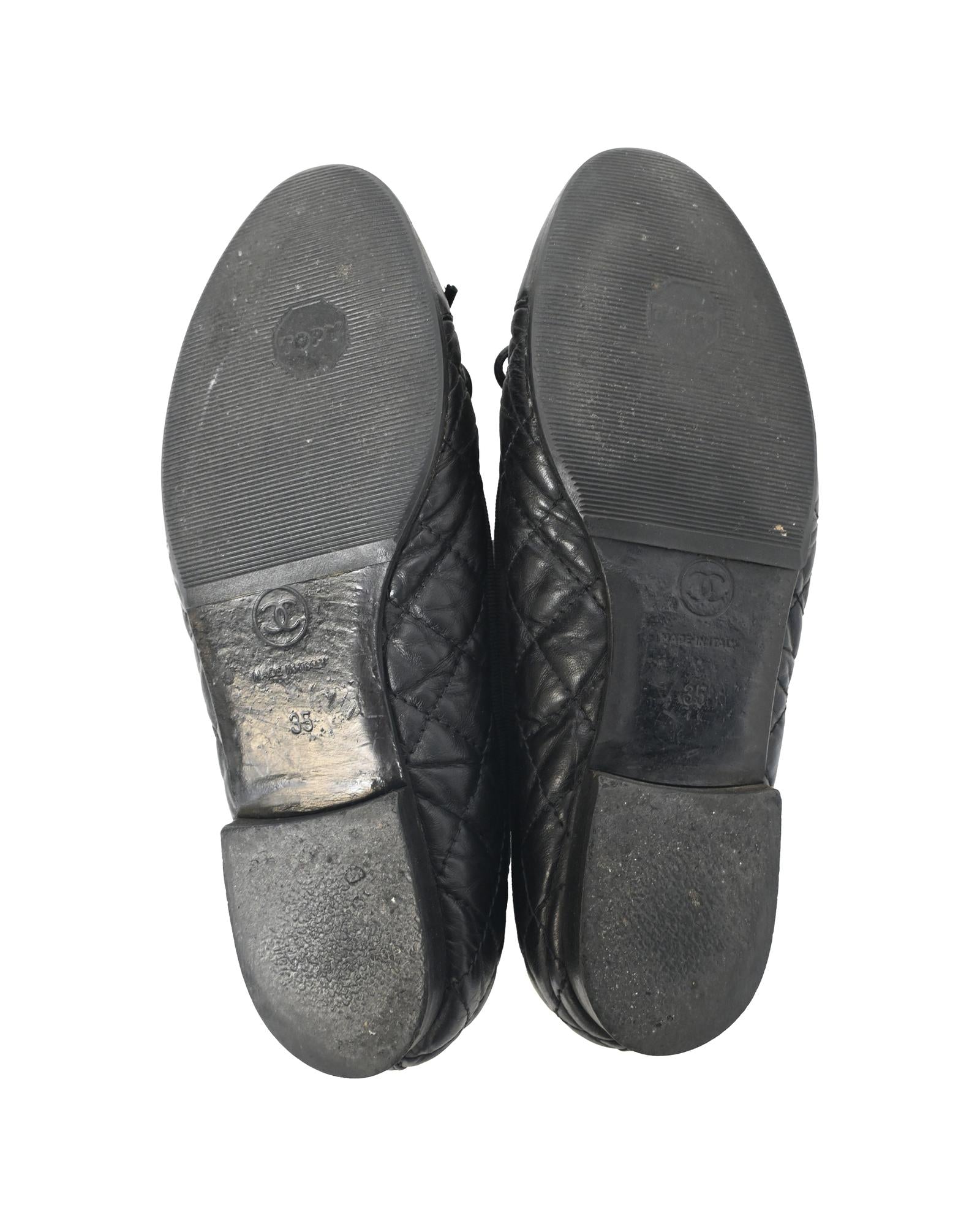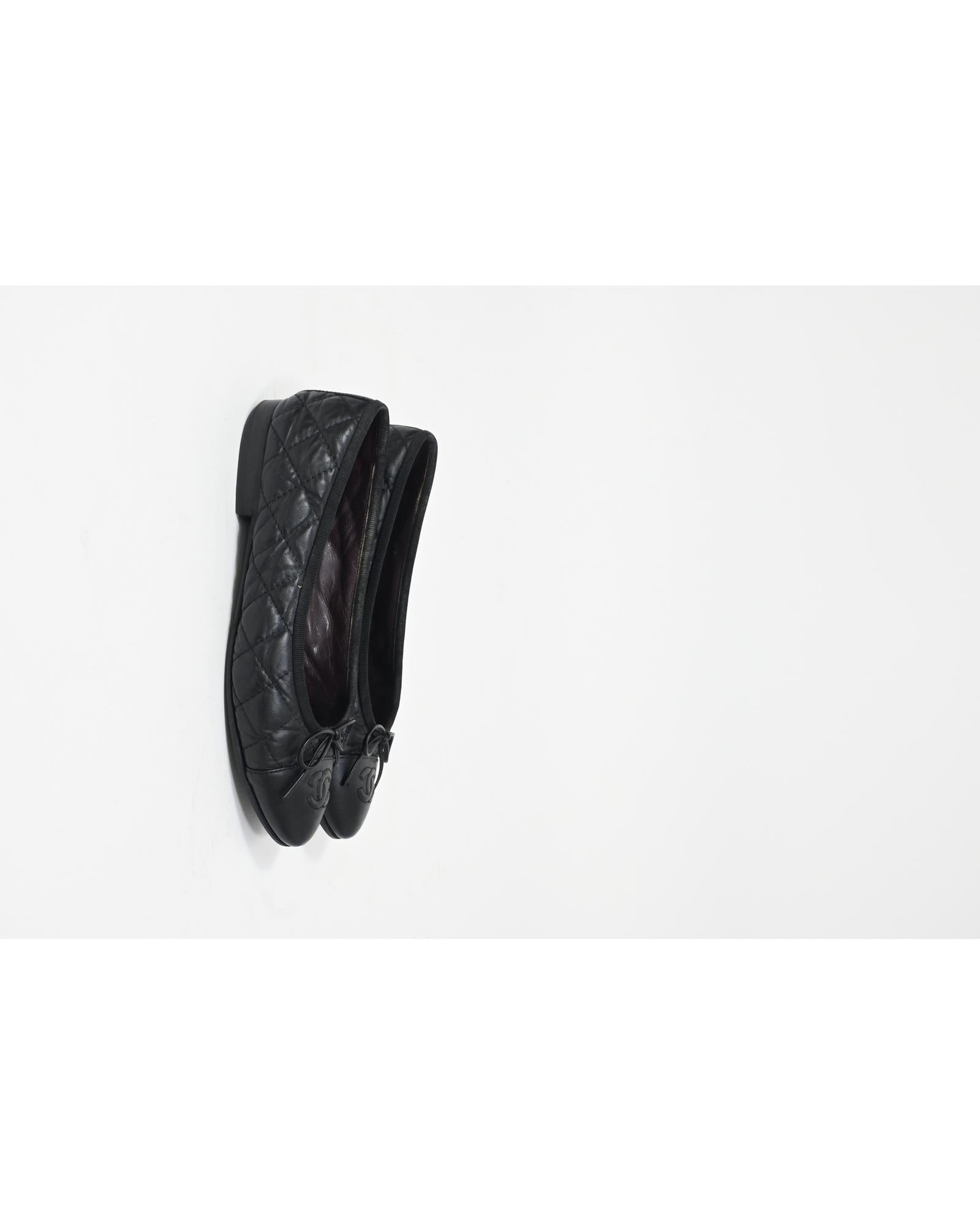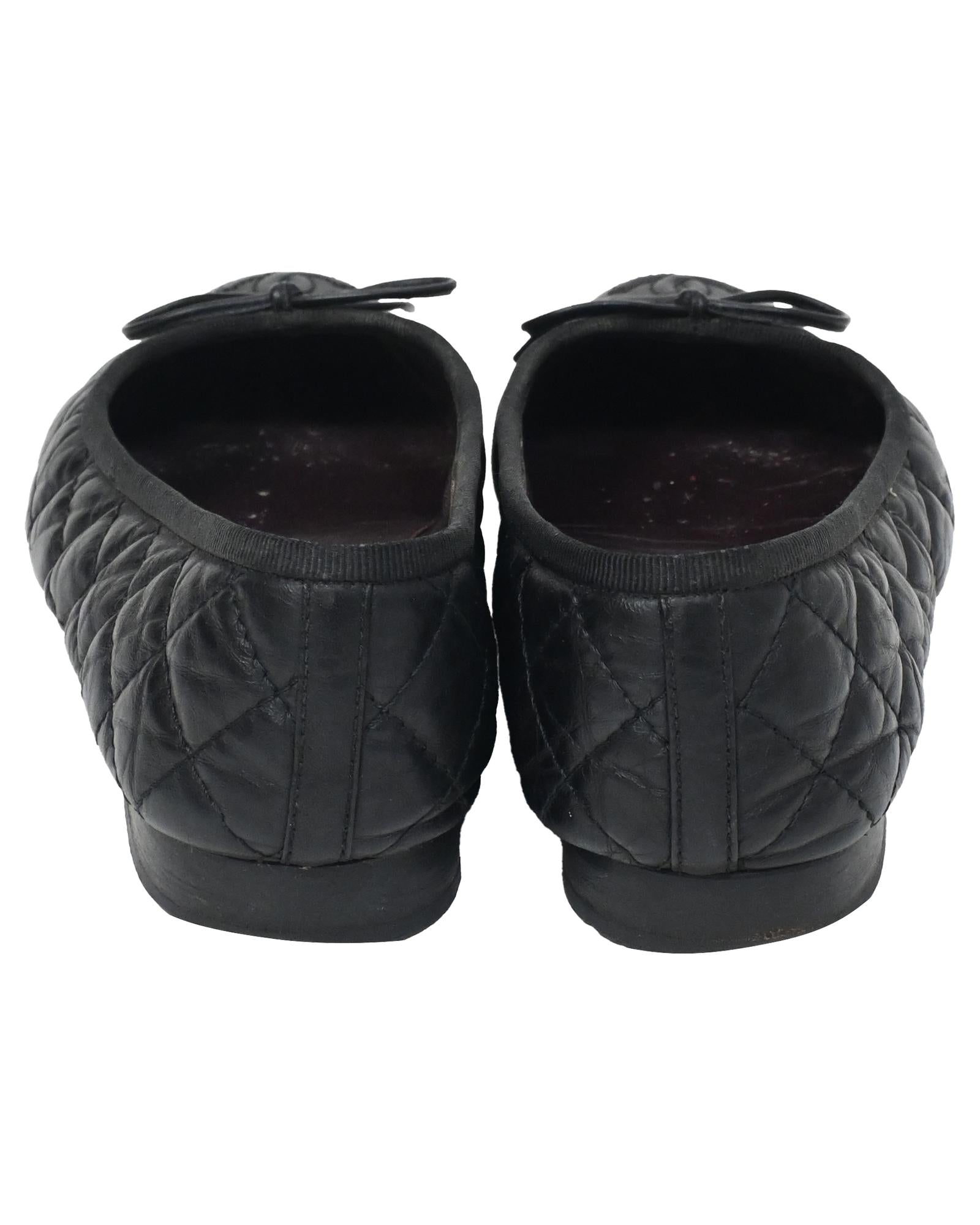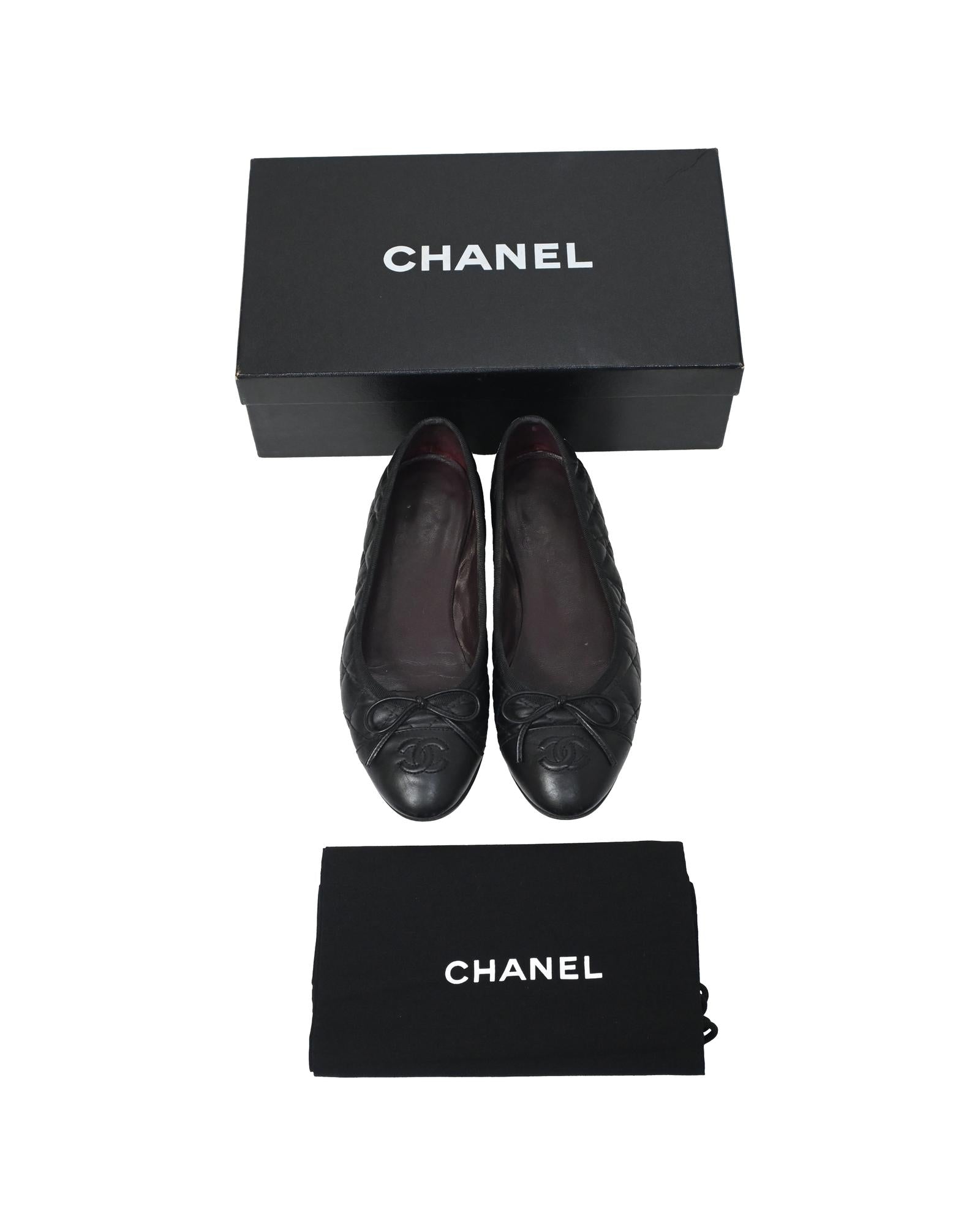 - Chanel CC Cap Toe Quilted Ballet Flats in Black Leather