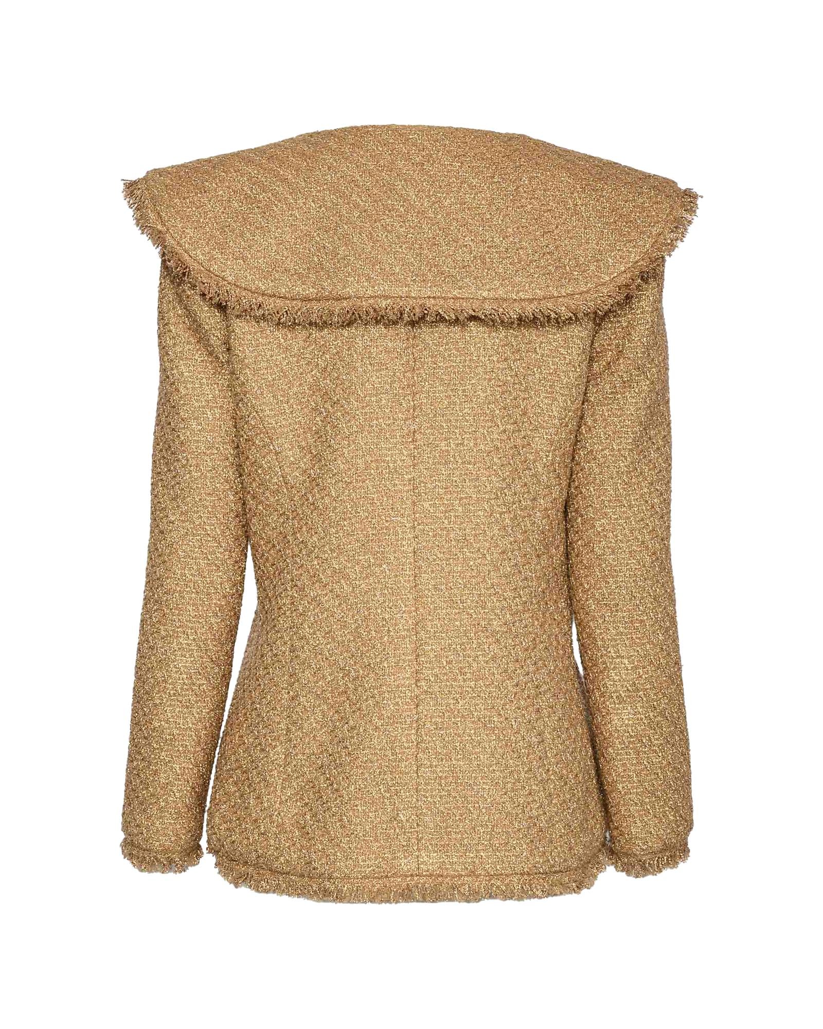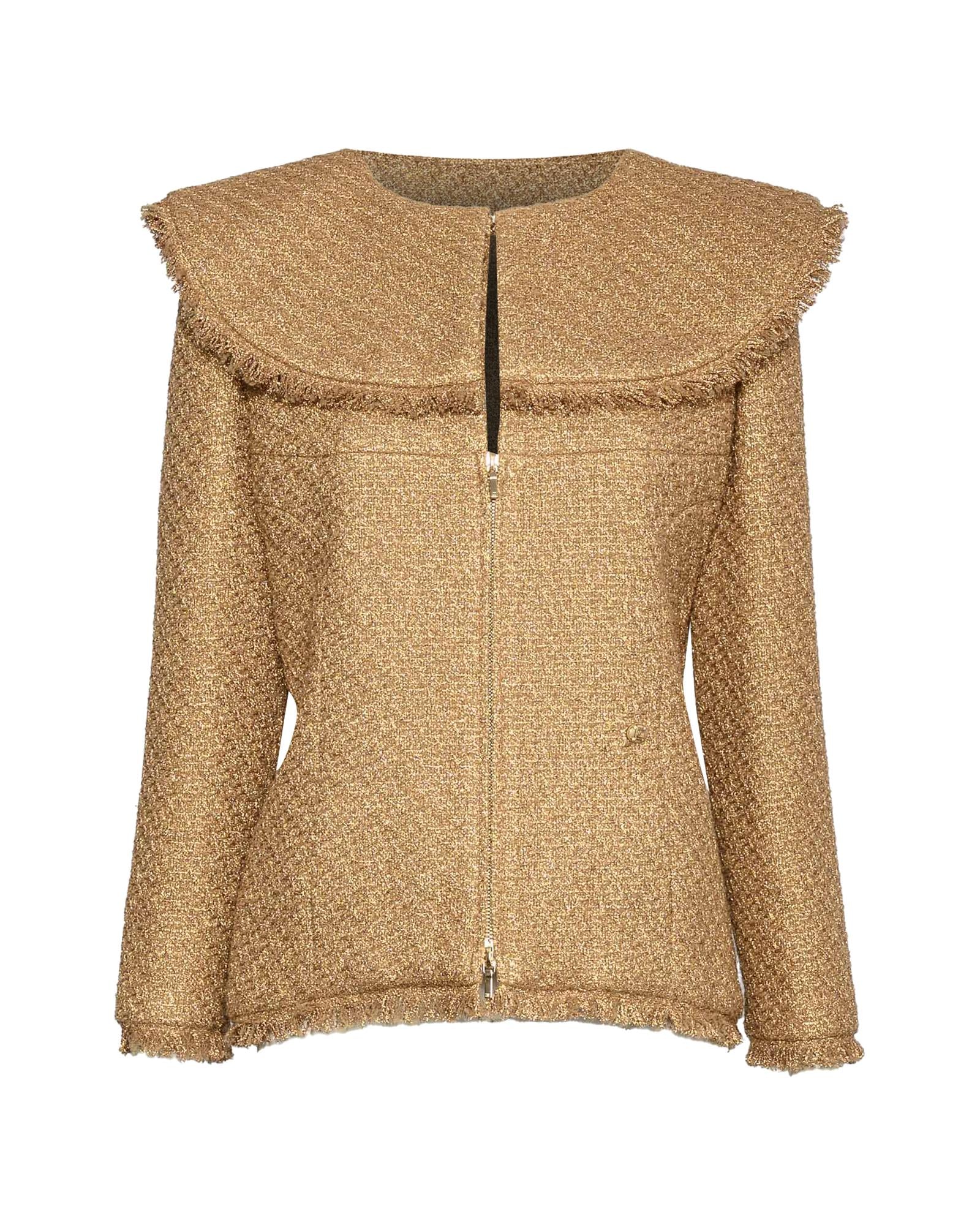 Women's Tweed Jacket with Full Zipper Closure and Fringed Trim