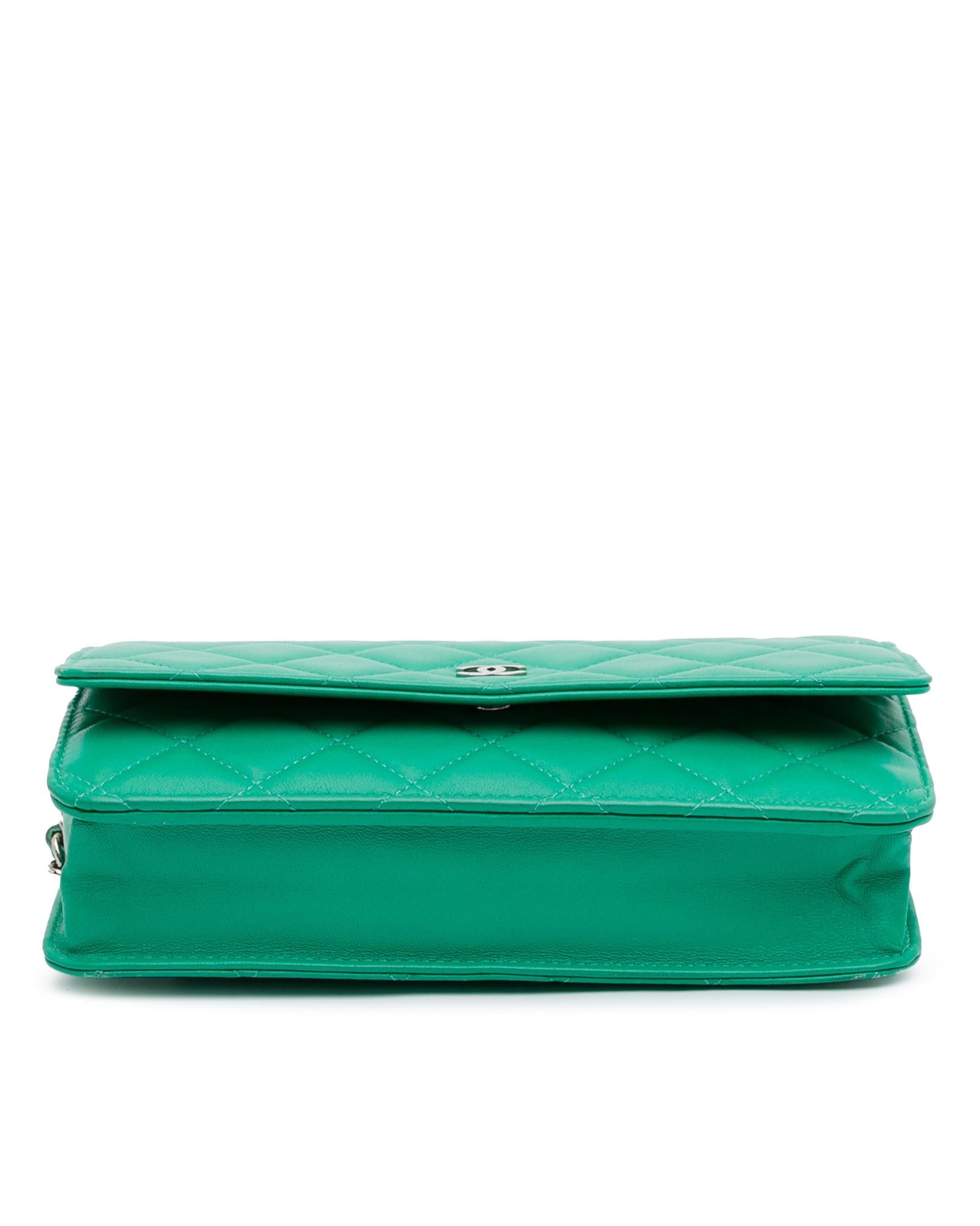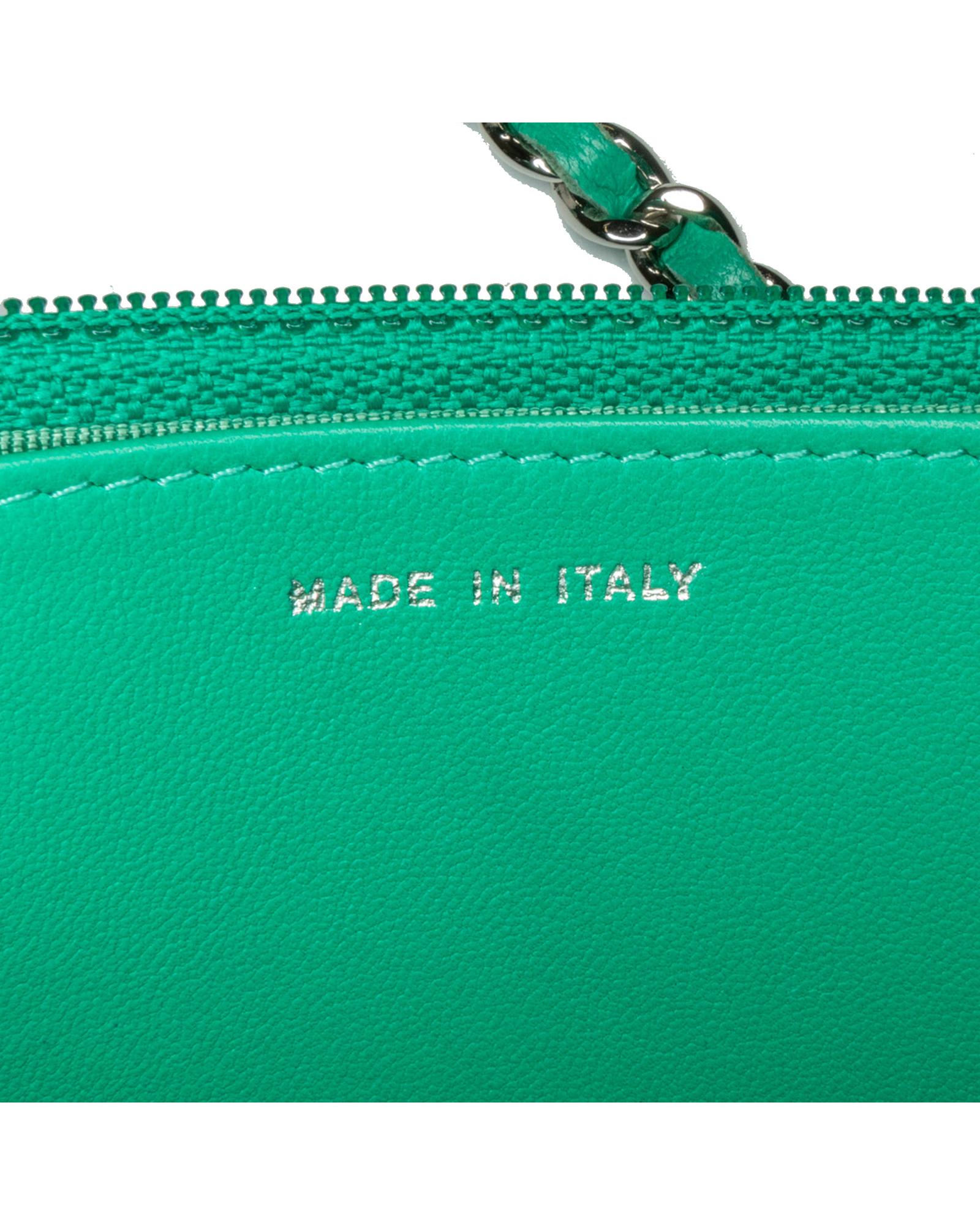 Chanel Classic Double Flap Mini Crossbody Bag Green Lambskin Leather