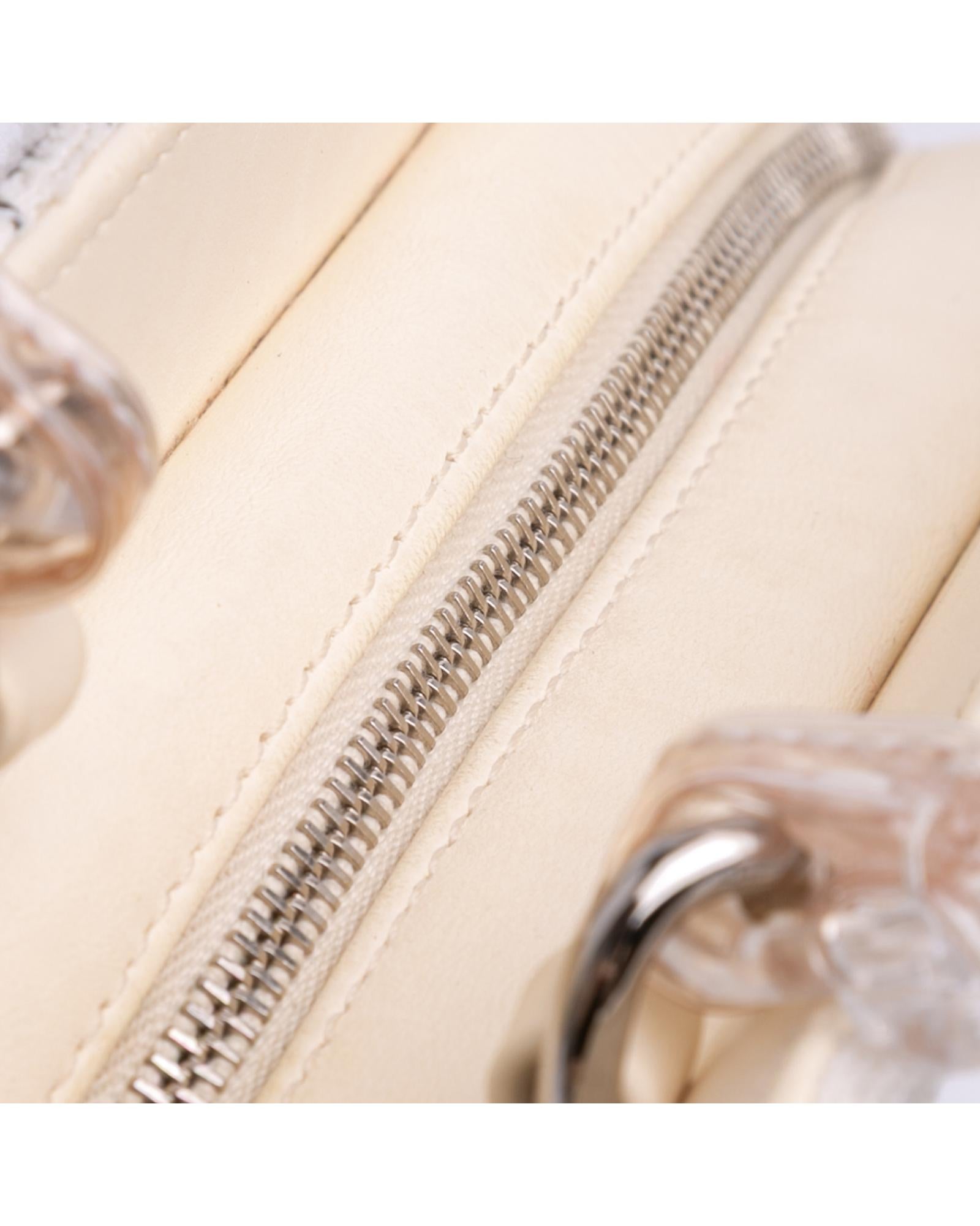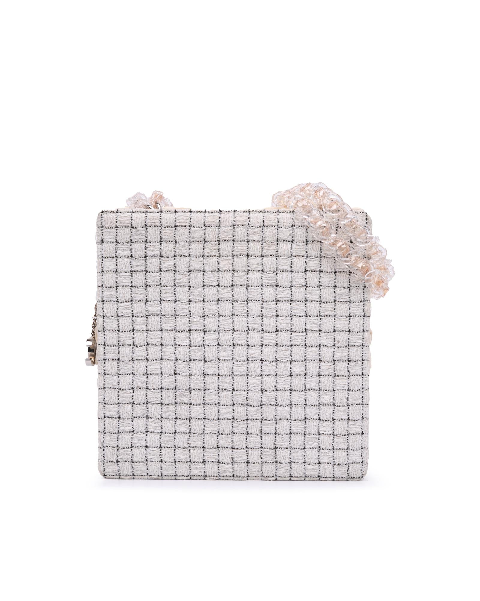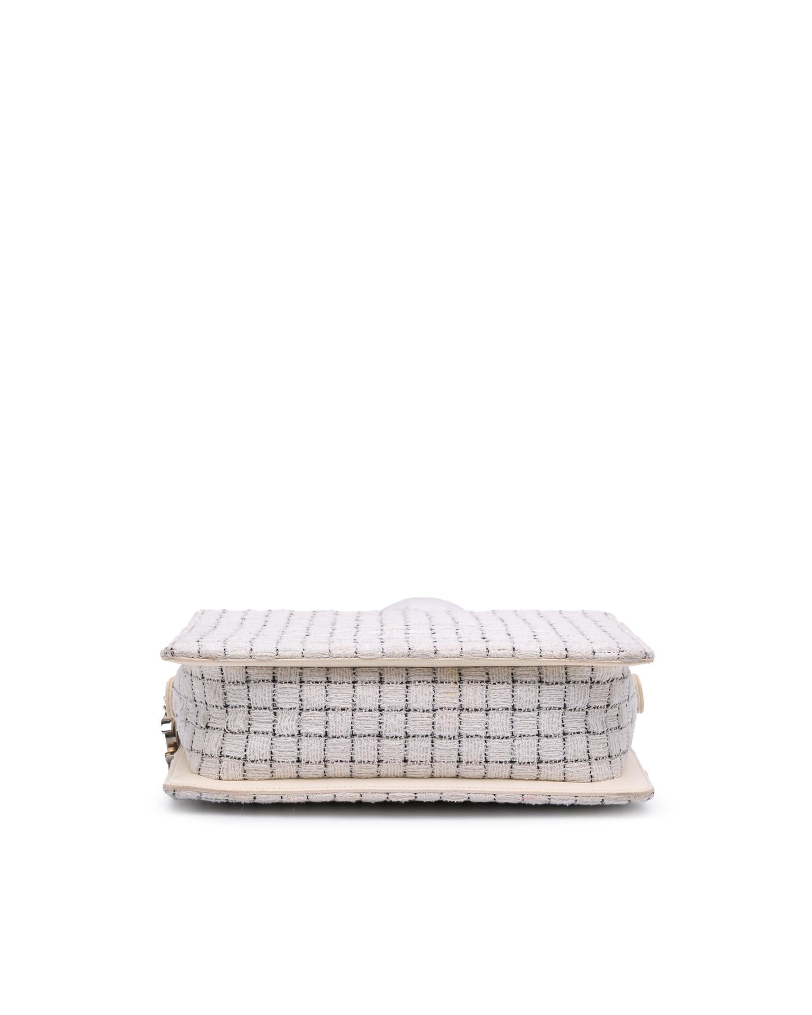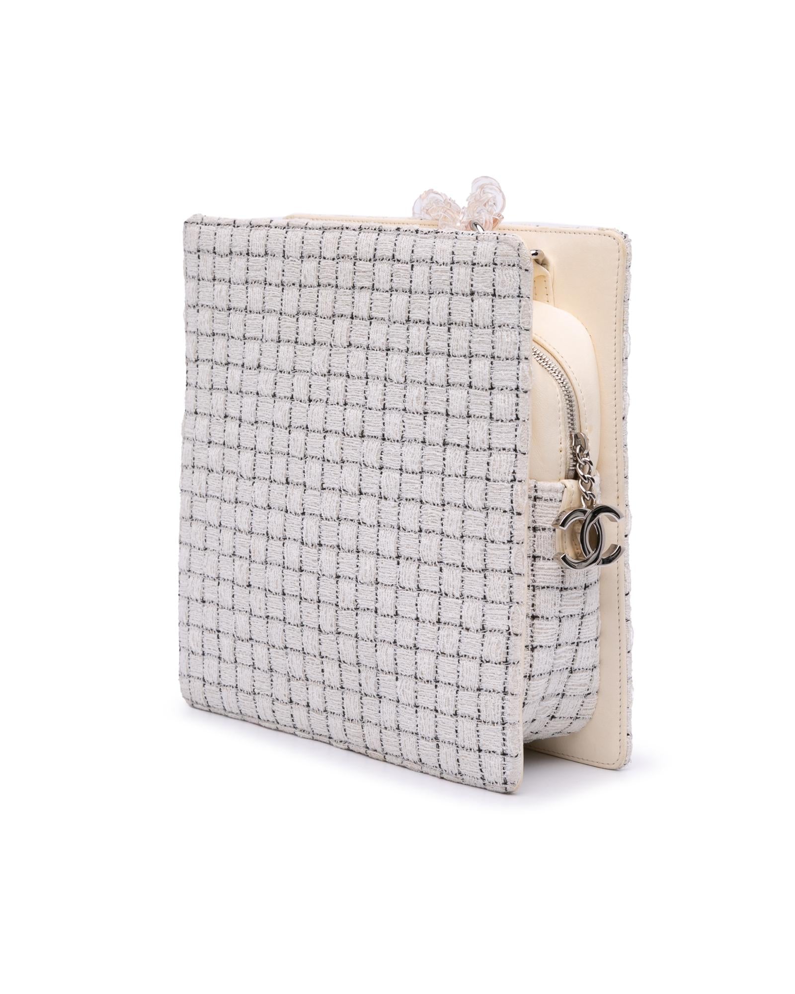 This shoulder bag features a tweed body with leather trim resin chain straps a top zip closure and an interior zip pocket.Brand: Chanel