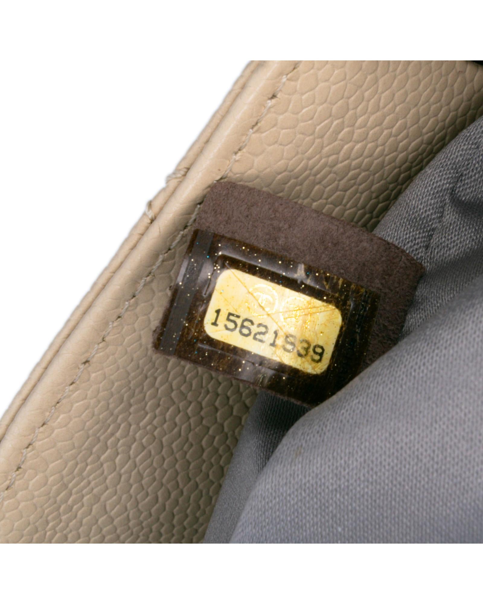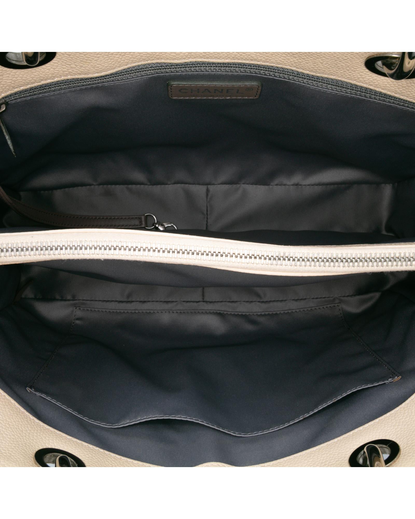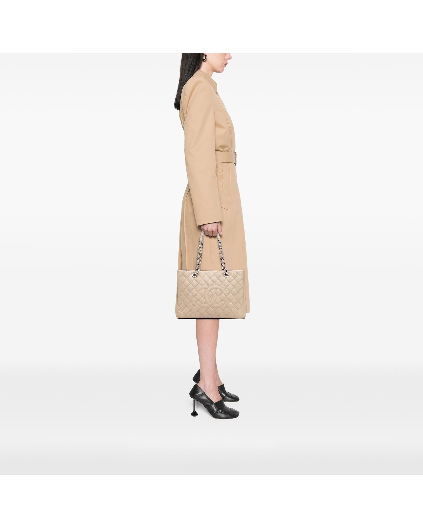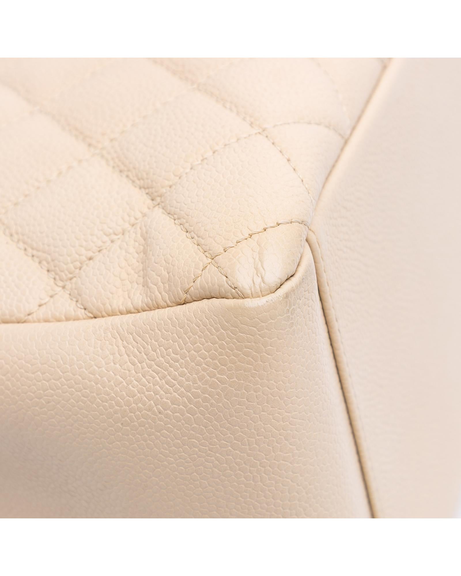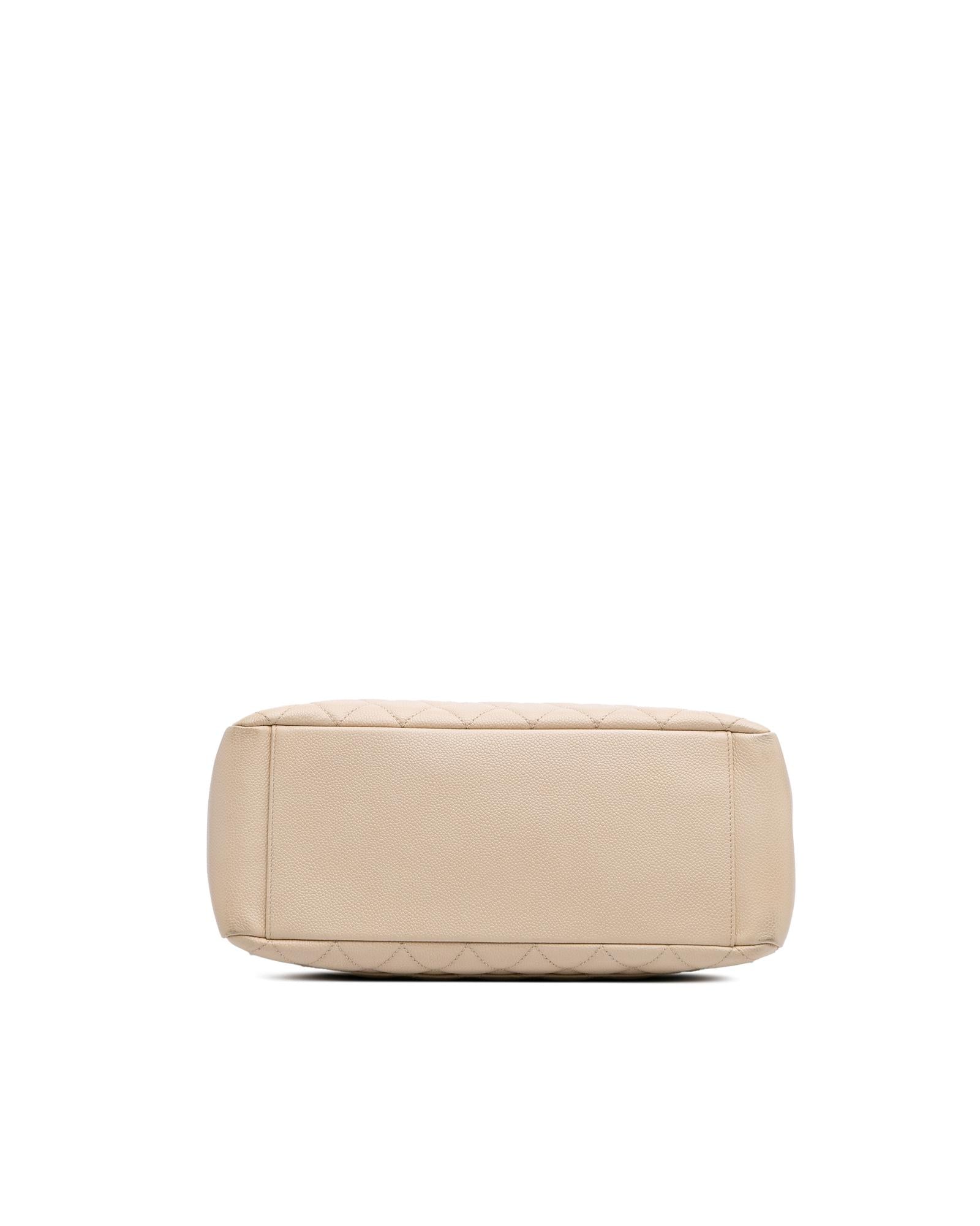 The Grand Shopping Tote features a quilted caviar leather body leather woven chain shoulder straps an open top an exterior slip pocket and interior zip and slip pockets.Brand: Chanel