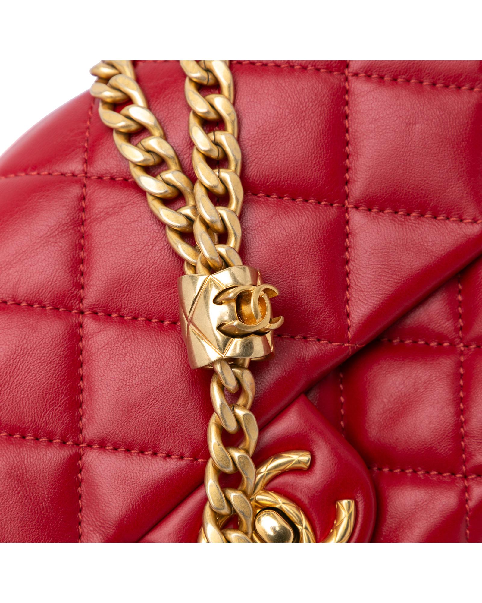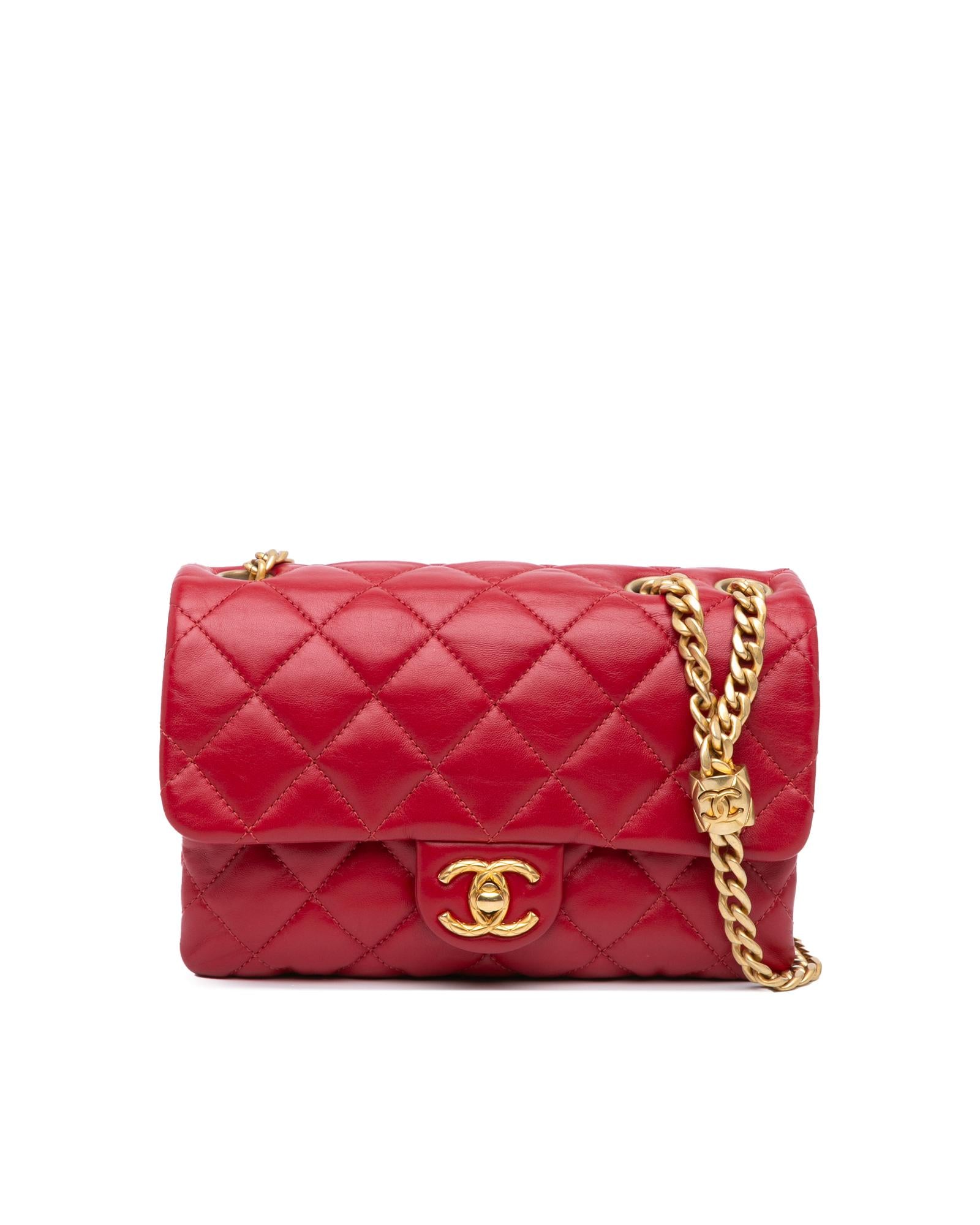 This shoulder bag features a quilted lambskin leather body a chain link shoulder strap a front flap with a CC turn-lock closure and interior zip and slip pockets.Brand: Chanel