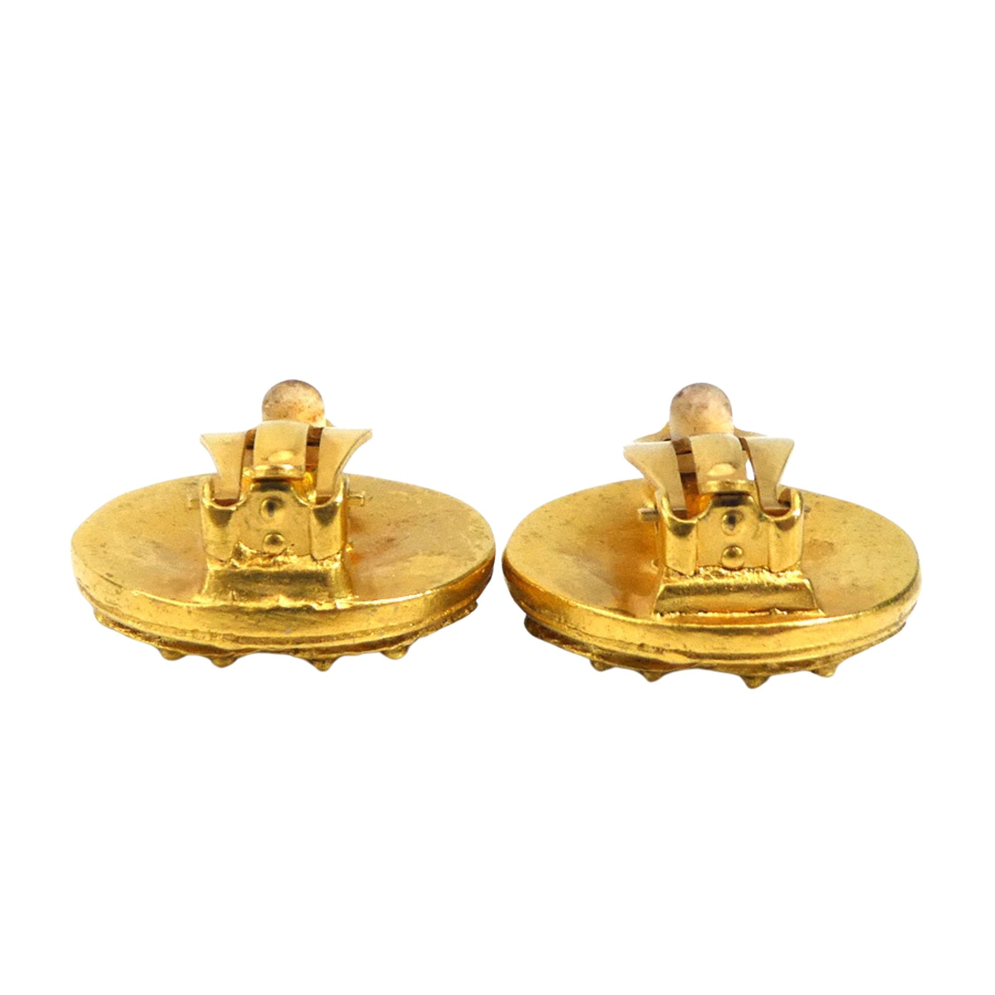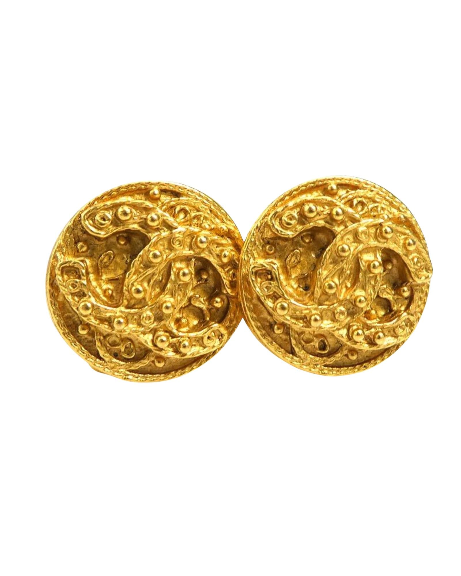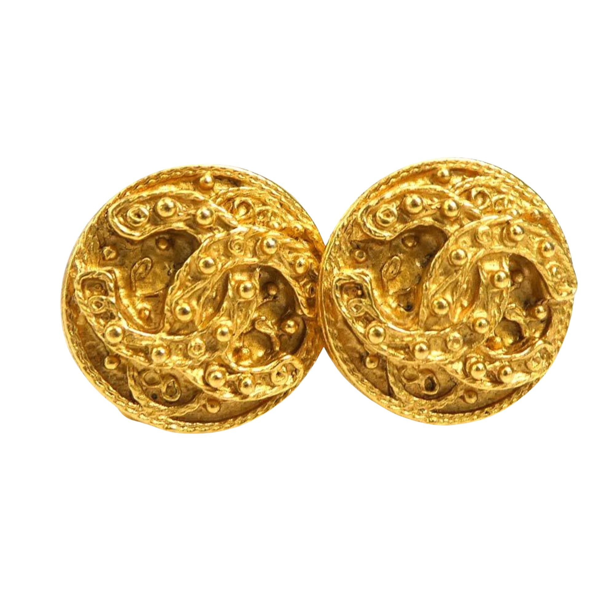 Chanel's gold CC clip-on earrings represent an iconic piece from the French luxury brand. These earrings feature Chanel's famous double C logo symbolizing the refinement and iconic style of the fashion house.