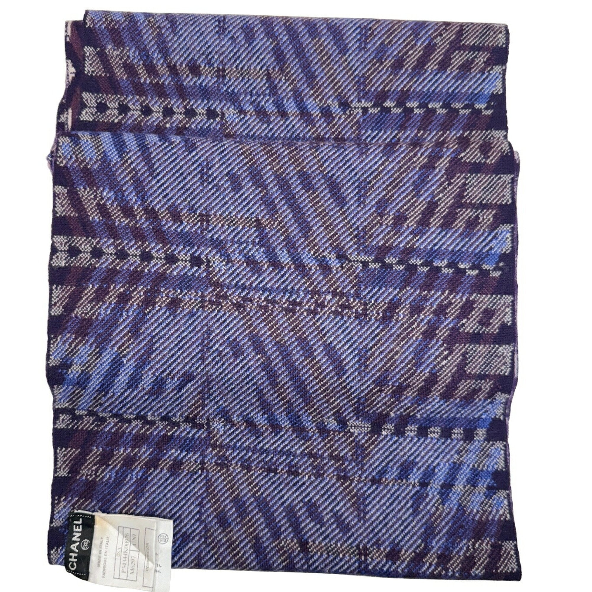 Introducing the Chanel Shawl a stylish accessory suitable for both men and women. Crafted by the renowned brand Chanel this shawl features a captivating design in shades of blue and purple. Made from luxurious cashmere material it adds a touch of elegance and warmth to your ensemble. Elevate your fashion statement with the timeless appeal of the Chanel shawl.