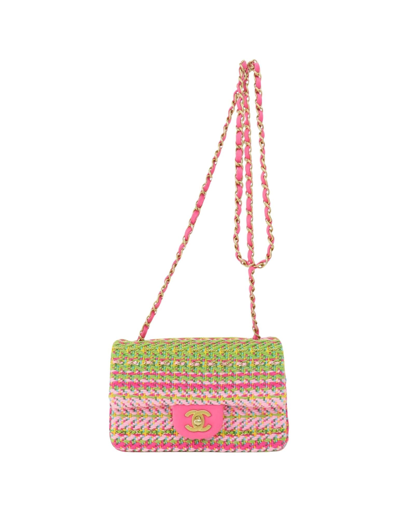 Luxurious Tweed Shoulder Bag for Women - Captivating Green Pink and Yellow Shades