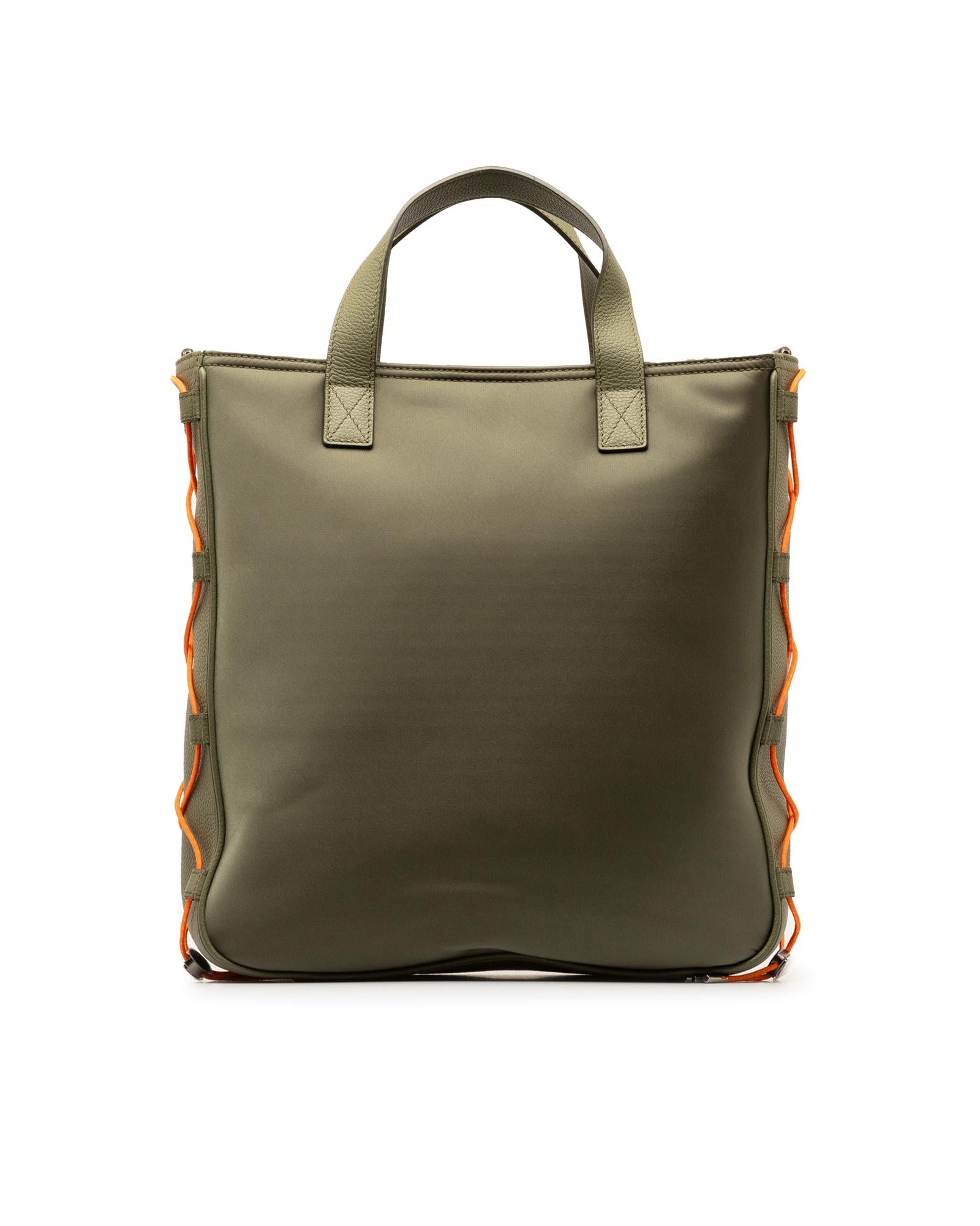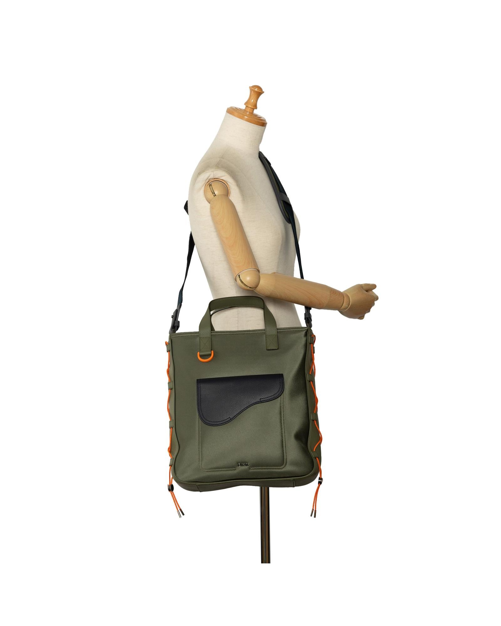 Nylon and Leather Saddle Tote Bag with Adjustable Straps