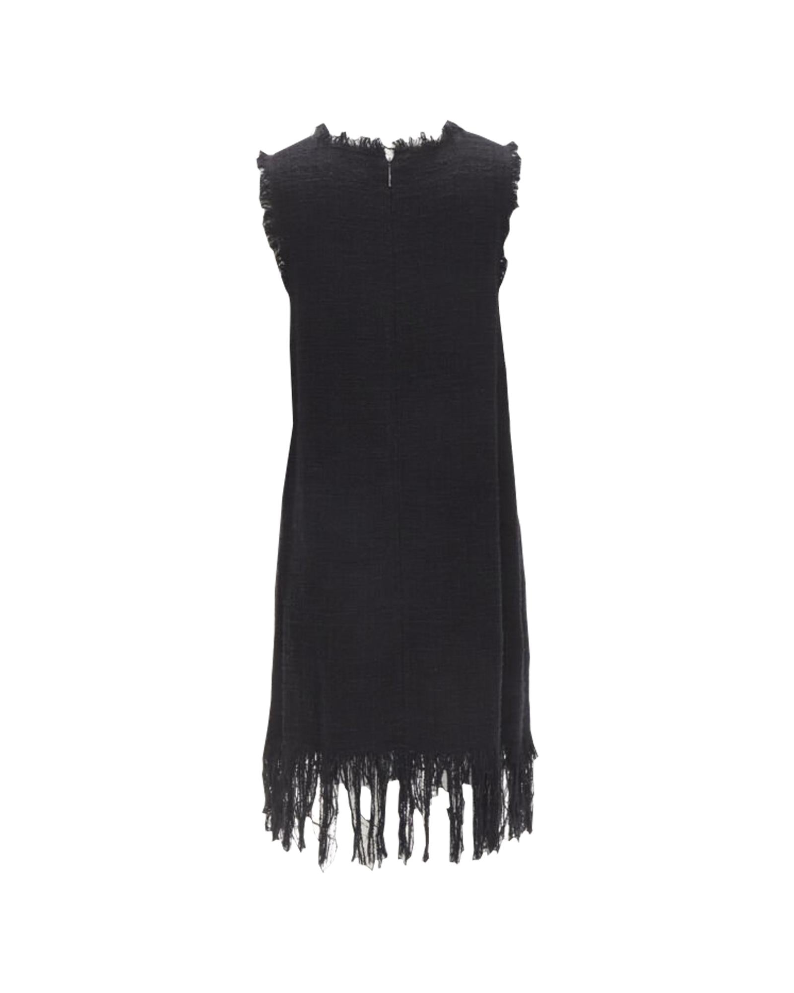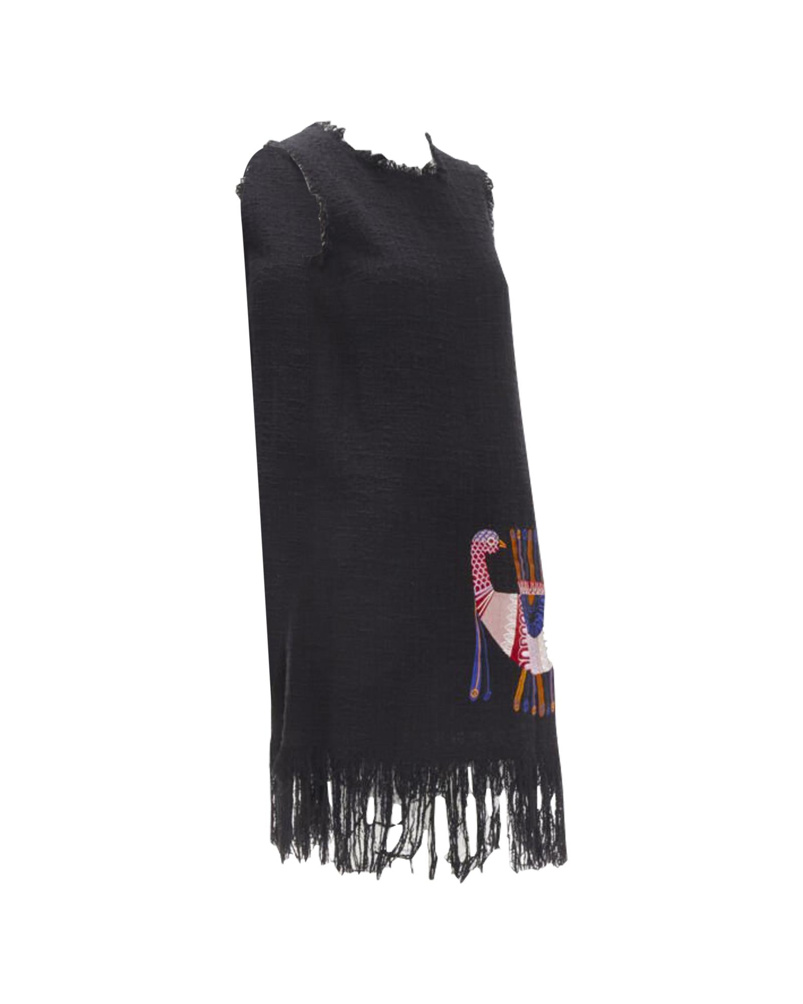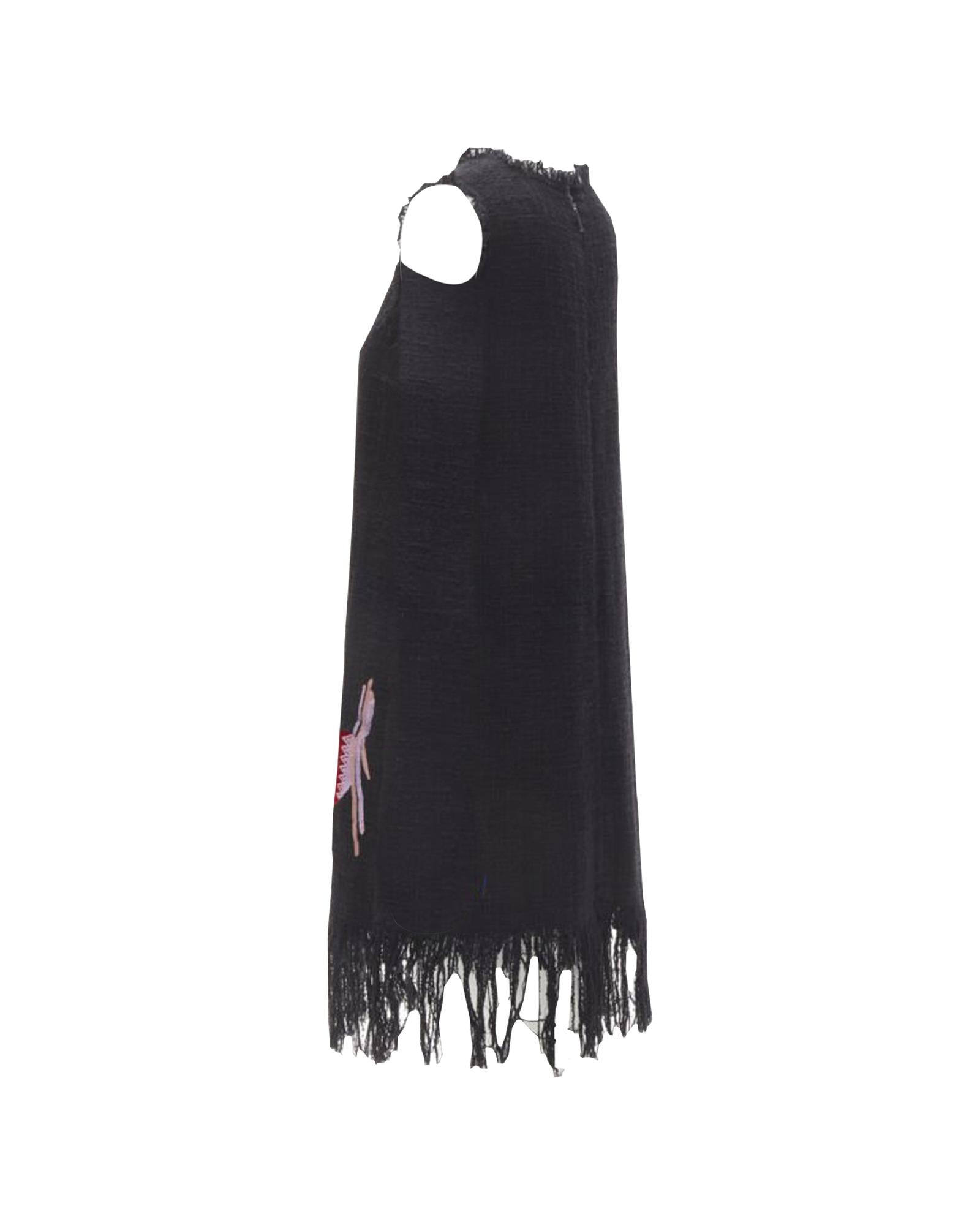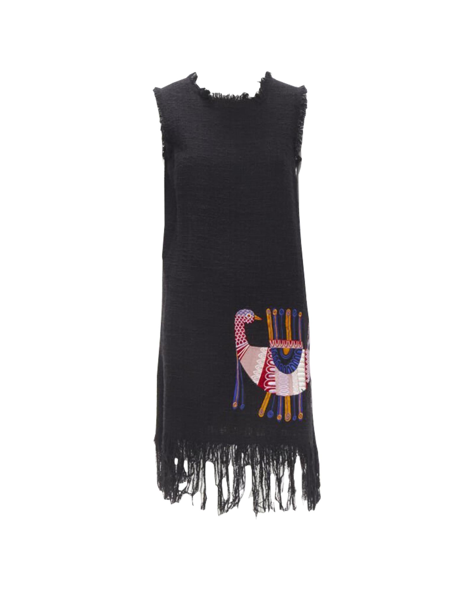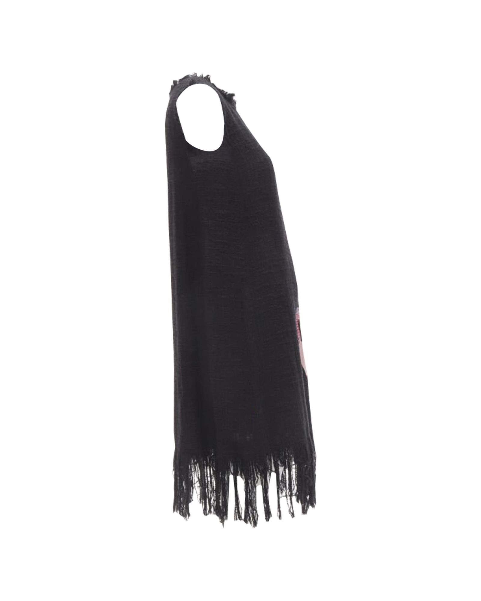 Pre-owned Sleeveless Shift Dress with Embroidered Detail and Fringe