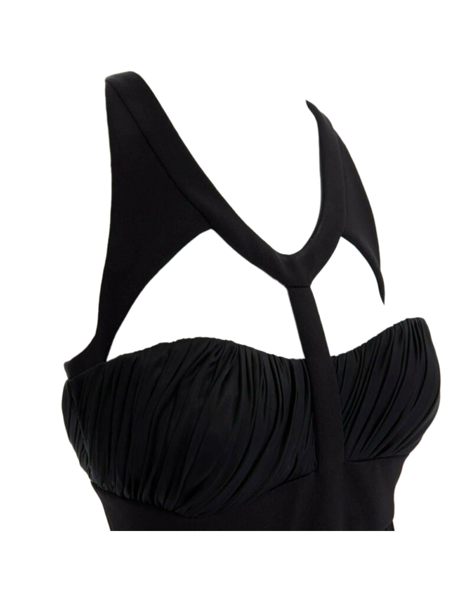Pre-owned Elegant Dress with Cutout Detail and Ruching