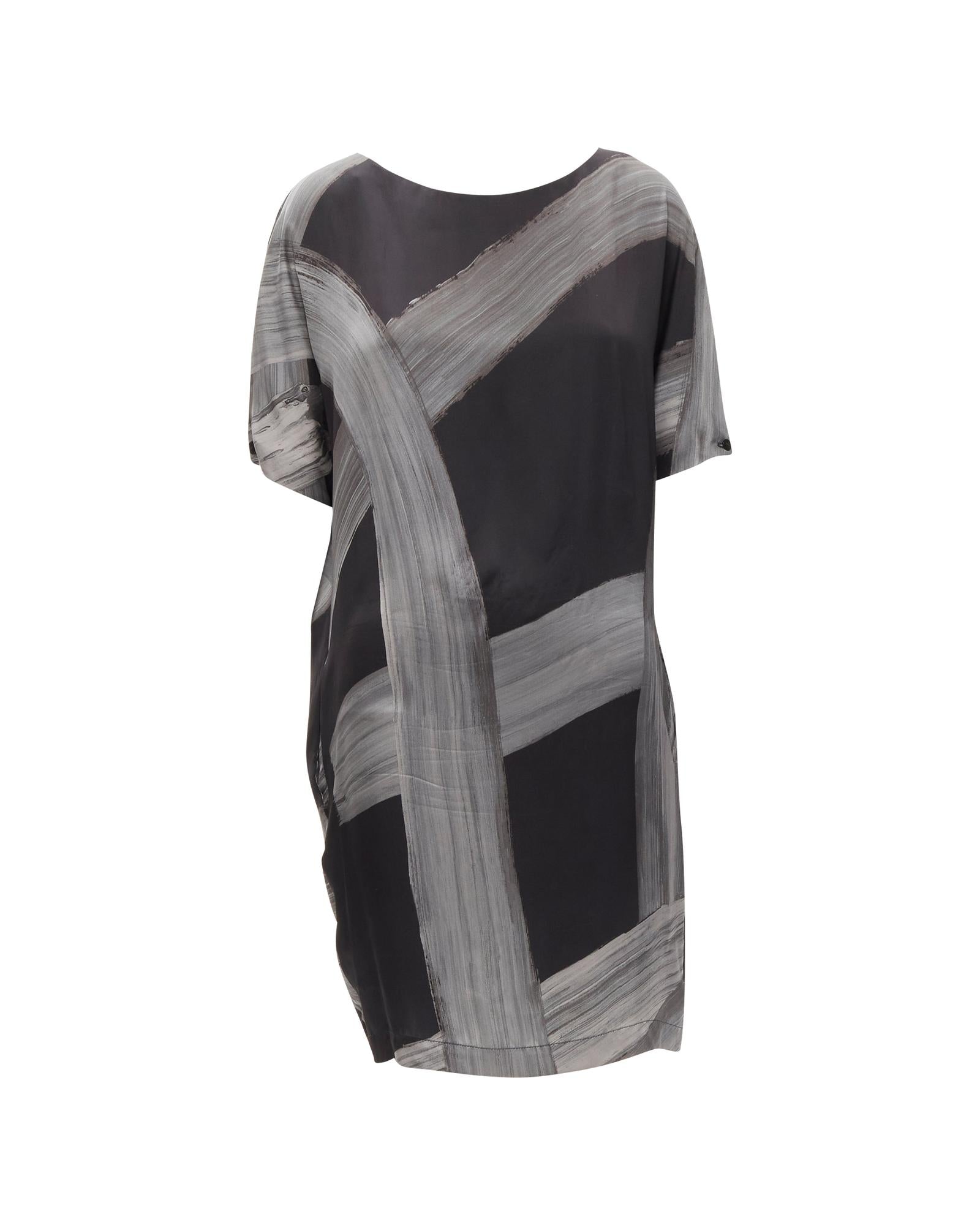 Pre-owned Elegant Short Sleeve Knee Length Dress with Round Neck
