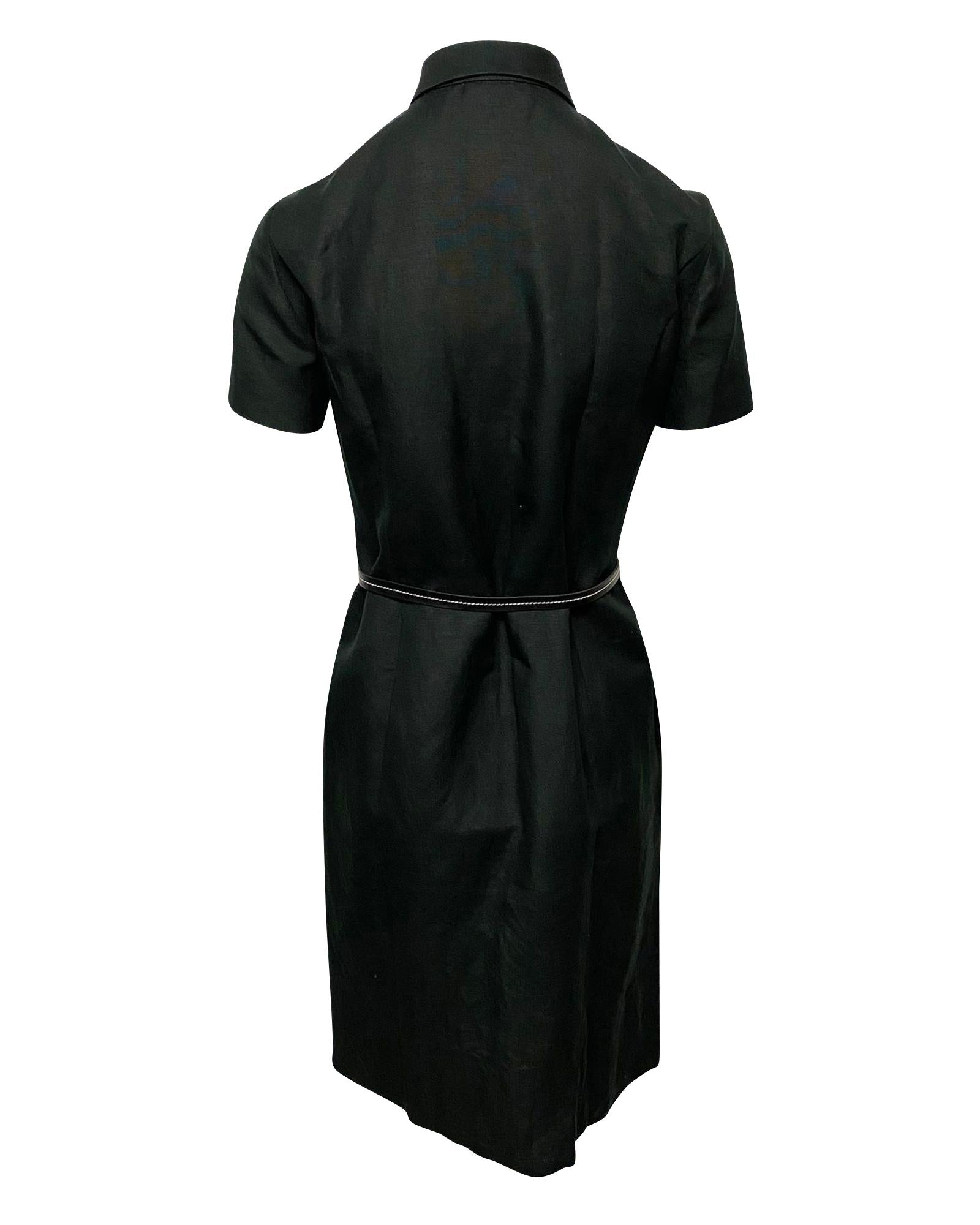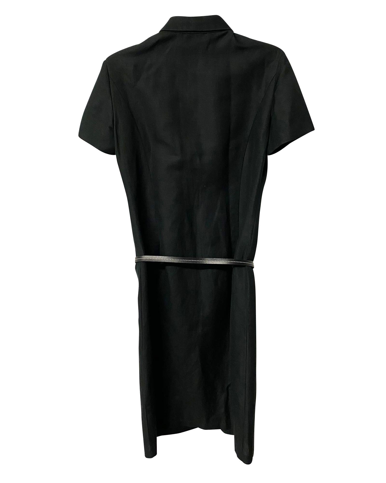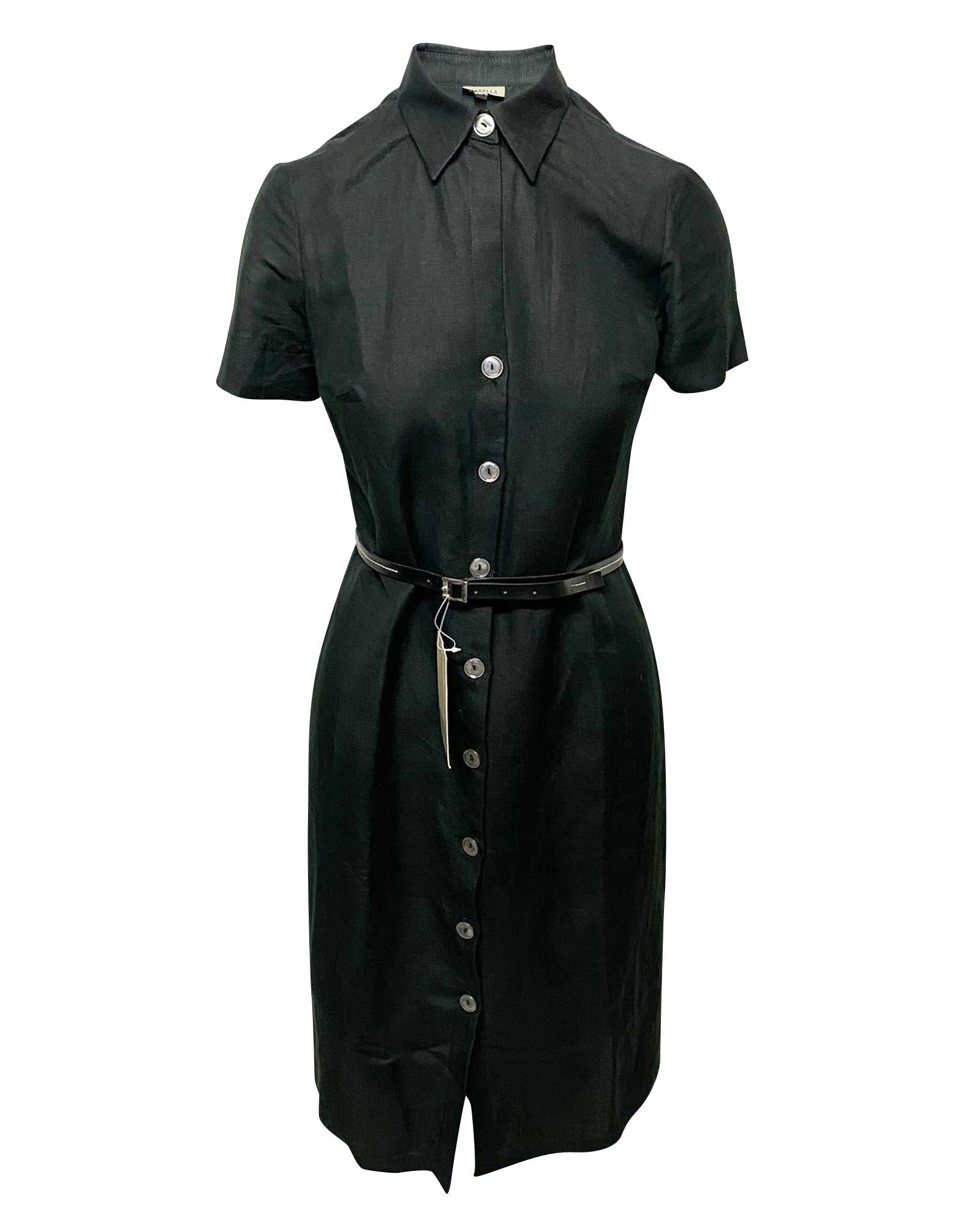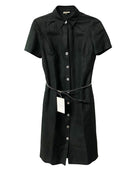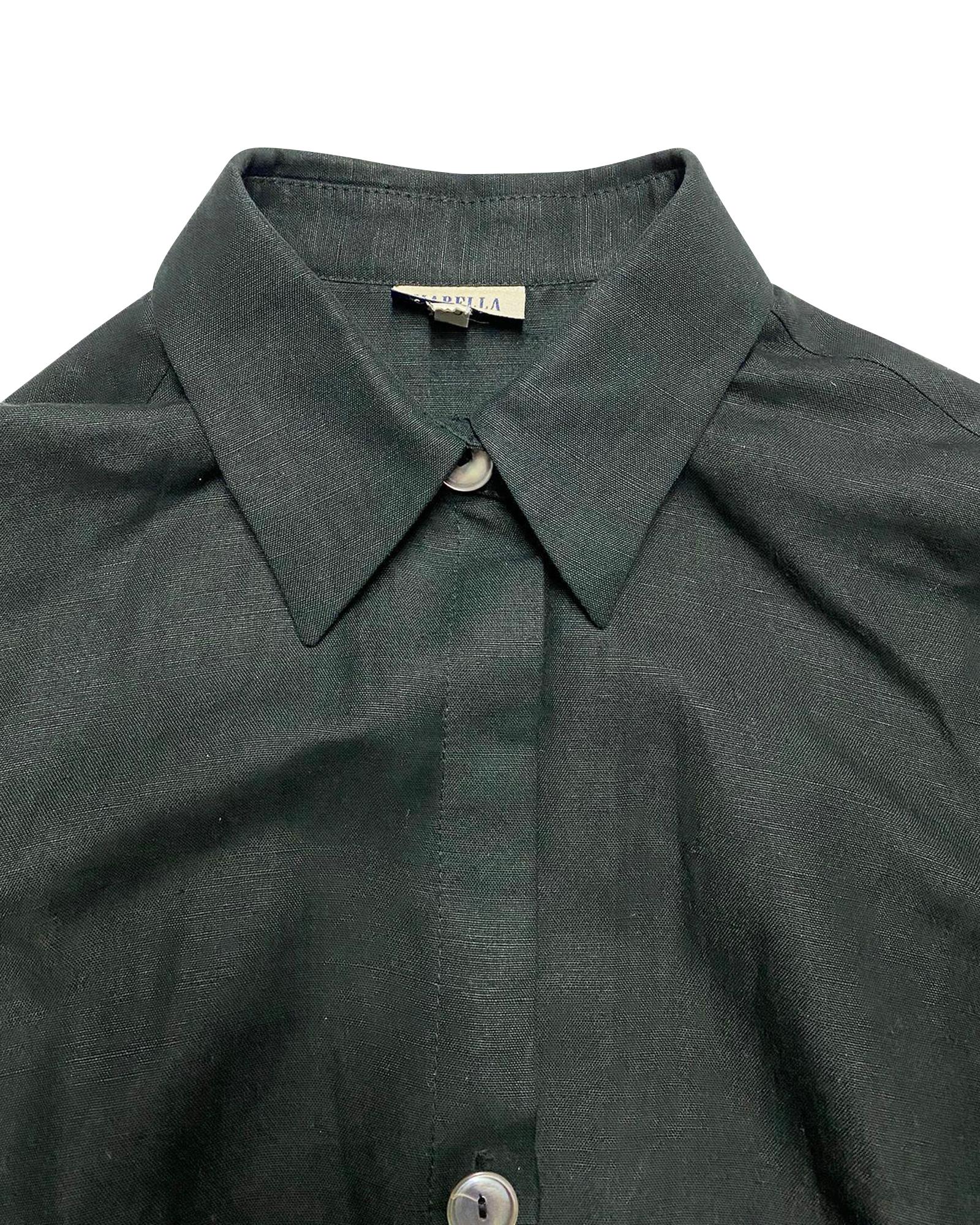 Loose Fit Black Linen Shirt Dress with Side Slits and Belt