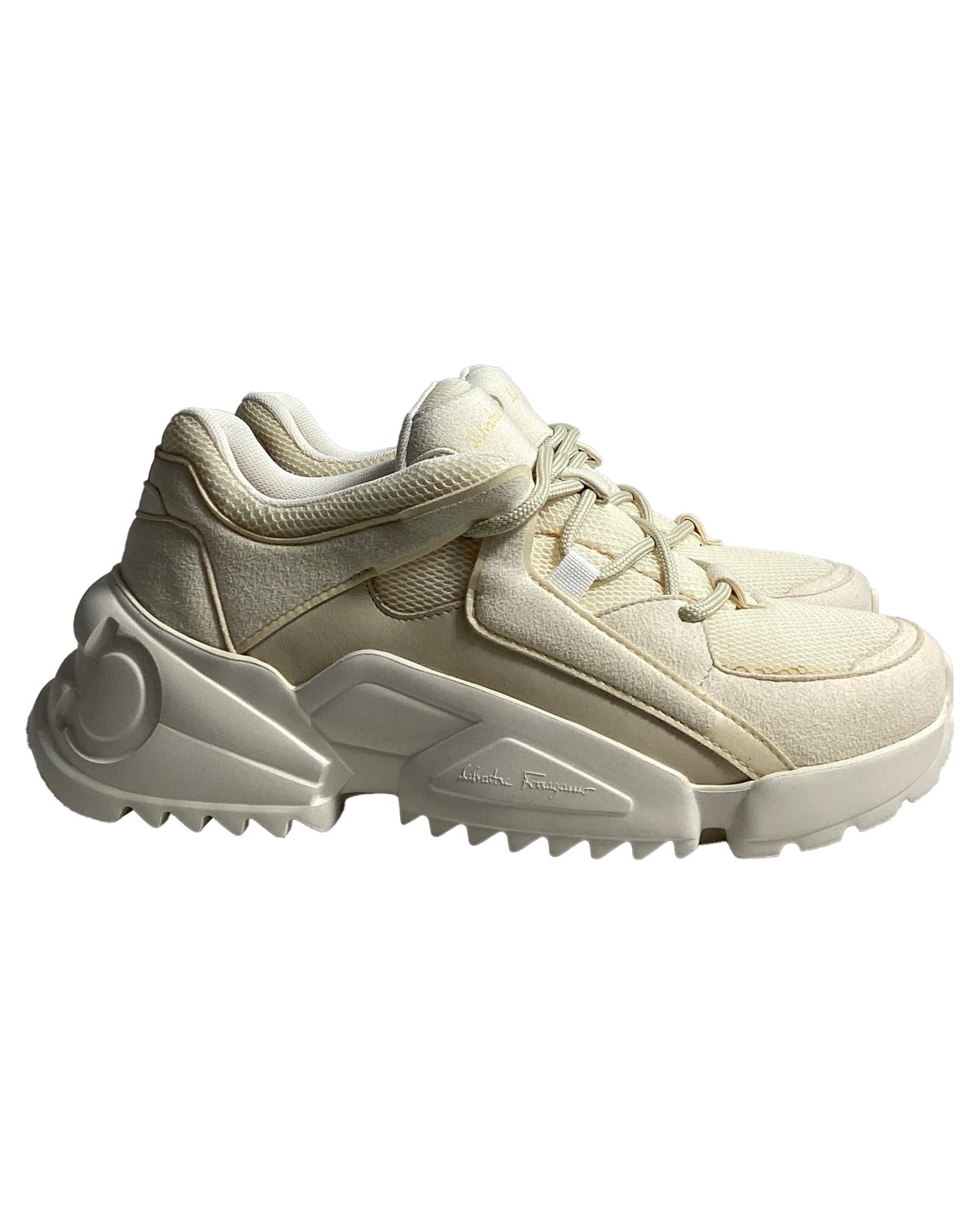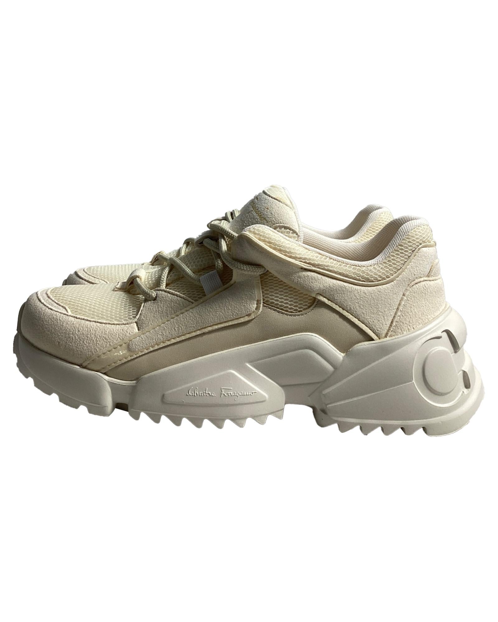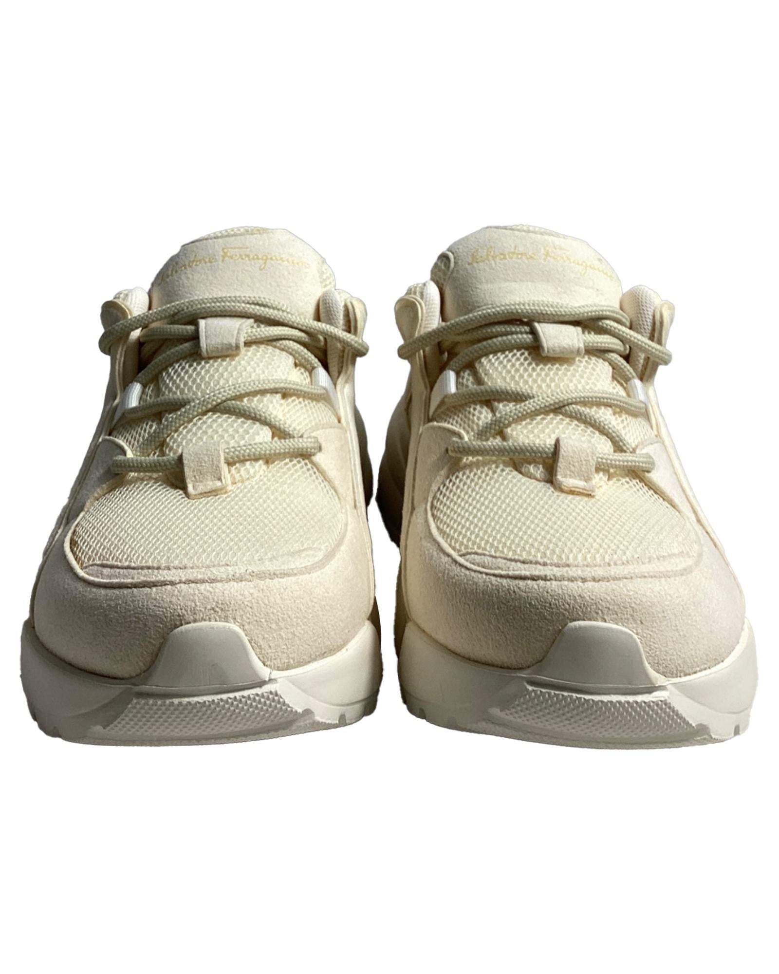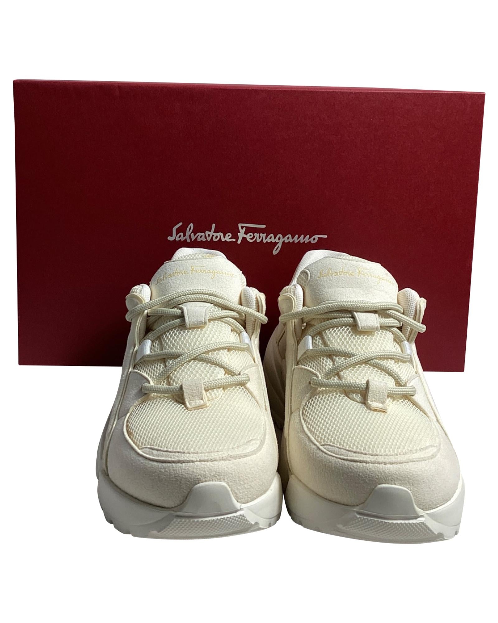 - Salvatore Ferragamo Skylar Sneakers in Cream Mesh and Suede