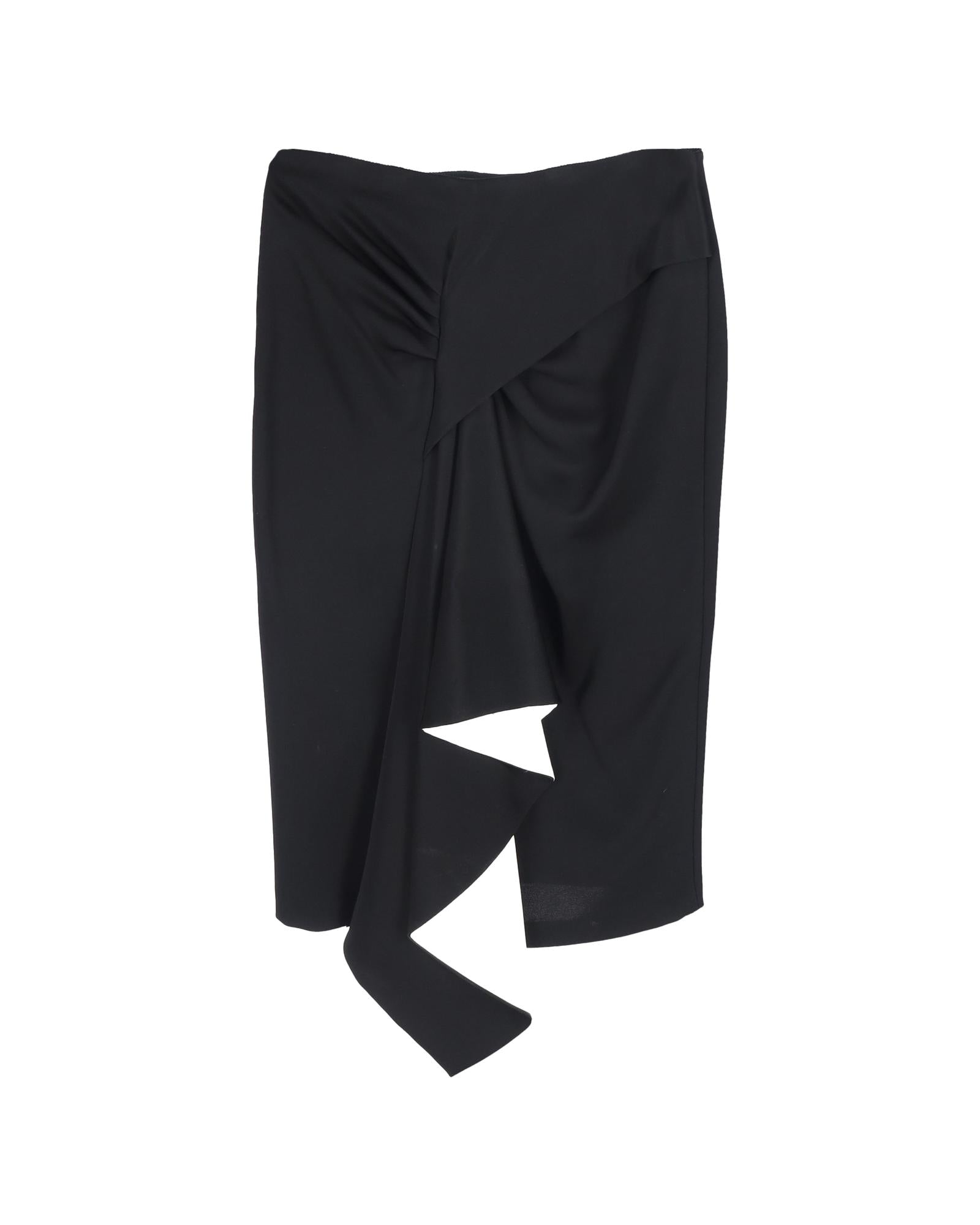 • Givenchy Asymmetric Draped Knee Skirt in Black Polyester