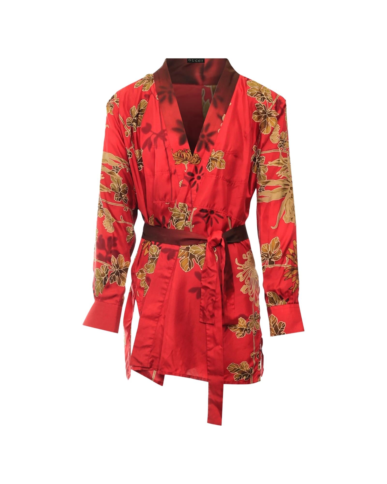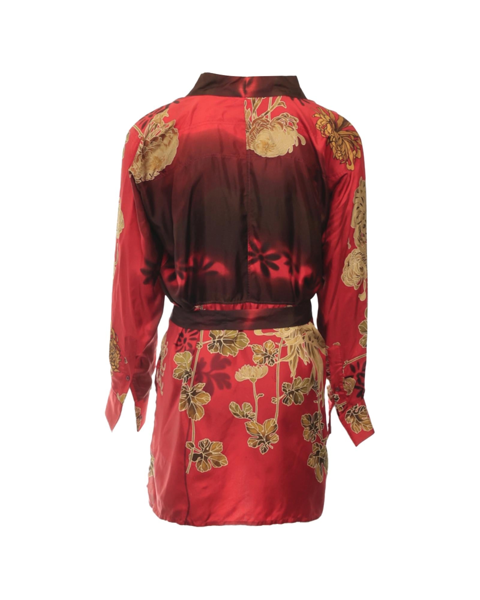 Floral Print Long Sleeve Belted Kimono Style Jacket