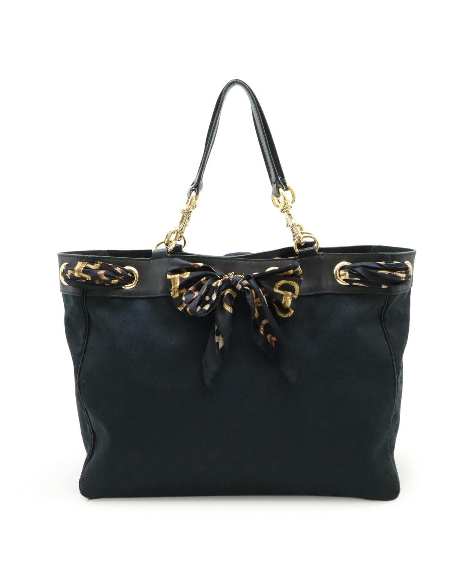 Elegant Tote Bag with Bow Detail and Chain Accents