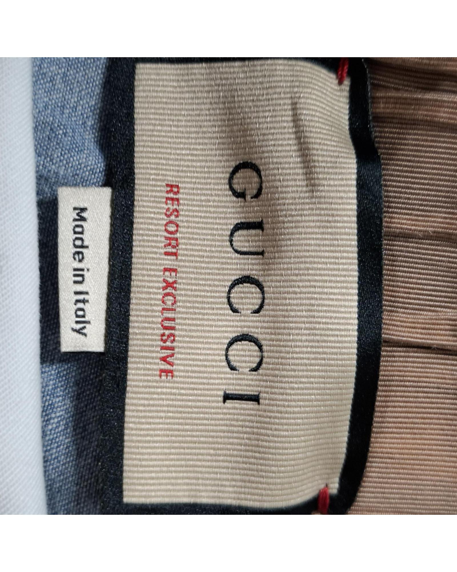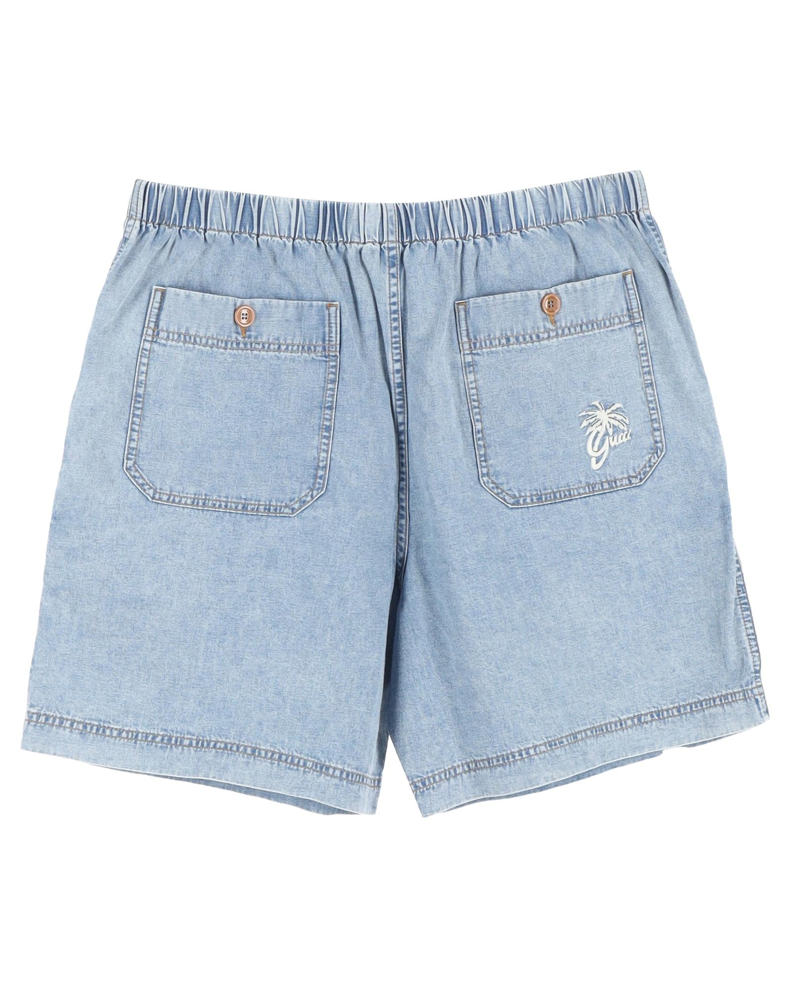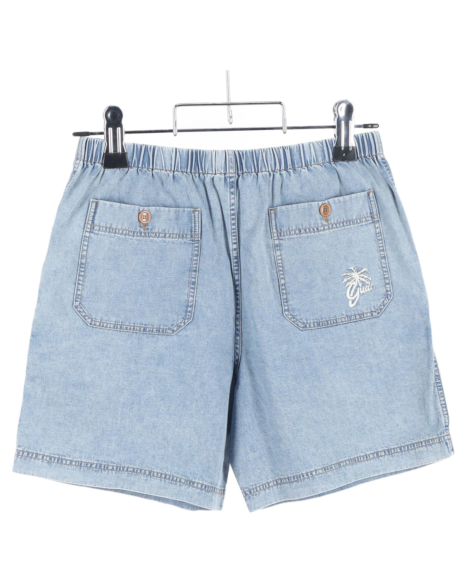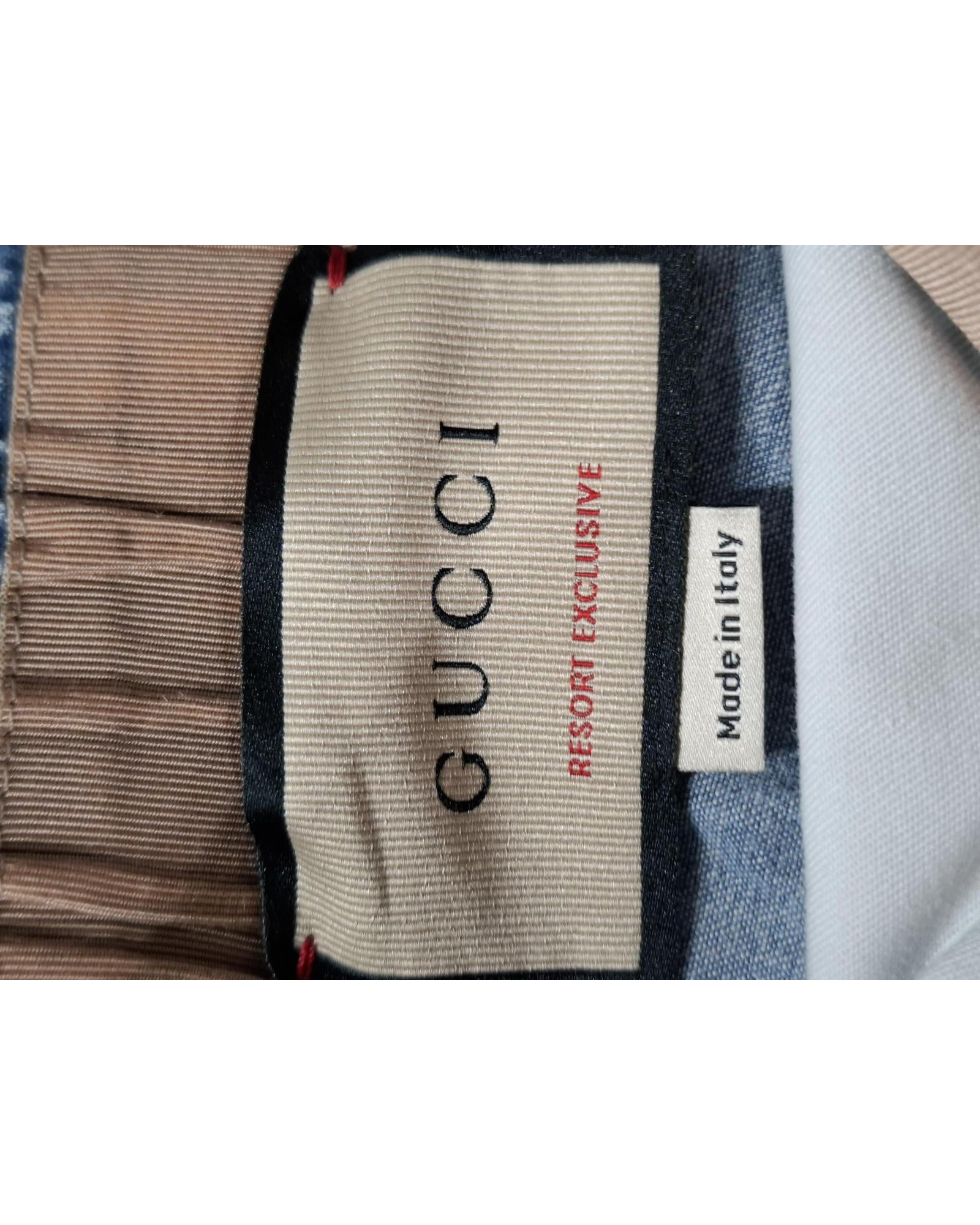 - Gucci Logo Print Drawstring Shorts in Blue Cotton Denim