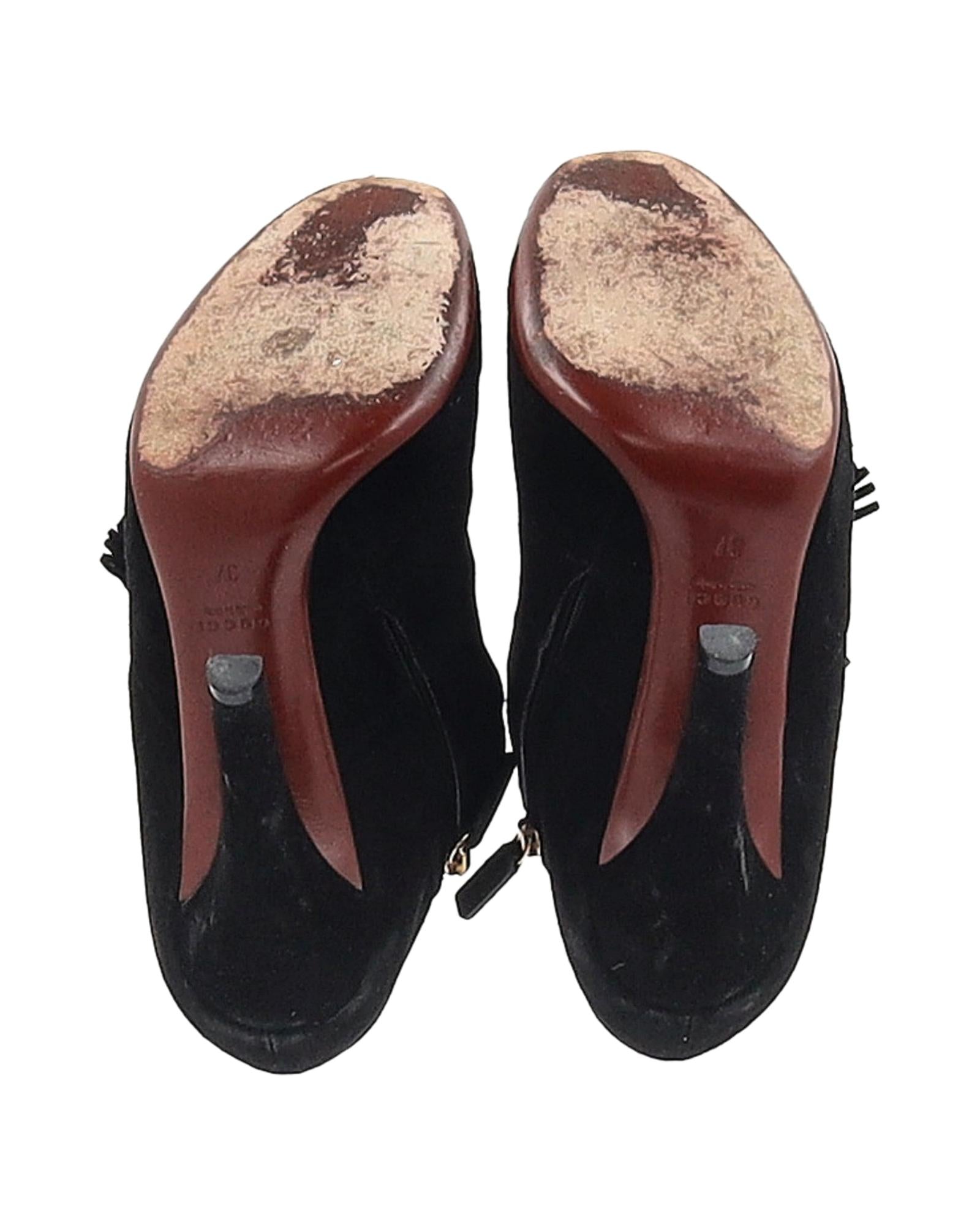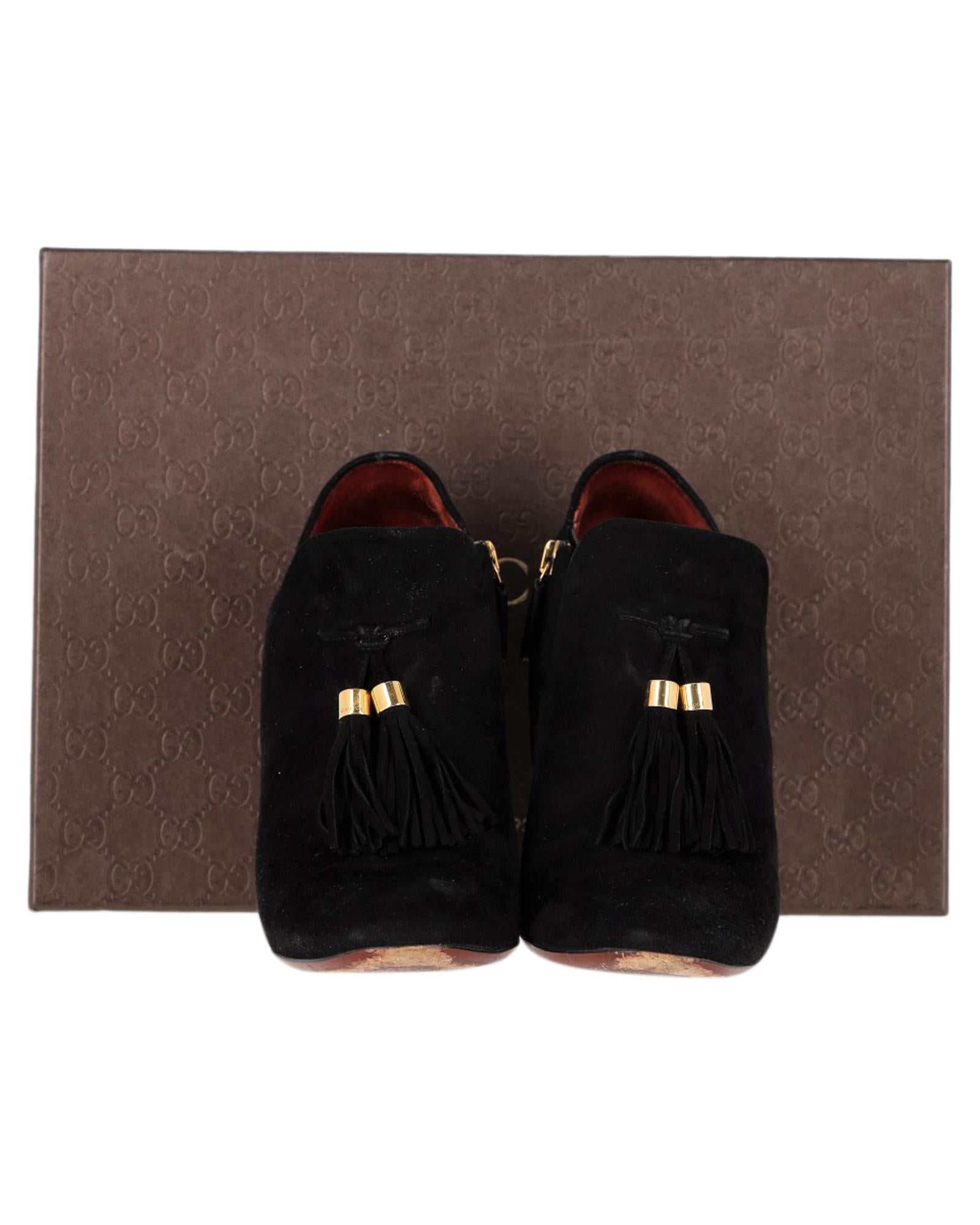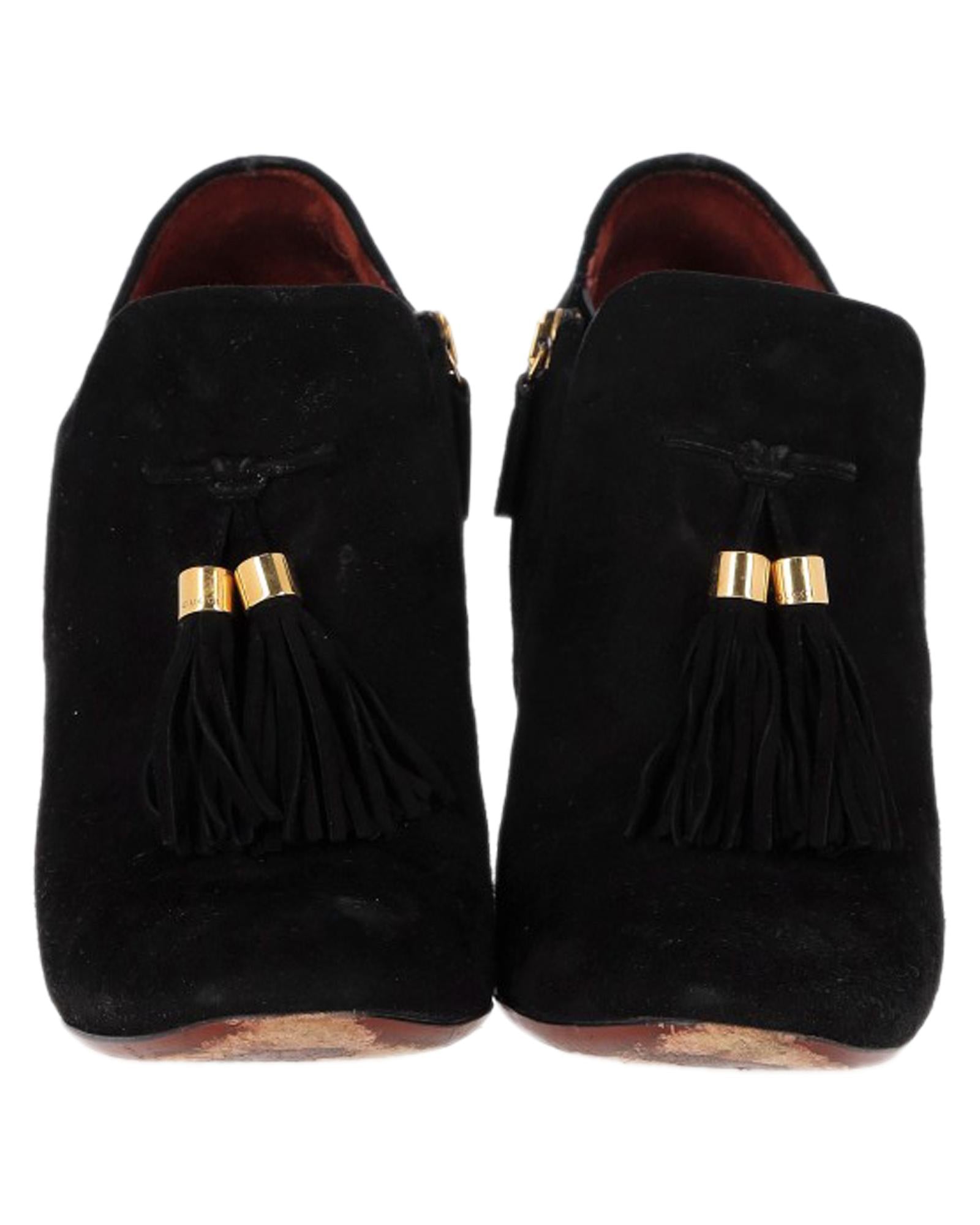 - Gucci Mischa Tassel Detail Ankle Boots in Black Suede