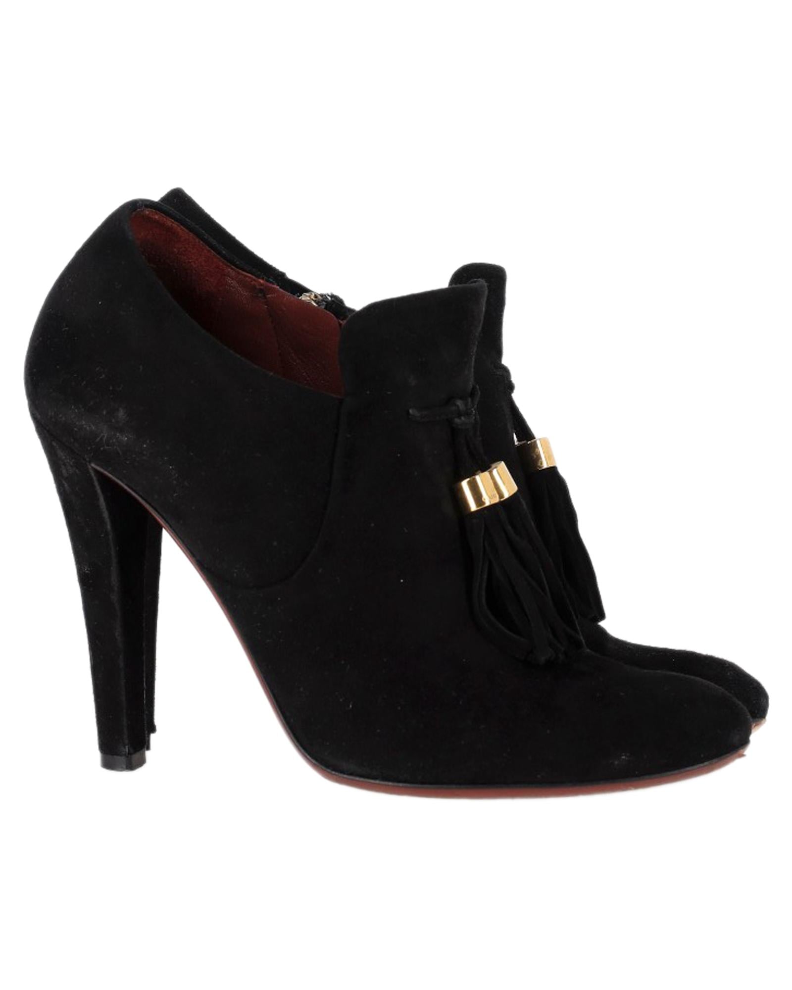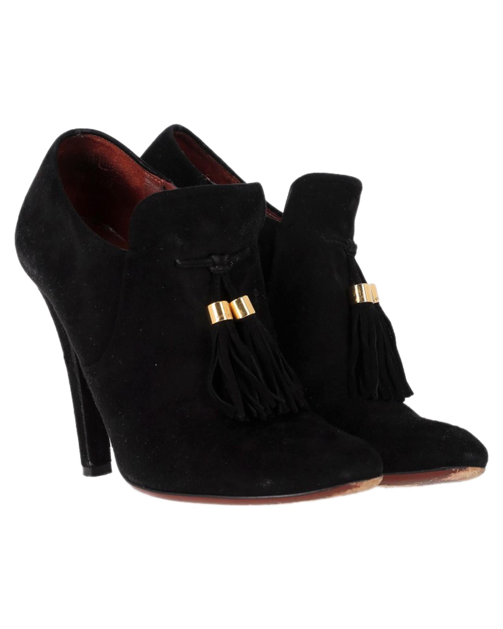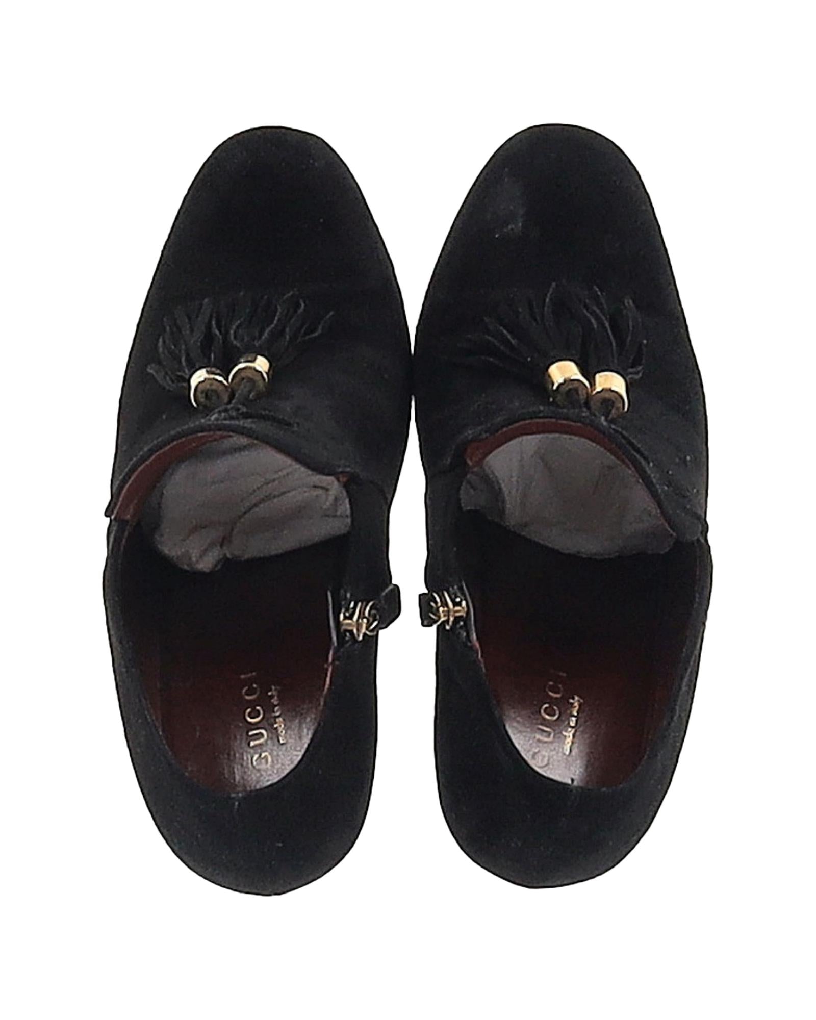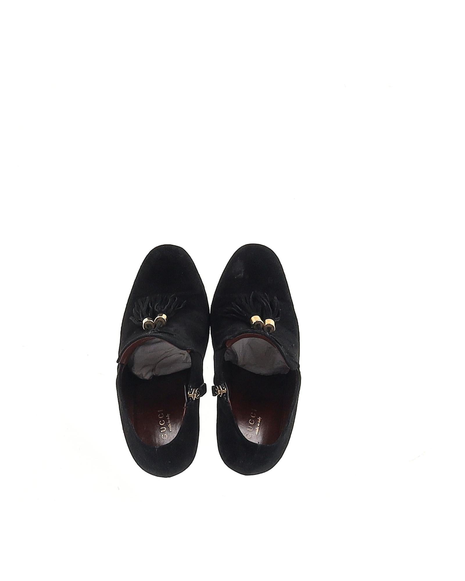 - Gucci Mischa Tassel Detail Ankle Boots in Black Suede