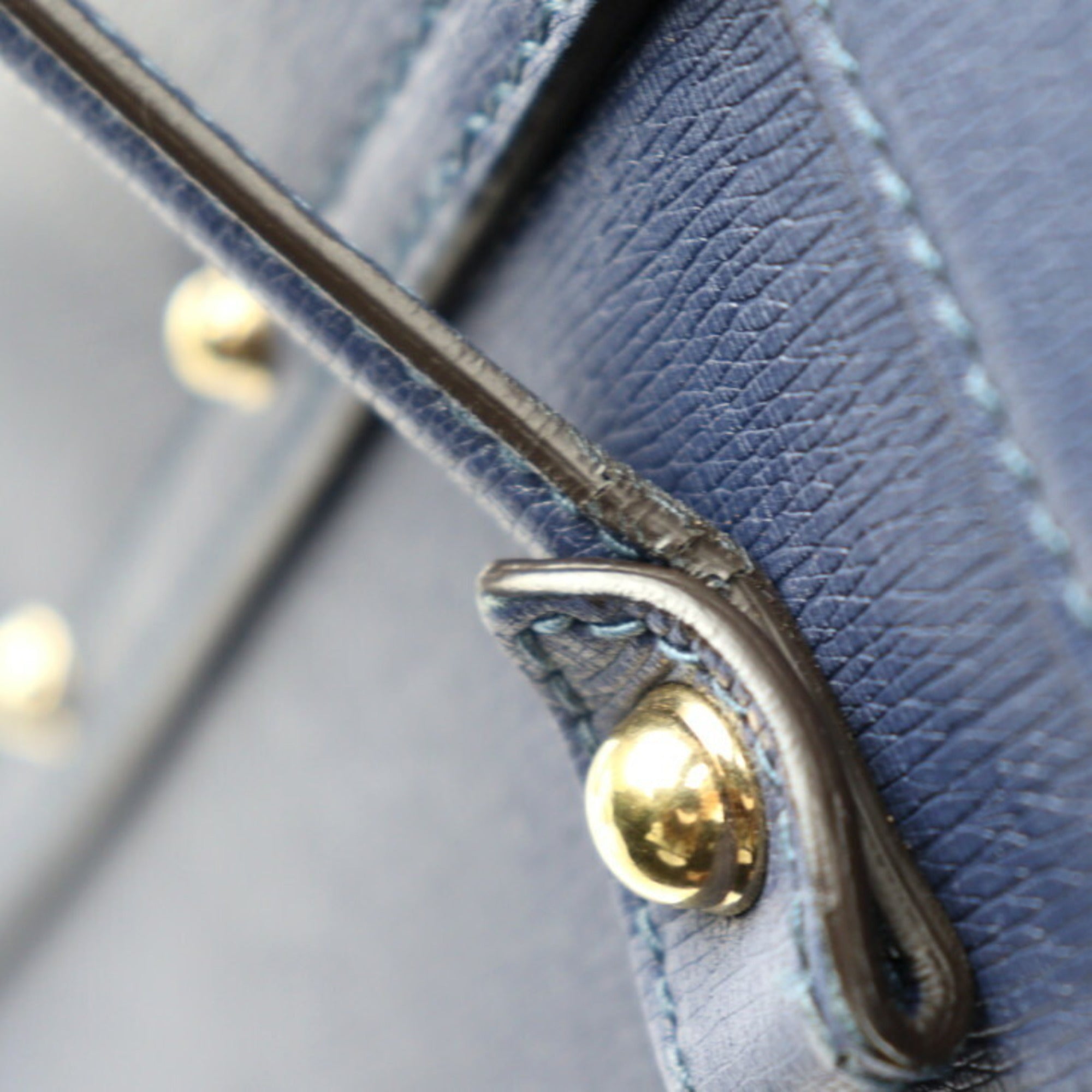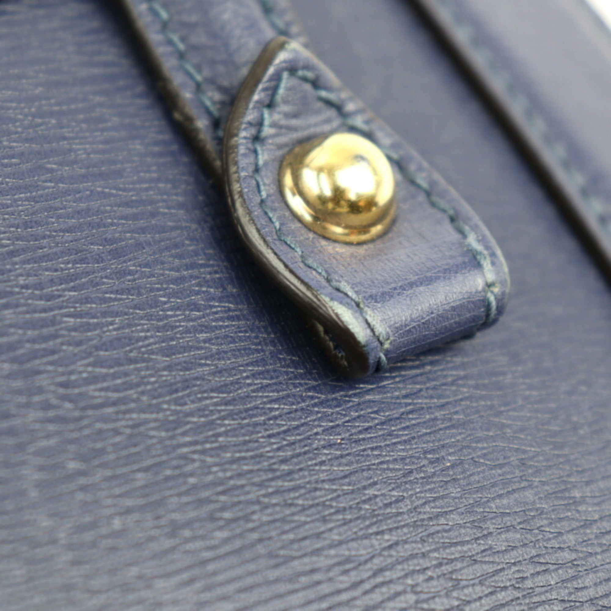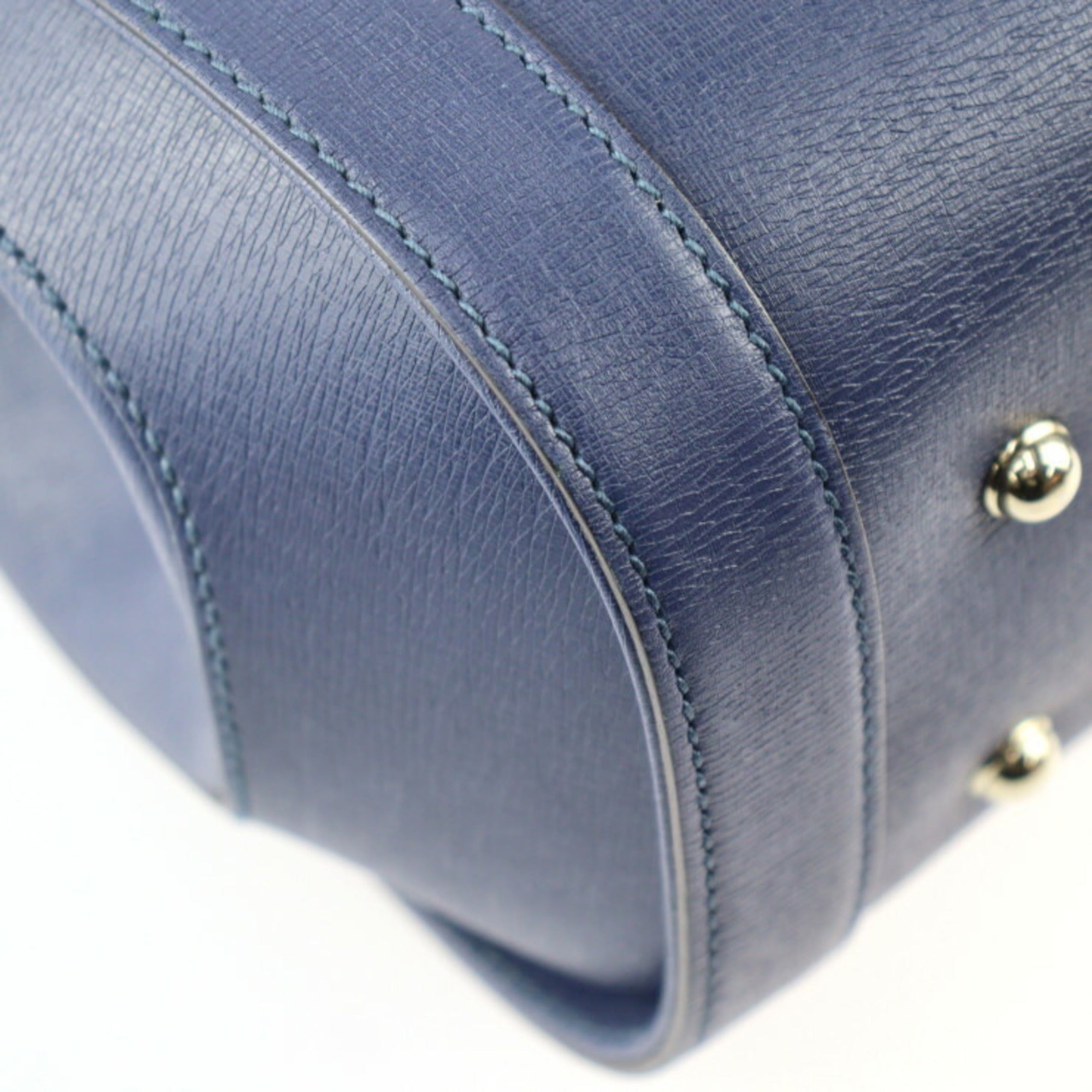 Navy Leather Handbag with Gold Hardware