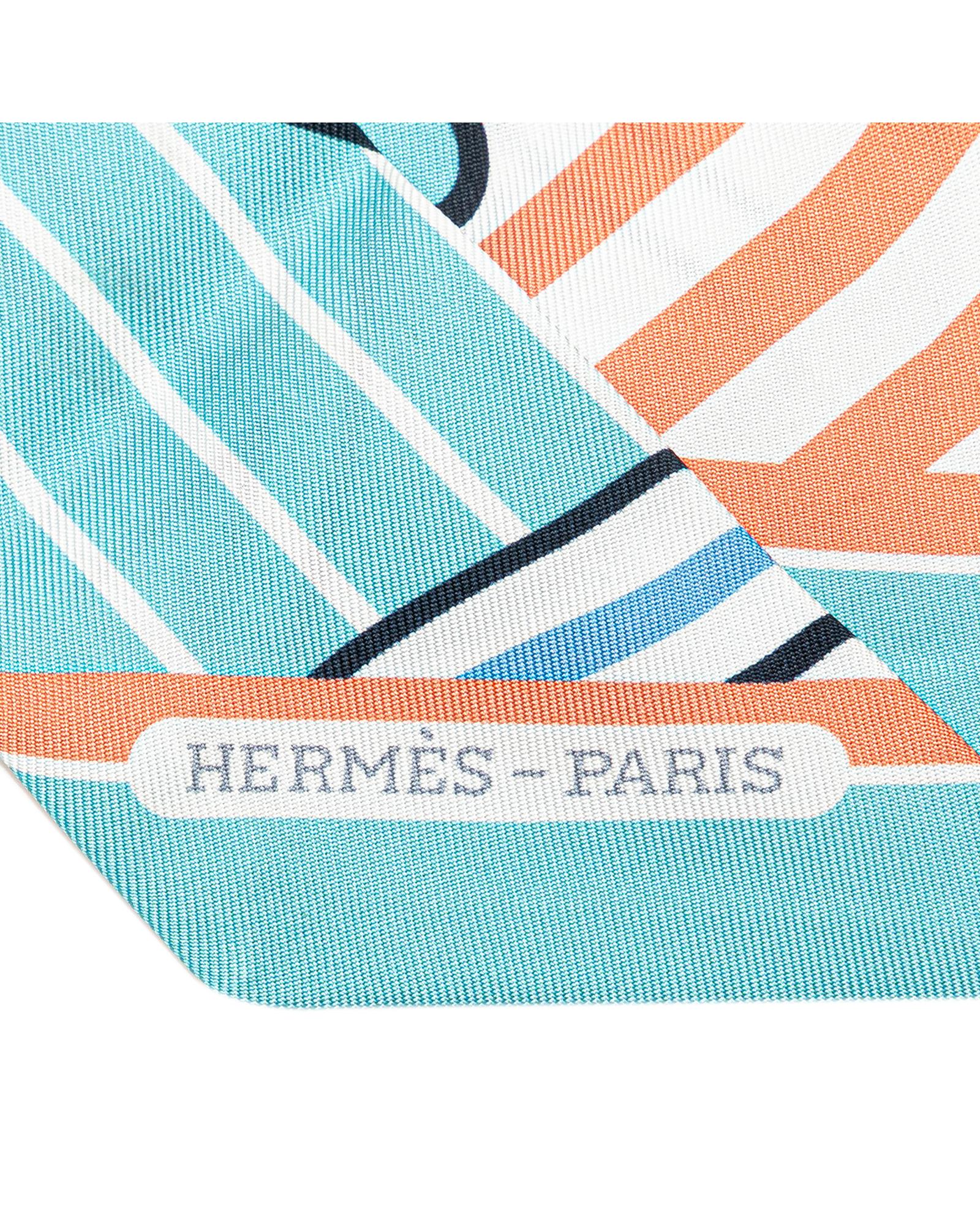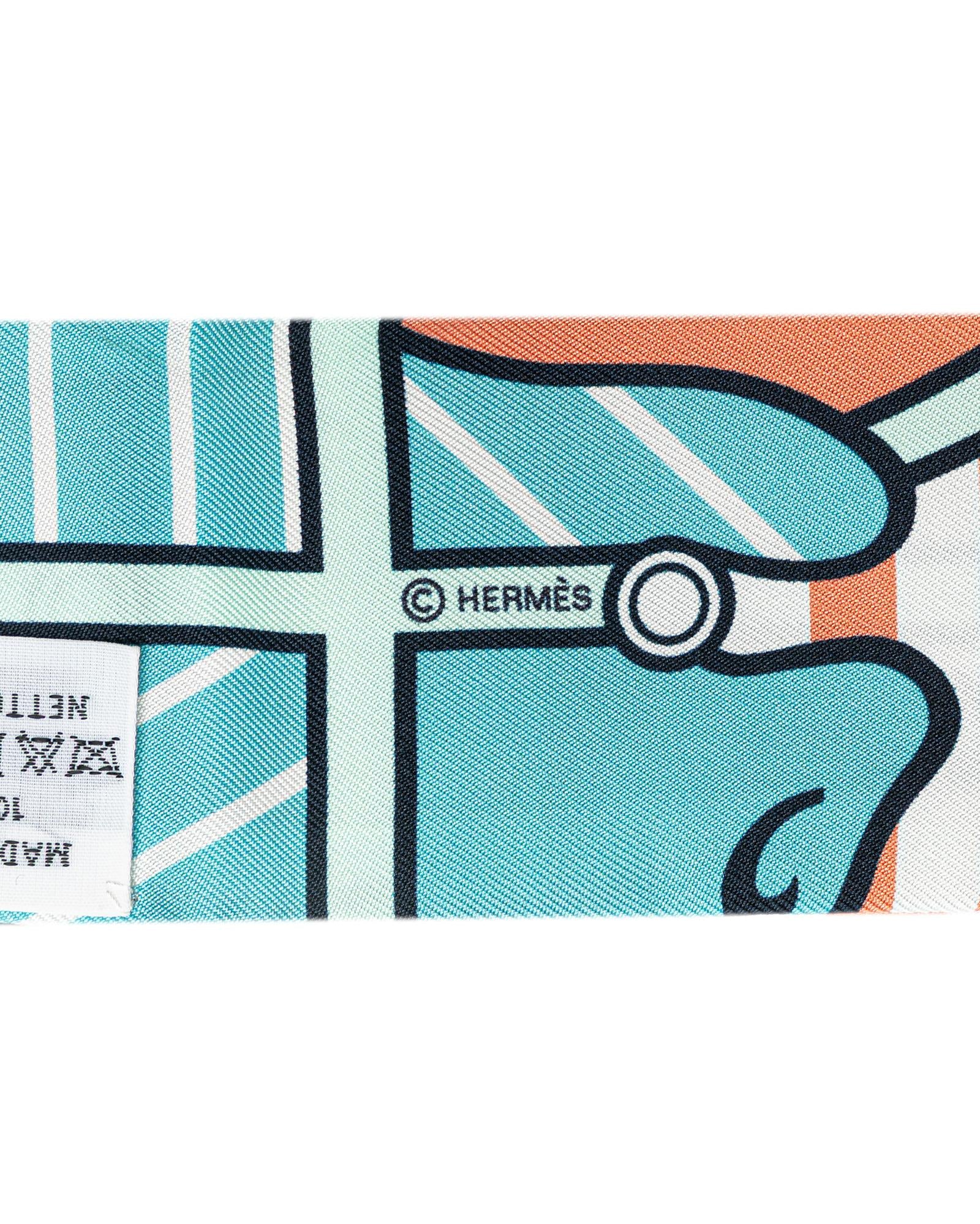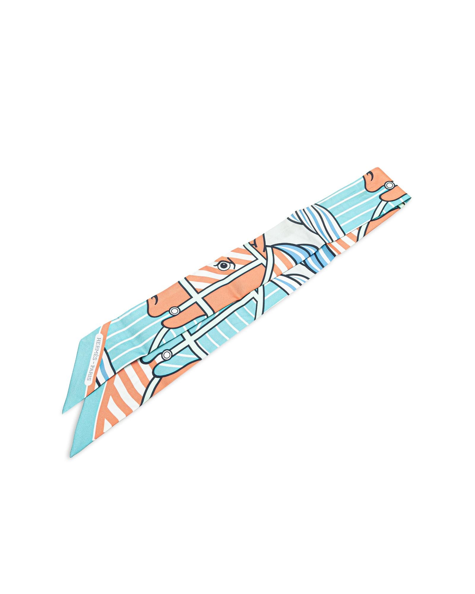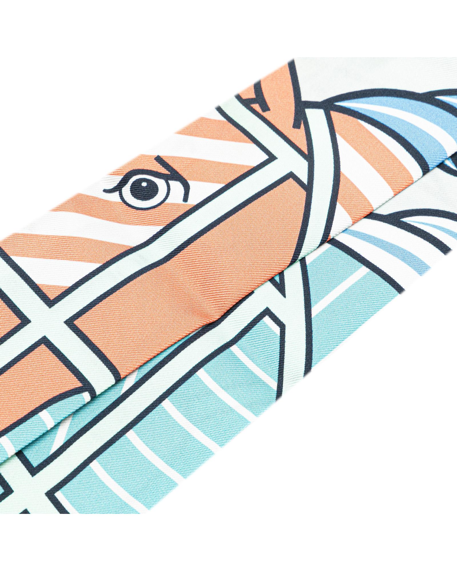 The Quadrige Bayadere twilly scarf features a print on 100% silk.