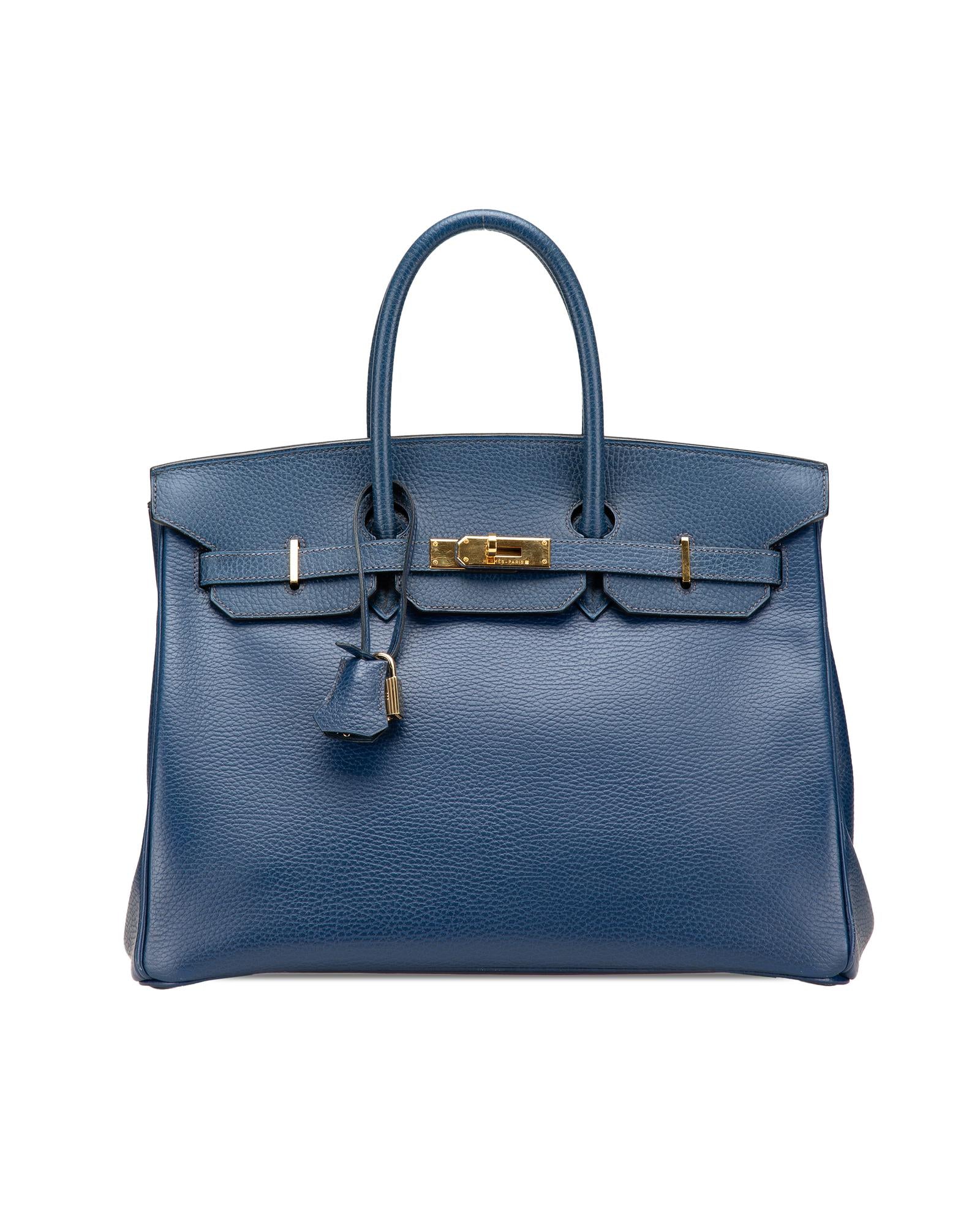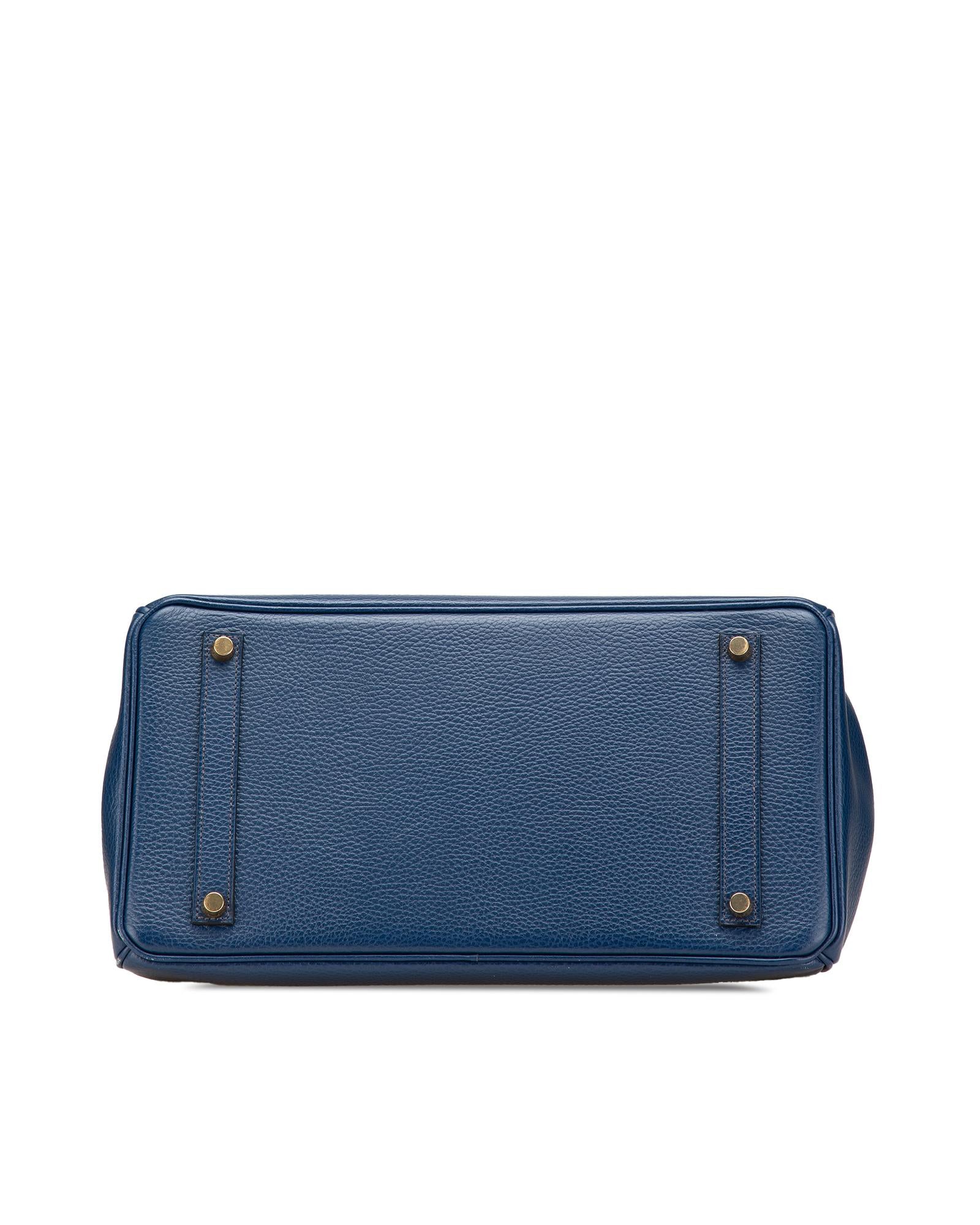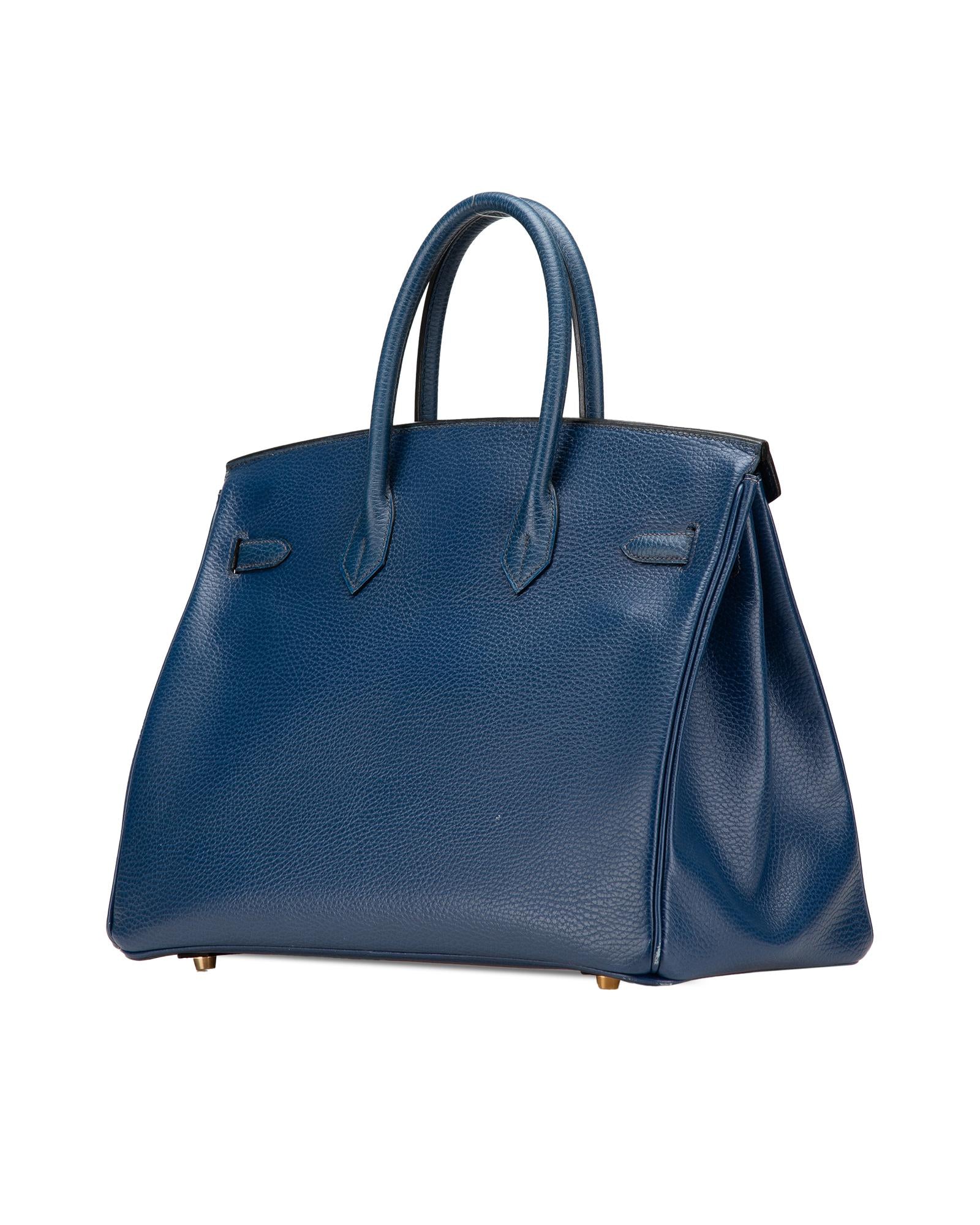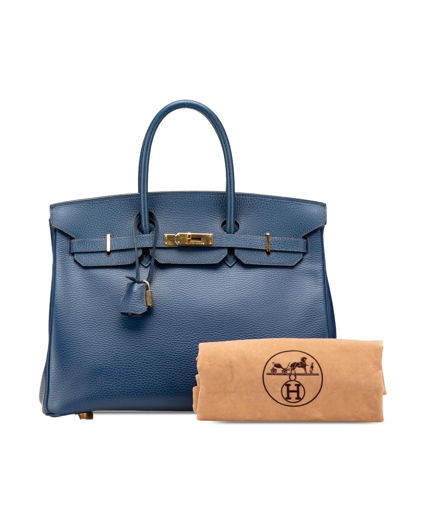 This Birkin 35 features a Togo leather body in Blue De Malte color rolled leather handles a front flap with turn-lock closure and interior zip and slip pockets.Brand: Hermes