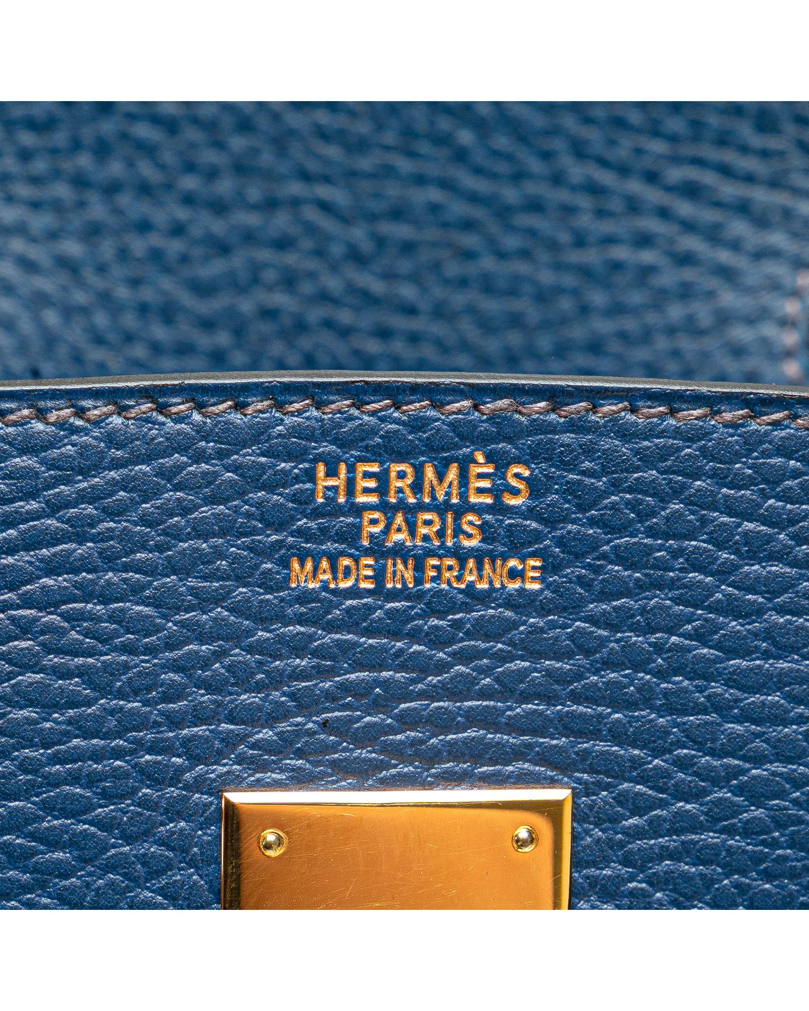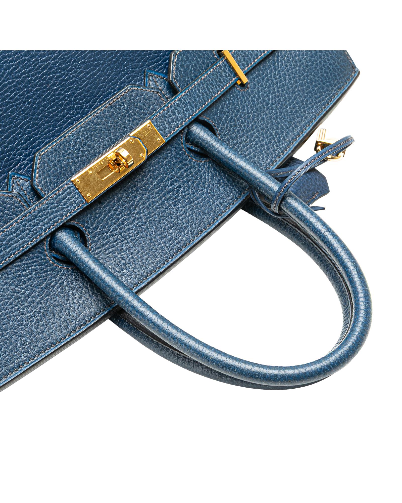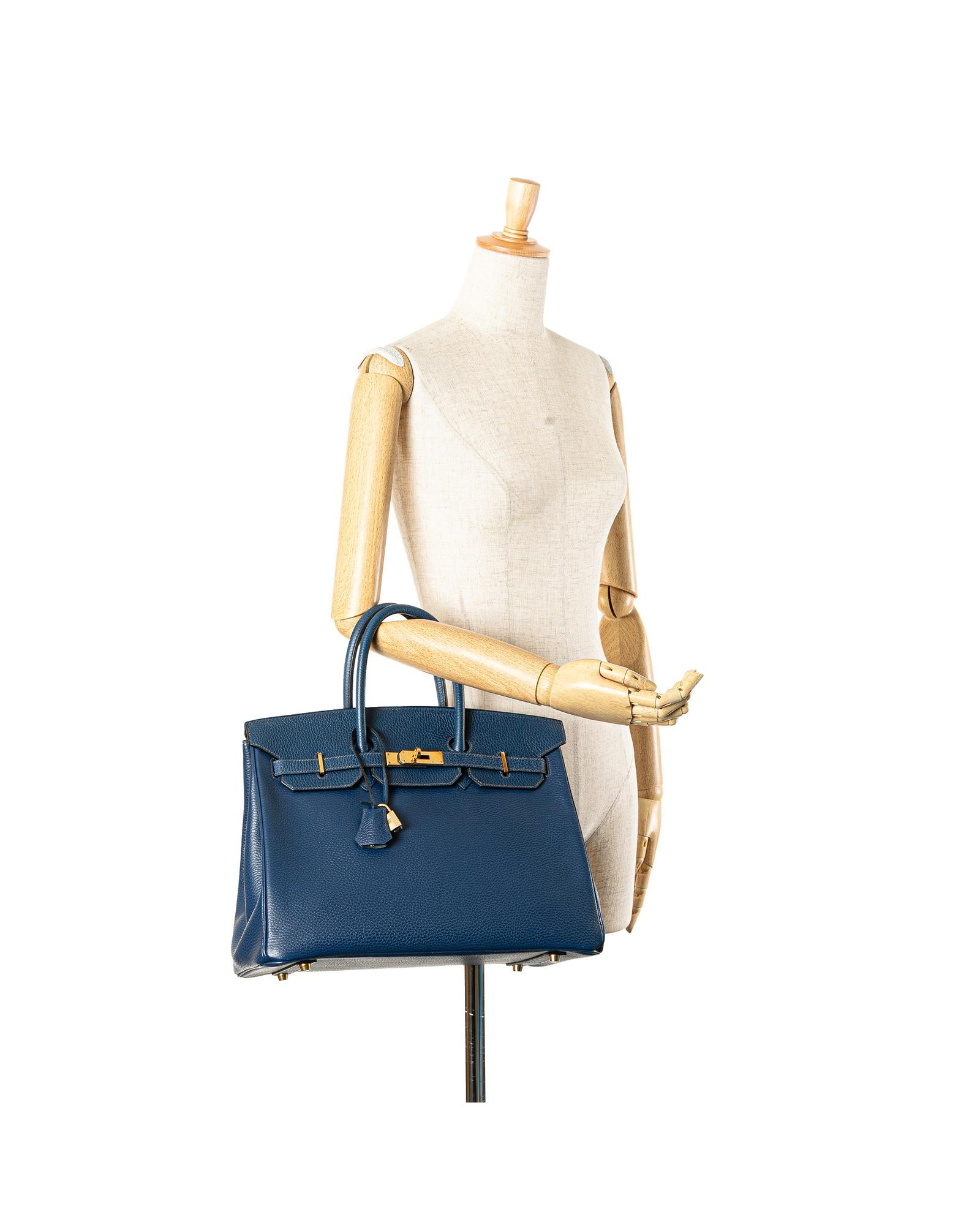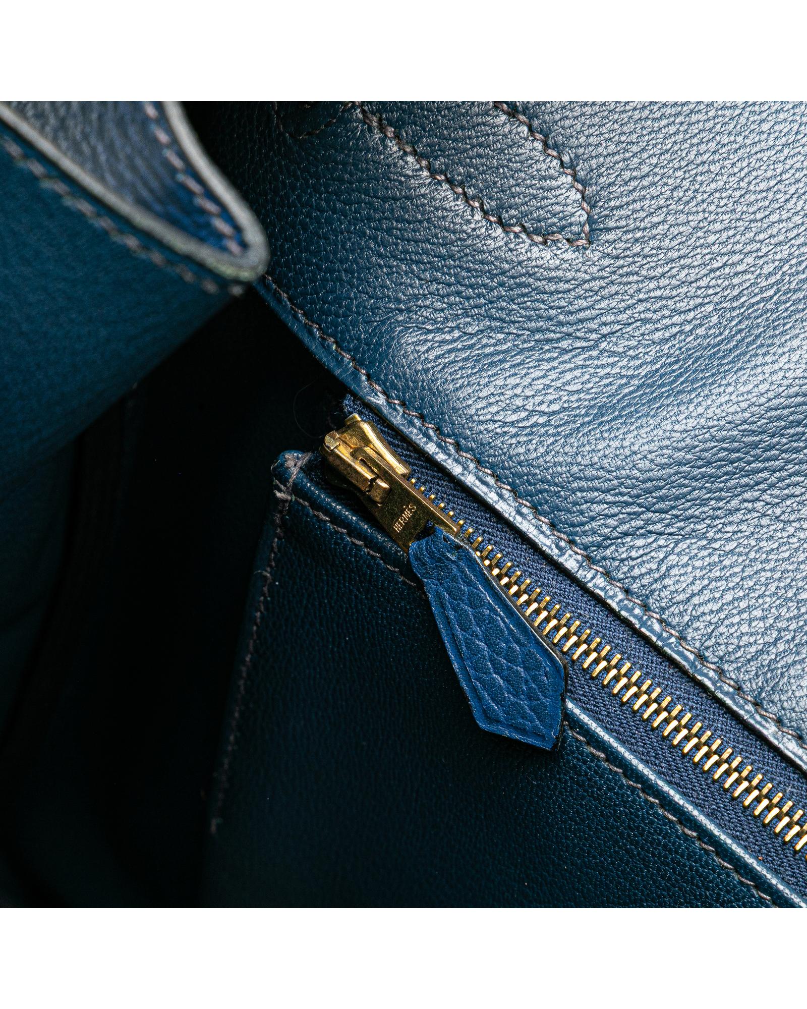 This Birkin 35 features a Togo leather body in Blue De Malte color rolled leather handles a front flap with turn-lock closure and interior zip and slip pockets.Brand: Hermes