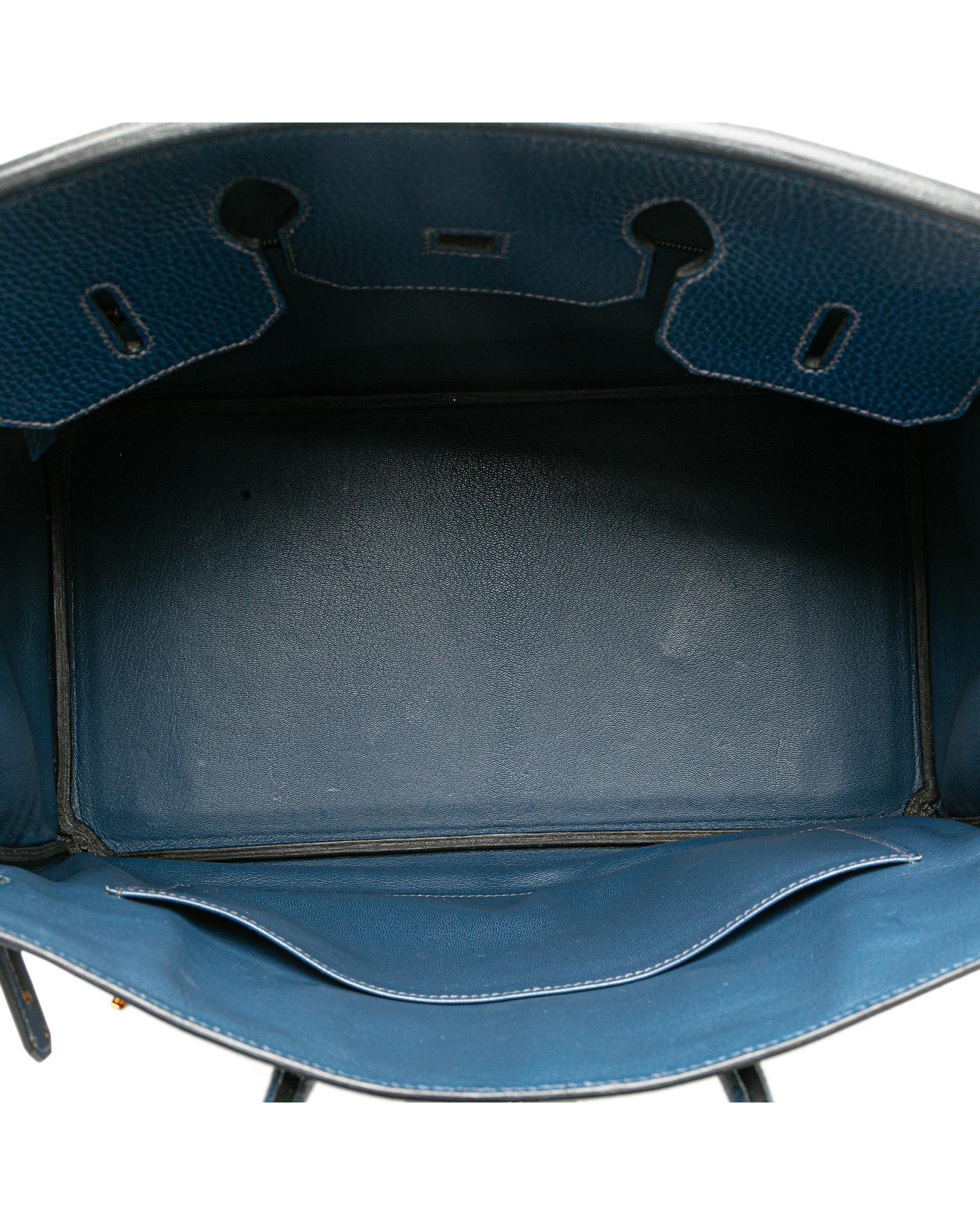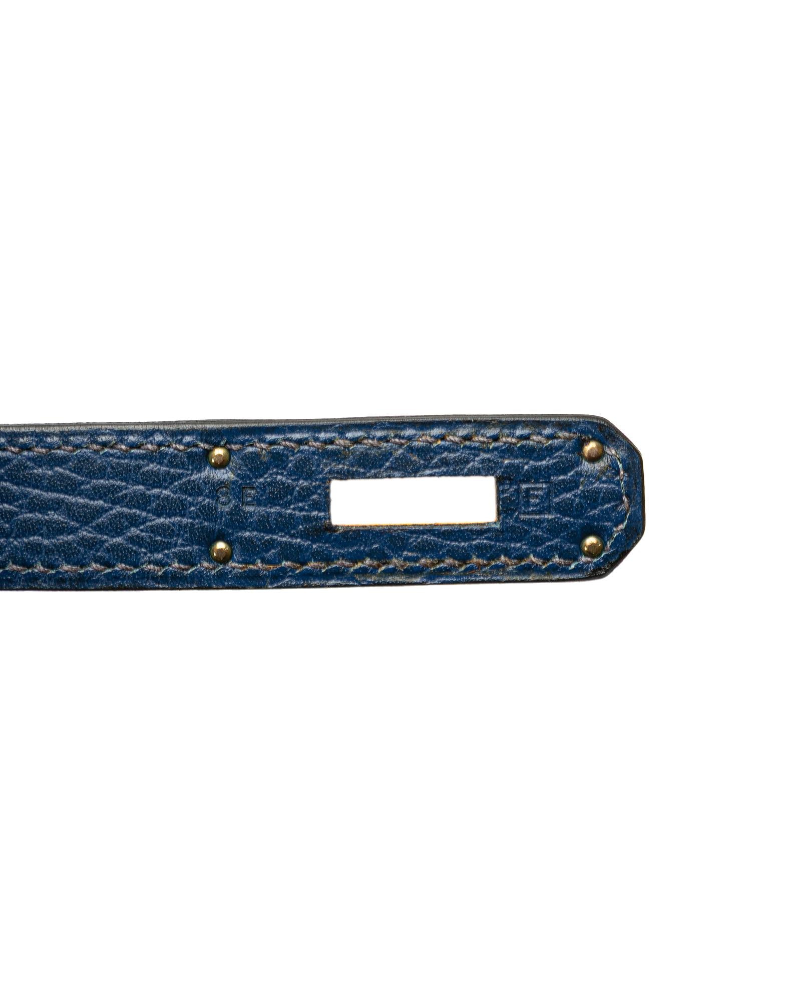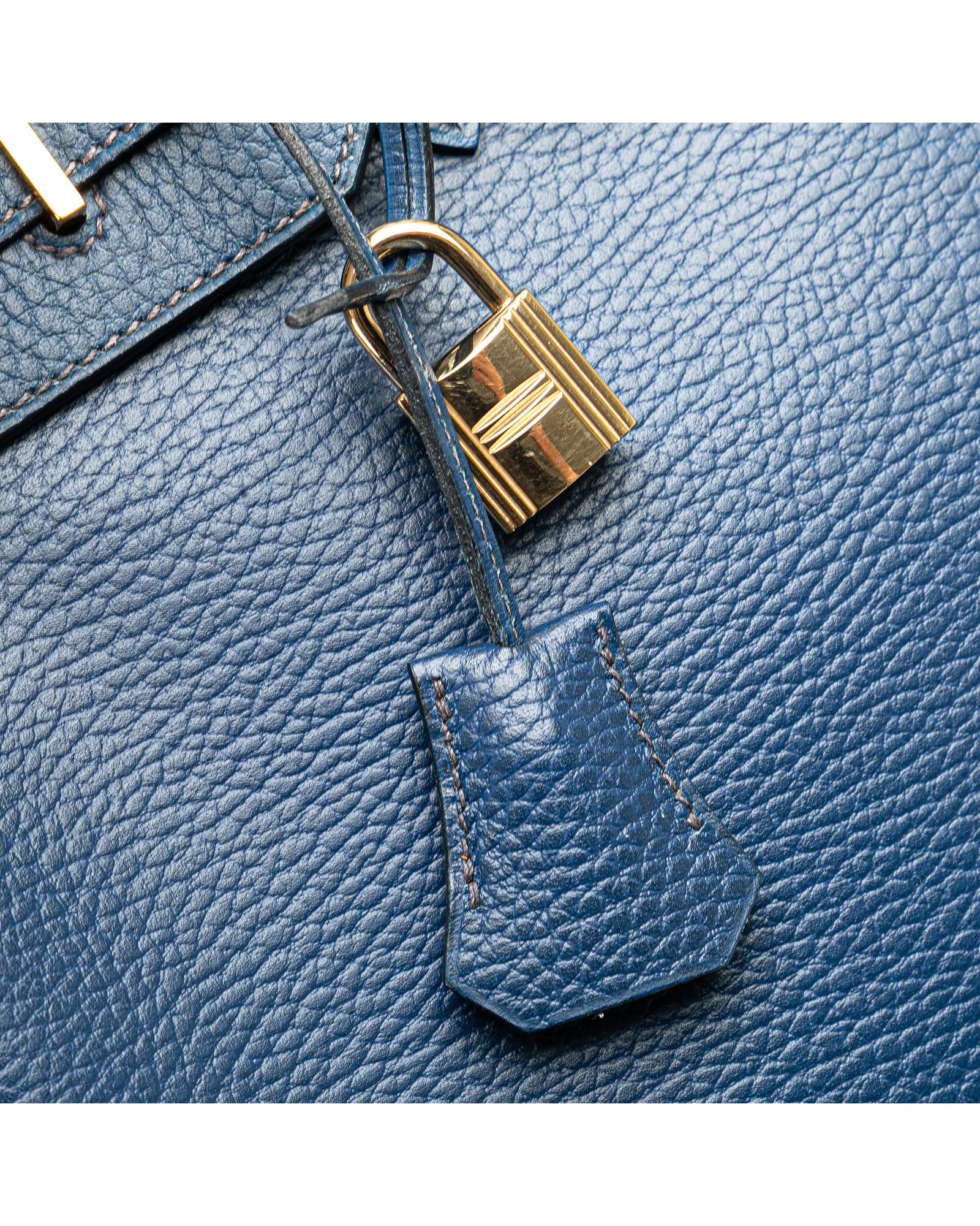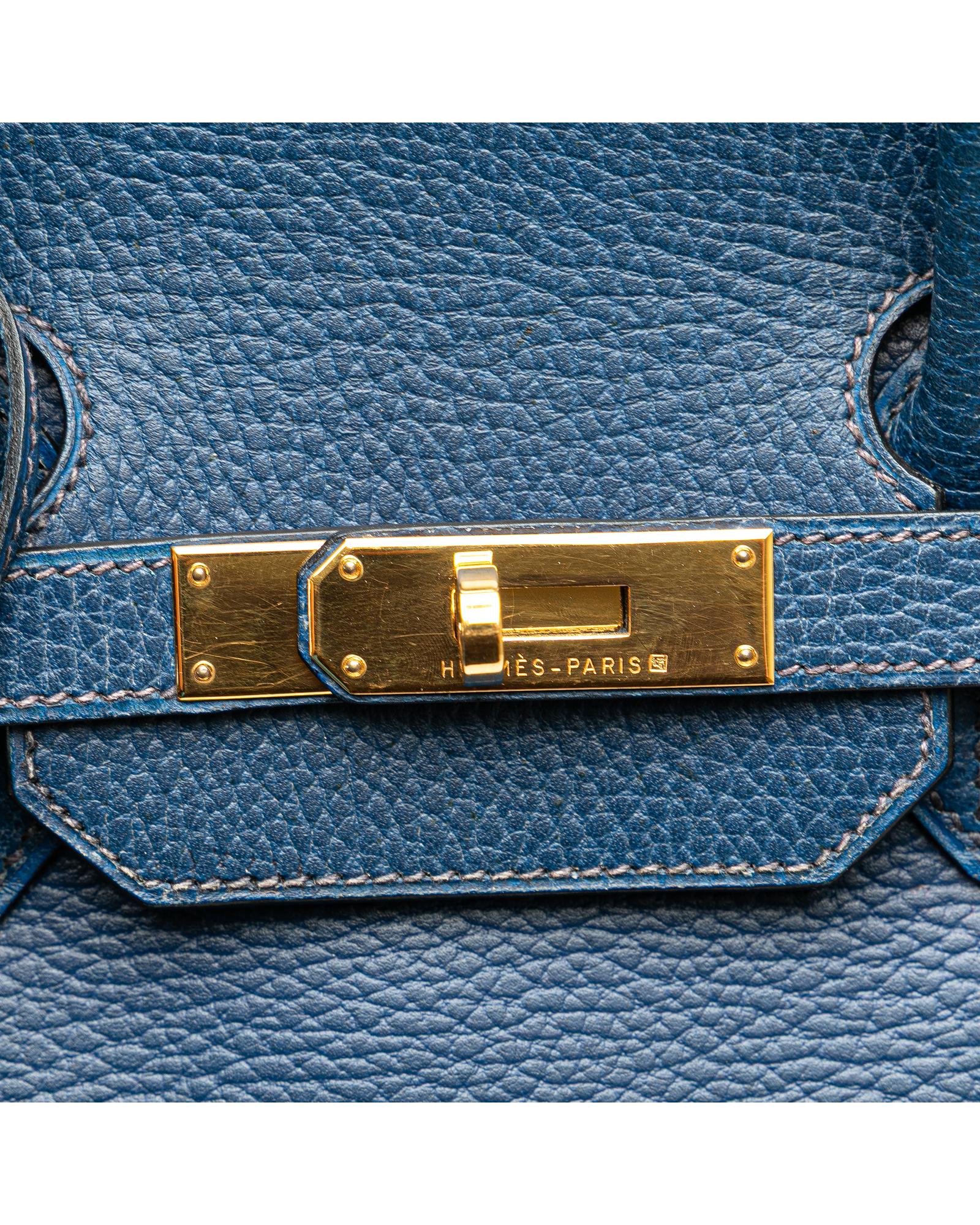 This Birkin 35 features a Togo leather body in Blue De Malte color rolled leather handles a front flap with turn-lock closure and interior zip and slip pockets.Brand: Hermes