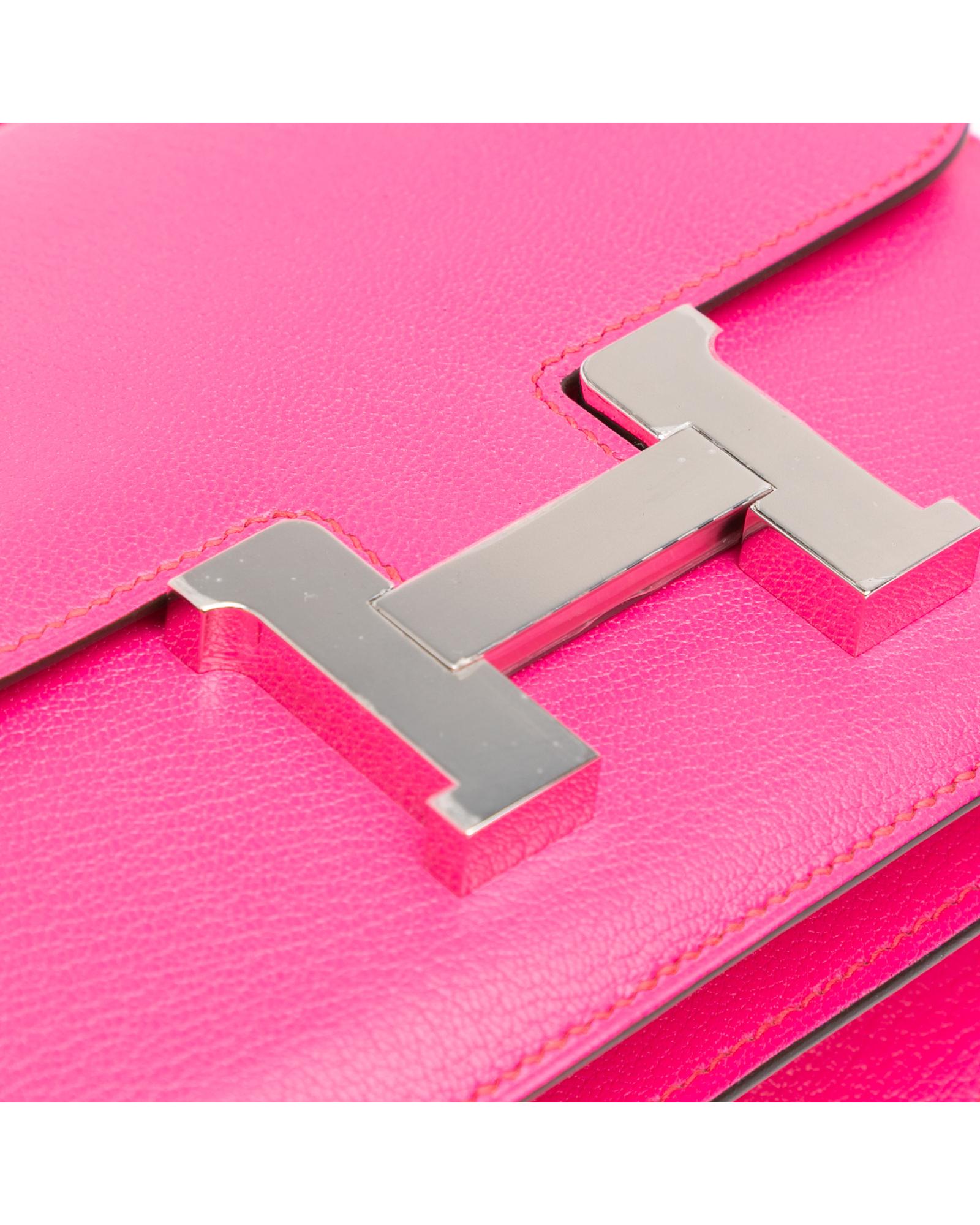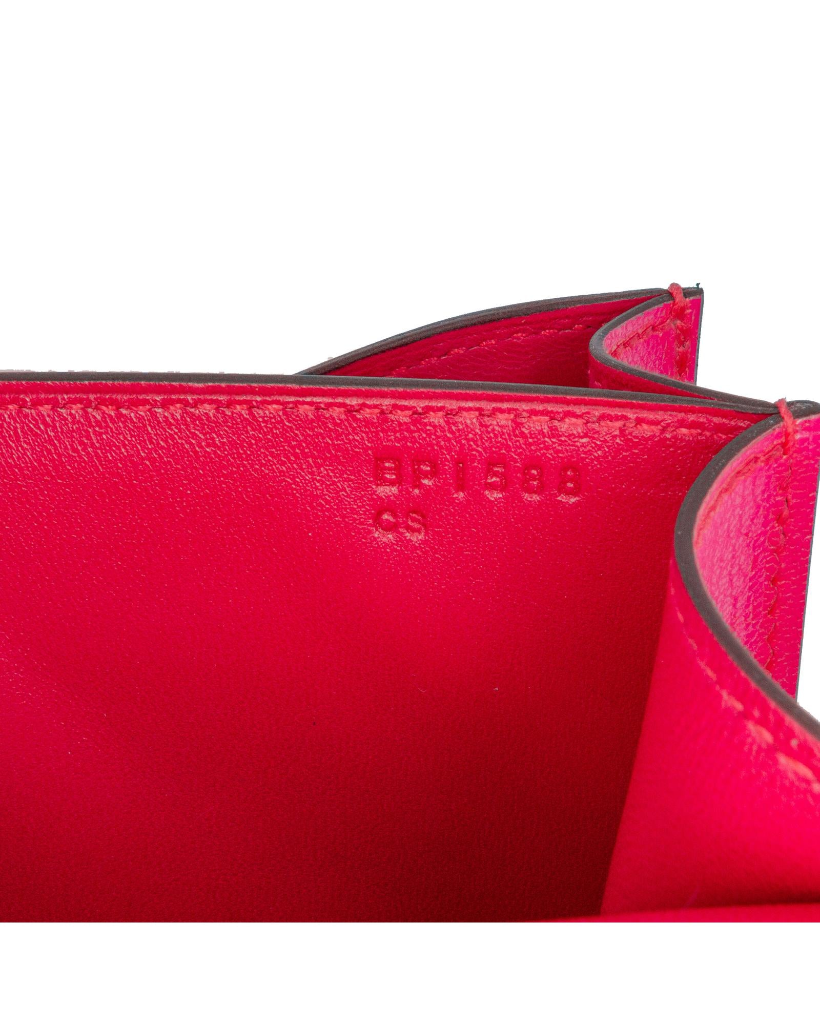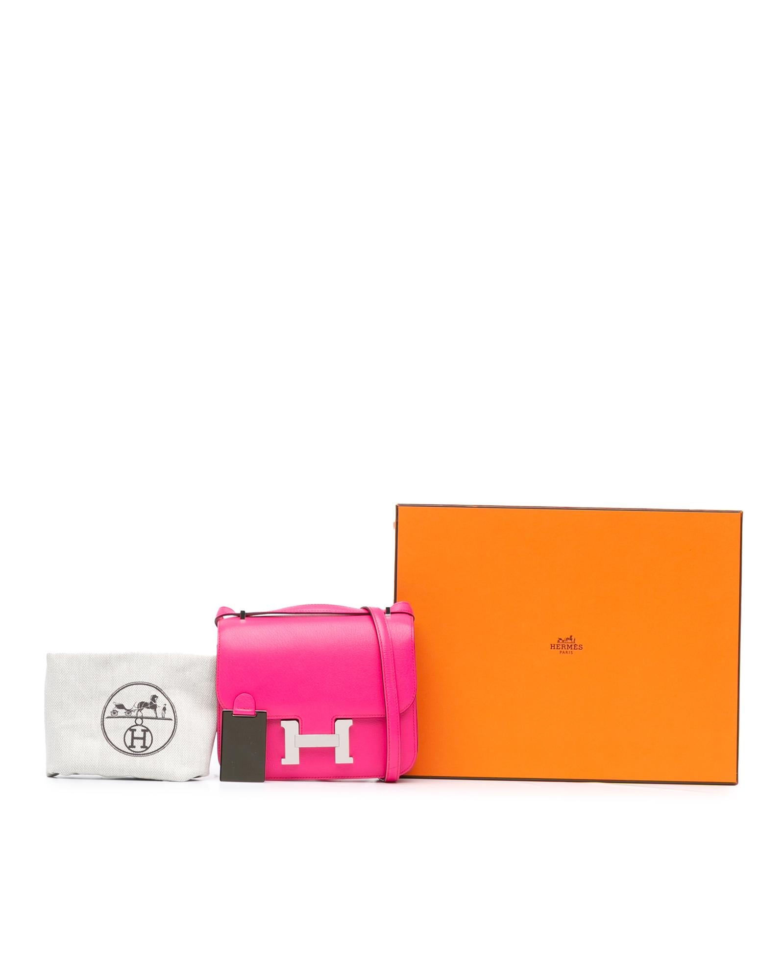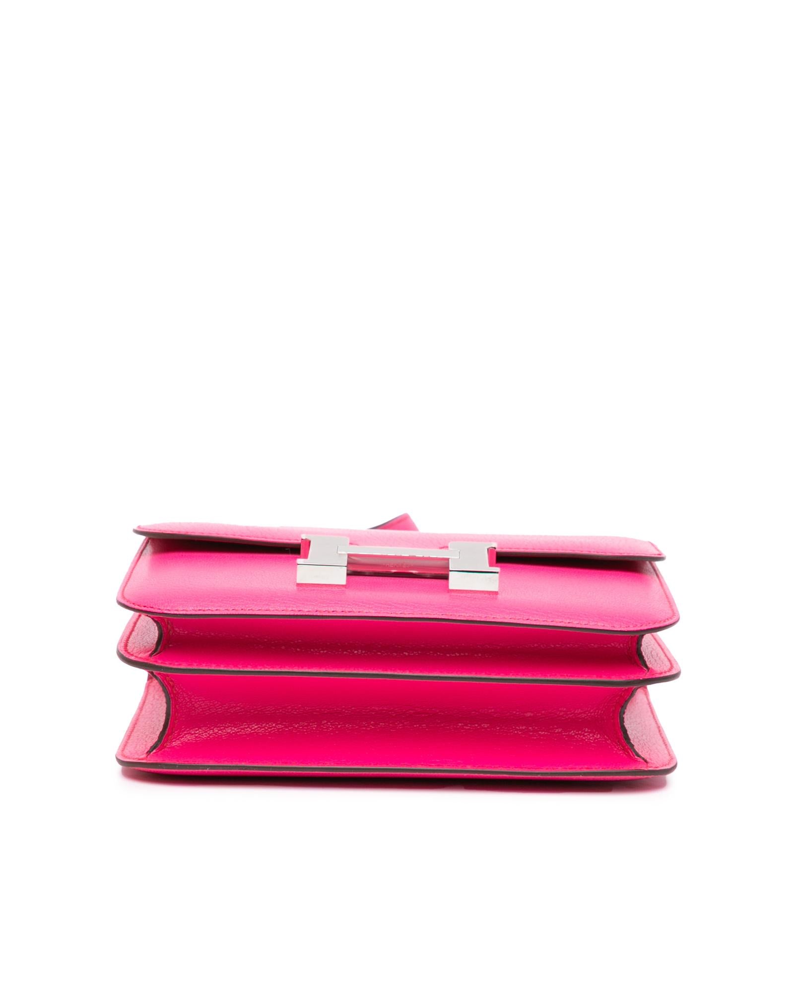 The Constance 18 Mini features a Chevre Chamkila leather body in Rose Pop color an adjustable shoulder strap a clasp closure and interior slip pockets.Brand: Hermes